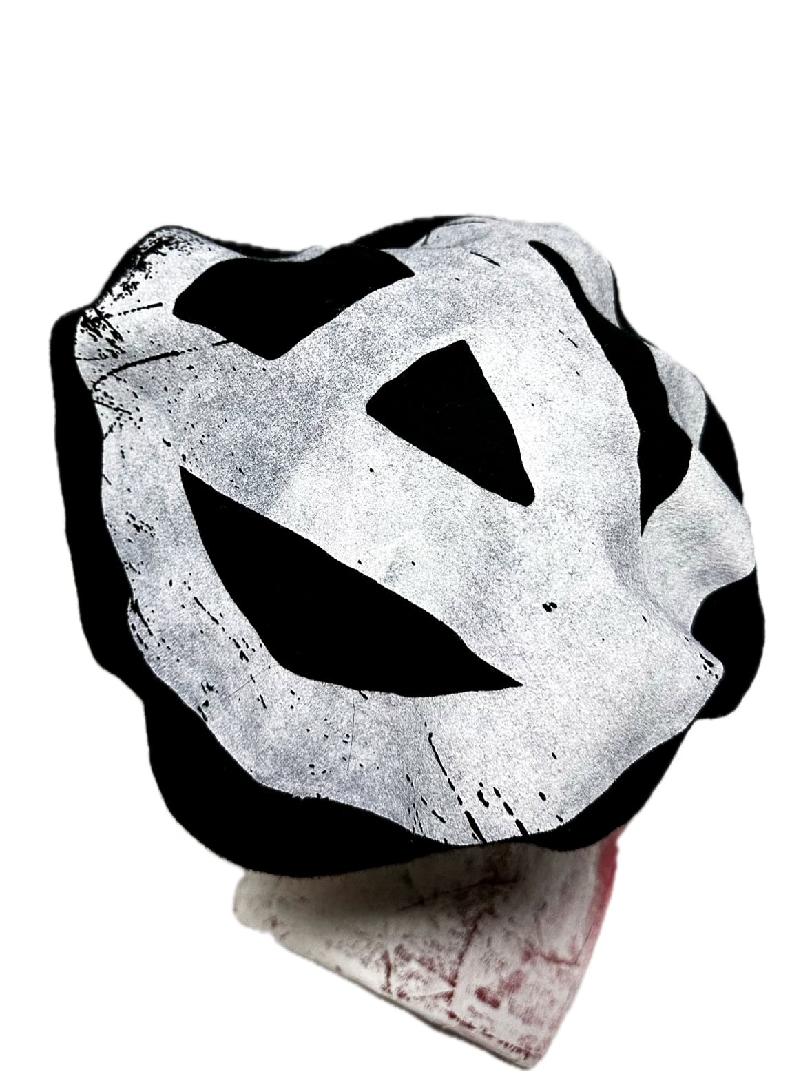トップ部分にはアナーキーマークにダメージを与えたグラフィックを採用しサイド部分にはハンドメイドによる