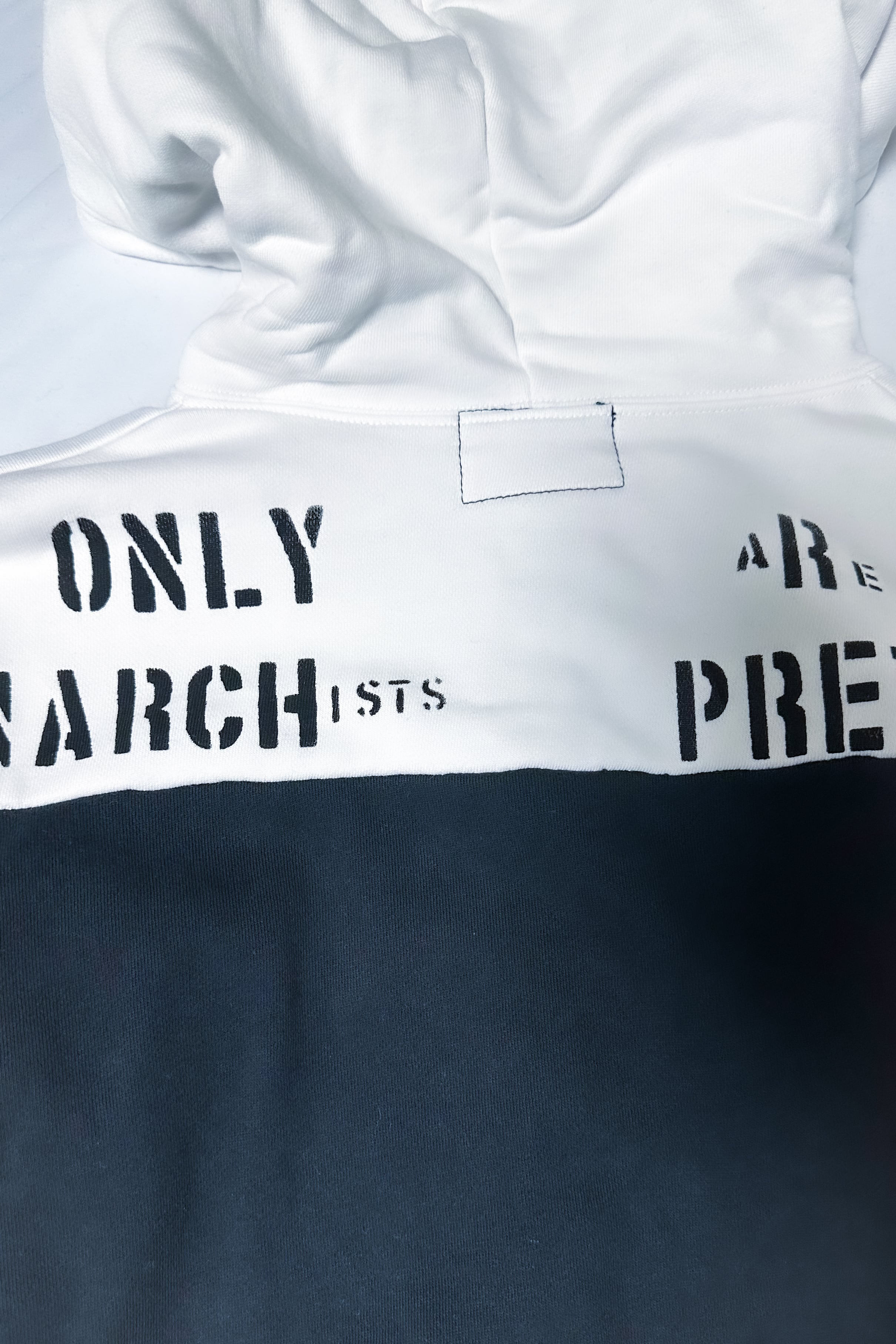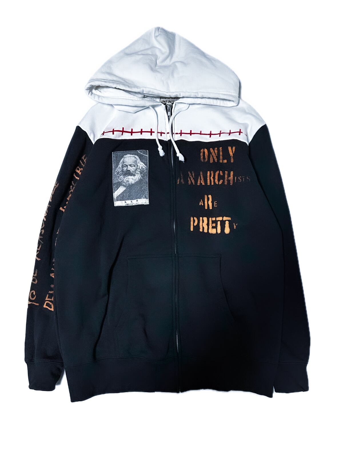 ヴィヴィアンウエストウッドがマルコムマクラーレンと運営していたお店seditionariesで販売されていたアナーキーシャツをモチーフにUNFINISHED独自のカスタムを施した切り替えパーカーです。