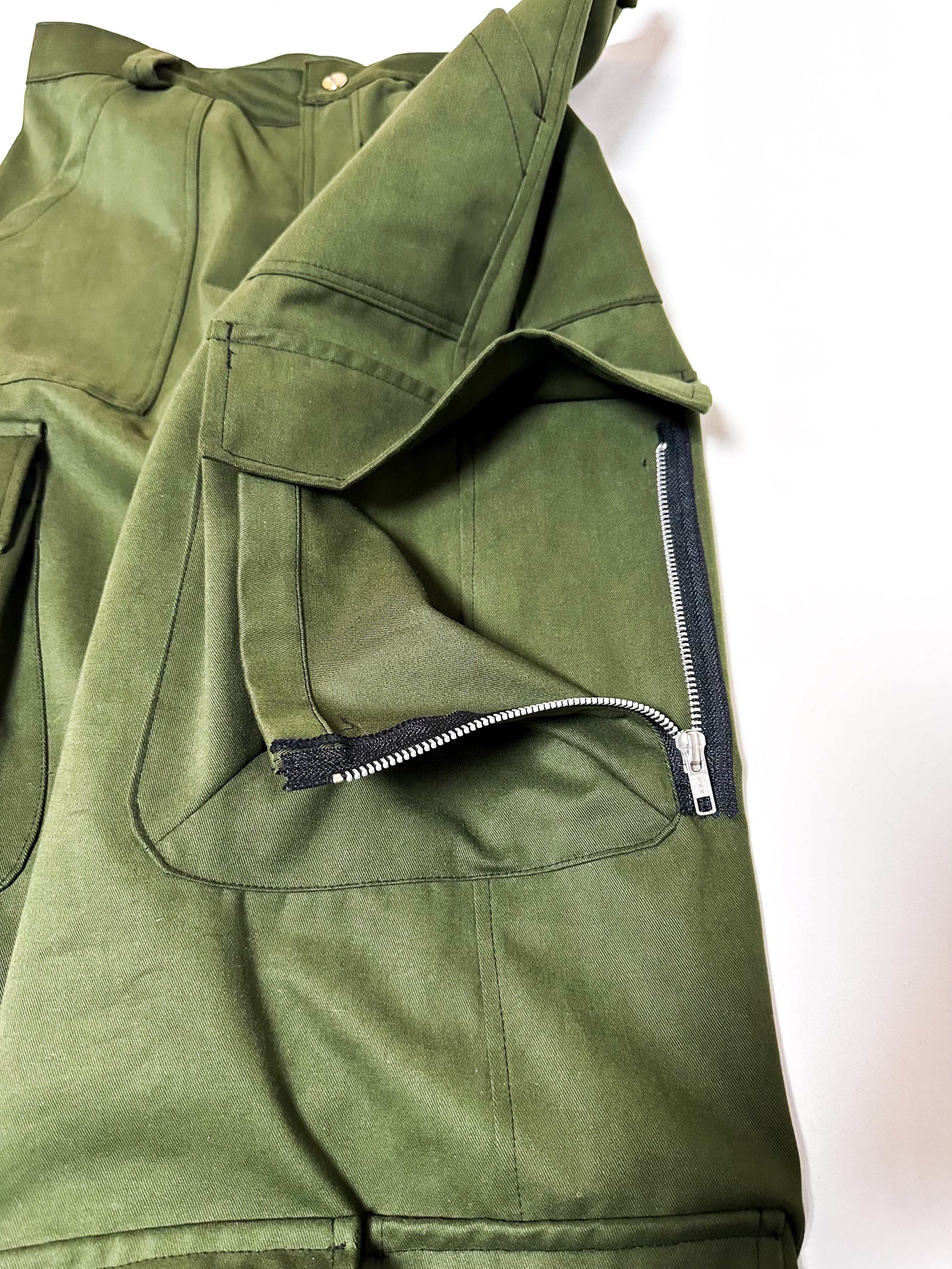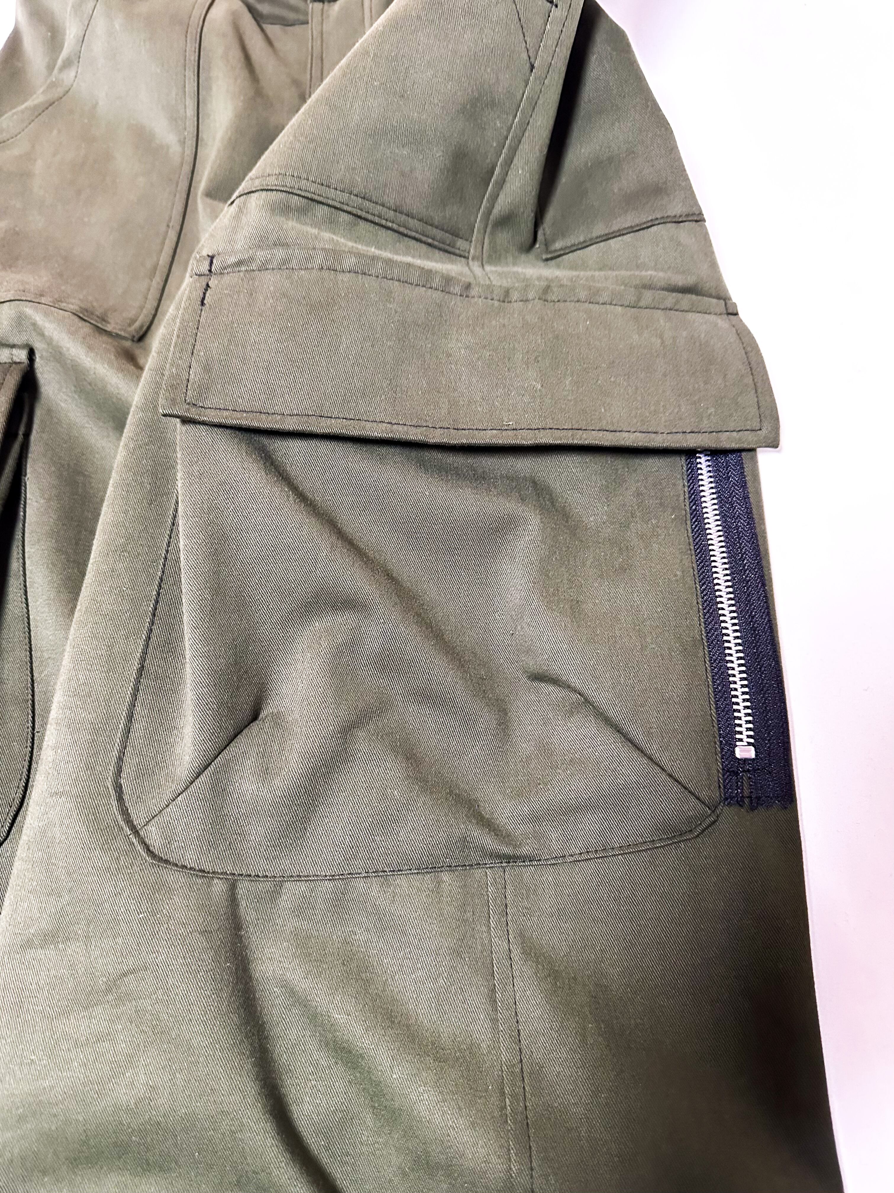 カーキツイル生地をベースにミリタリーパンツを製作しました。