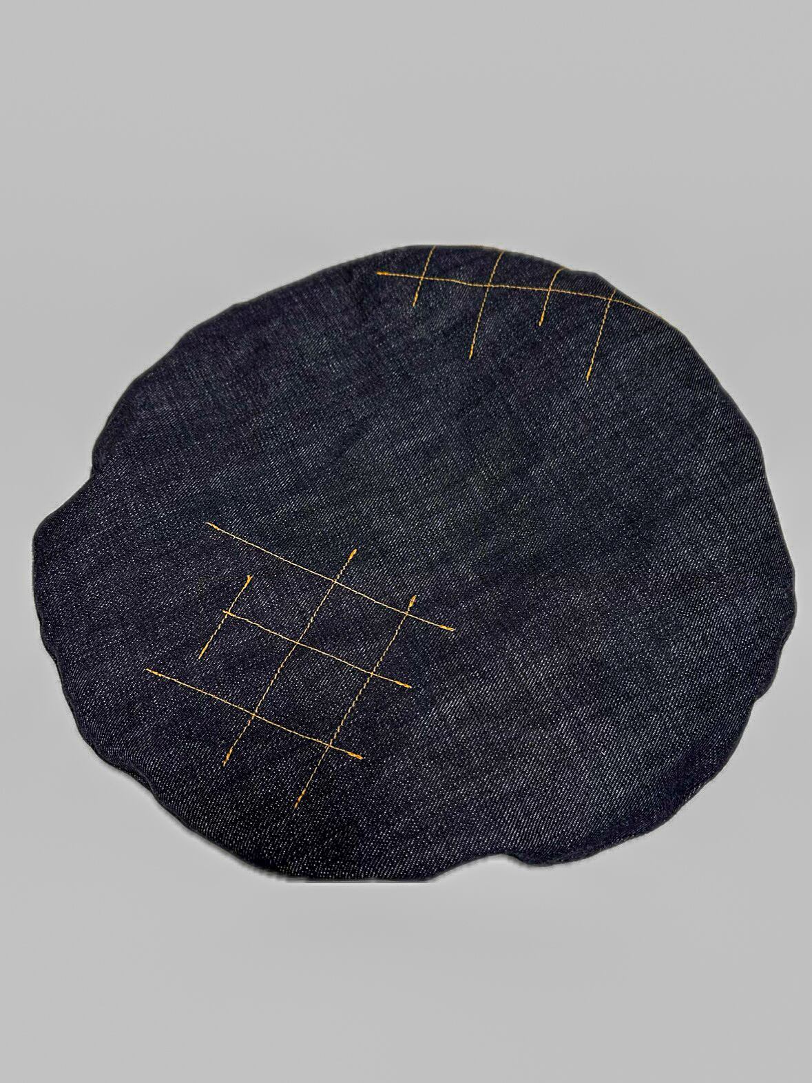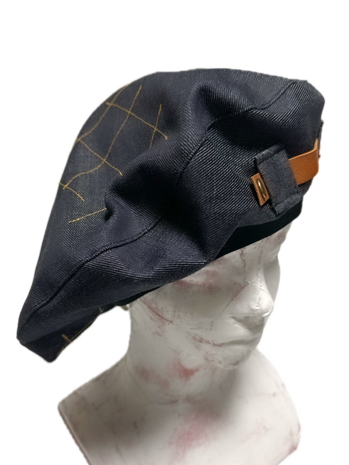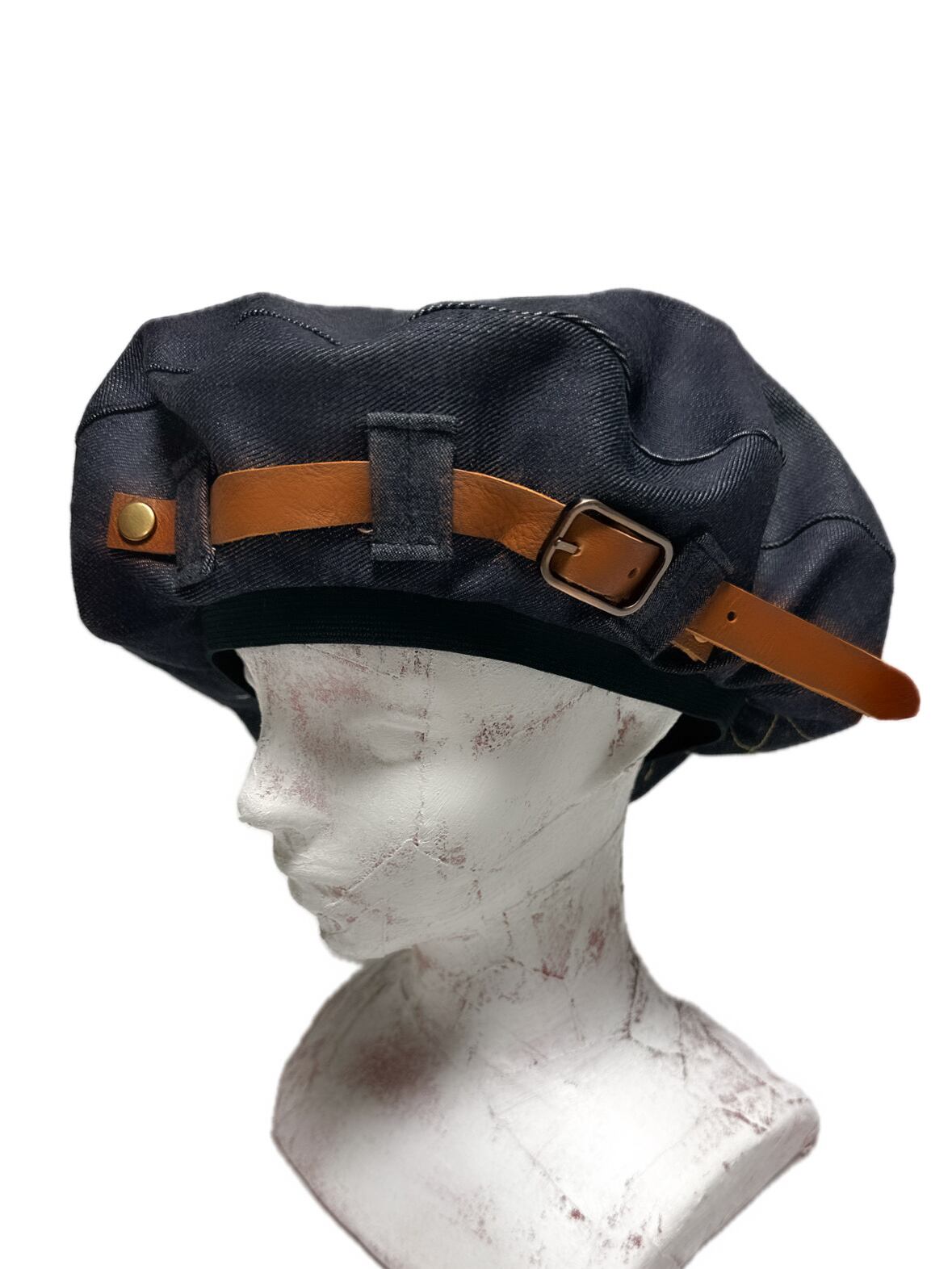 伝統と歴史のある岡山デニムをベースにステッチとレザーを配置したビッグシルエットベレー帽。