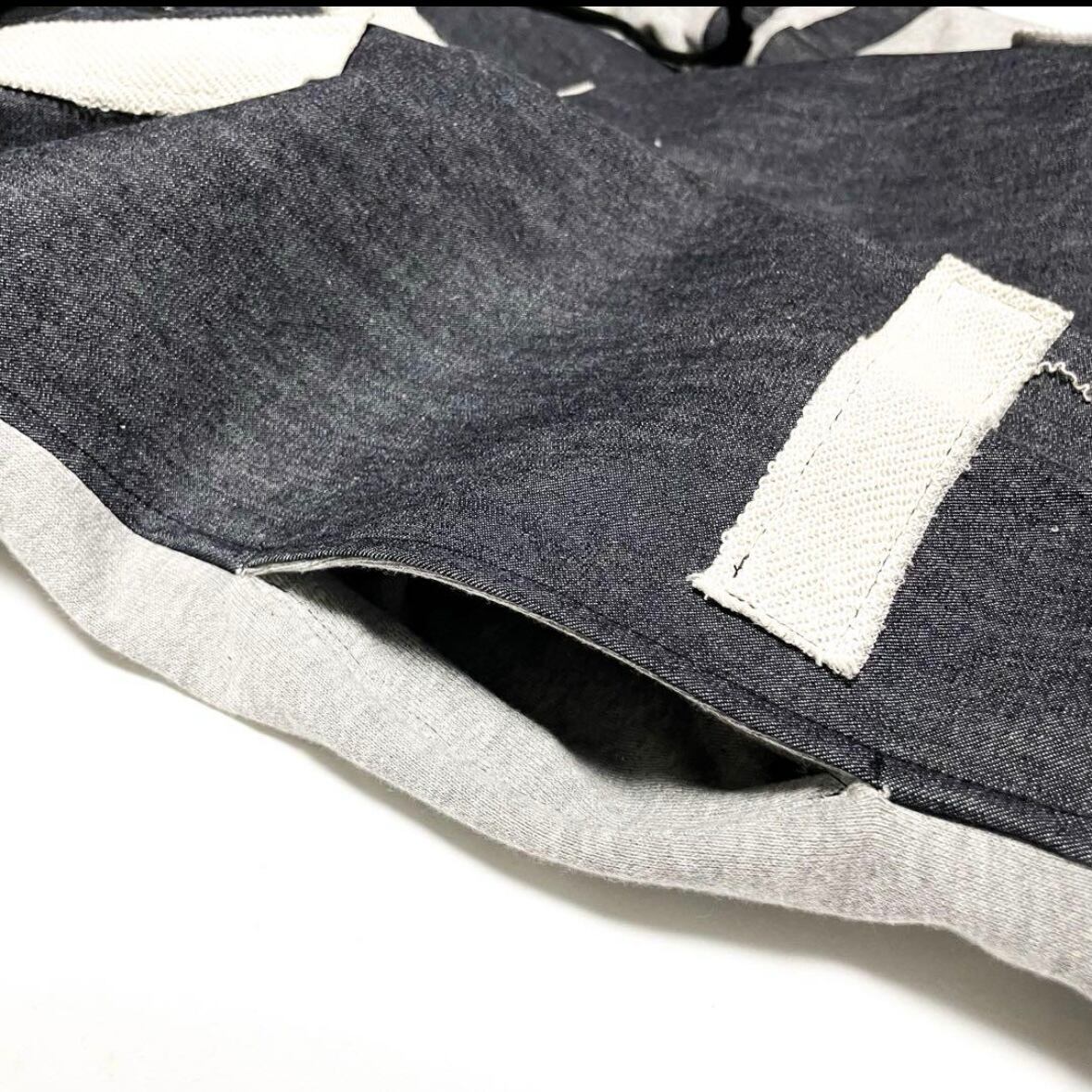 こちらの商品は、岡山デニムと柔らかな肌触りの良いトレーナー生地で製作いたしました。