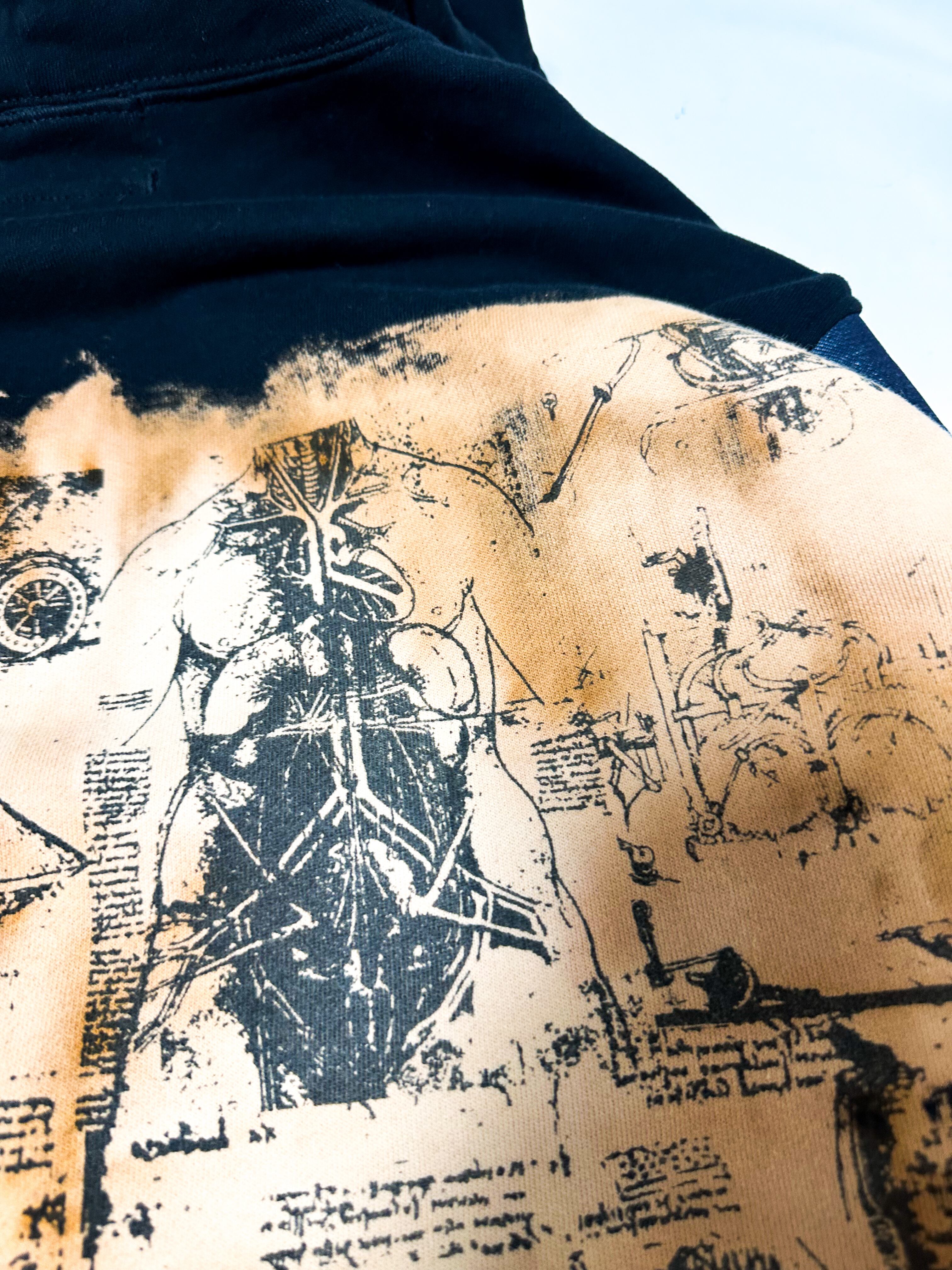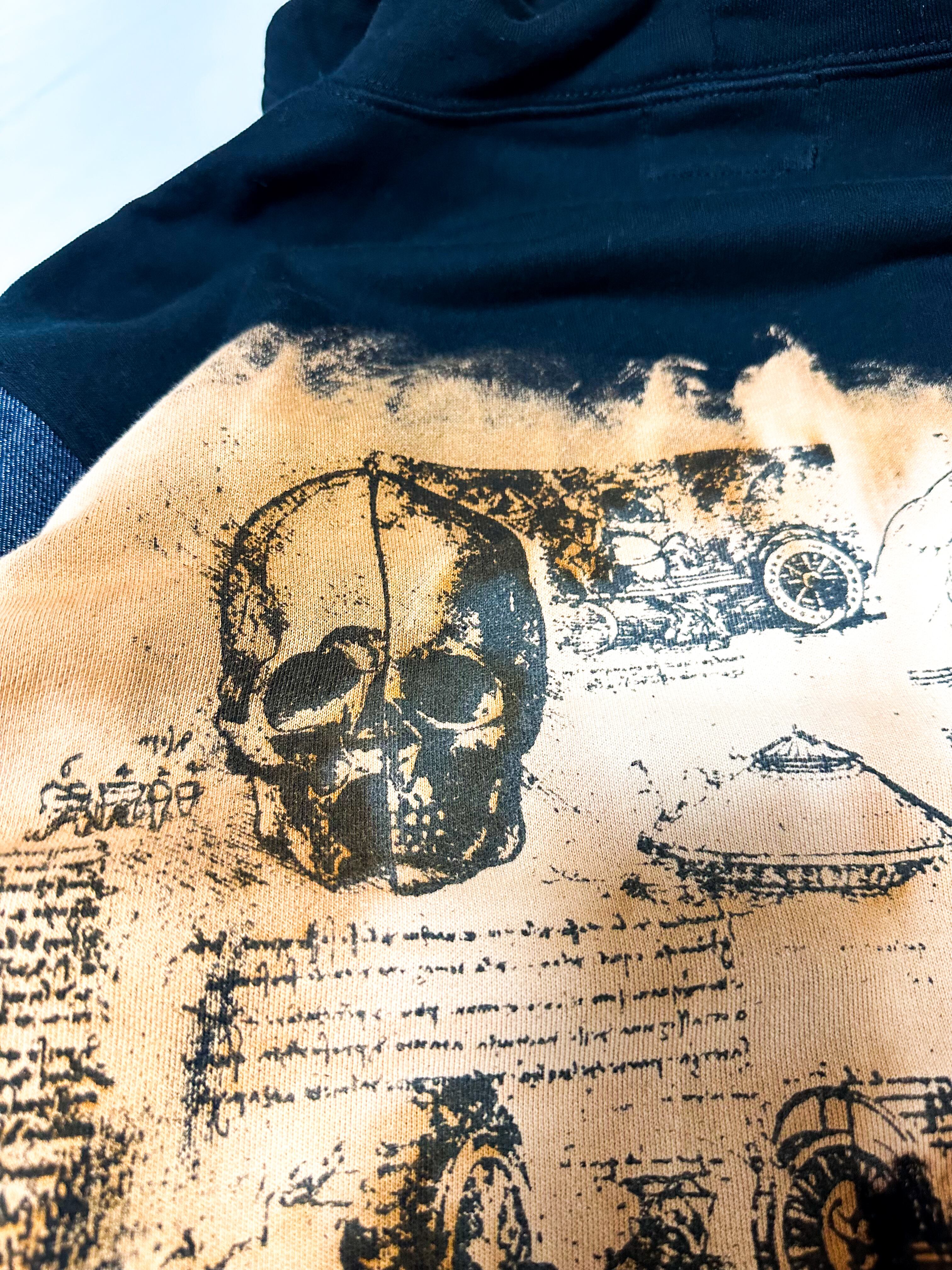 ダヴィンチをモチーフに岡山デニムの袖をドッキングしたパーカー。