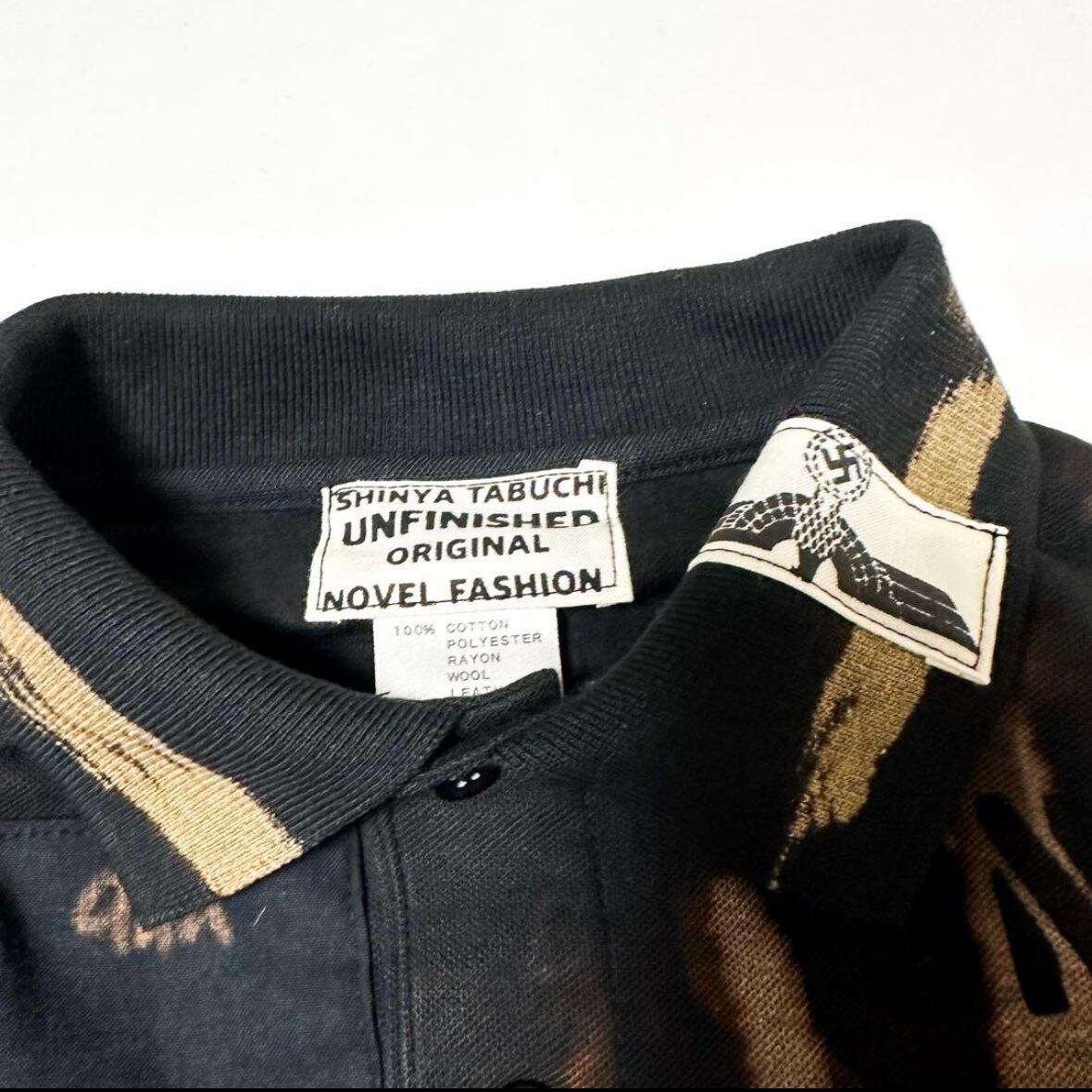 UNFINISHEDアナーキーポロシャツ2420 こちらの商品は、70年代当時セックス・ピストルズのシドヴィシャスや、ジョニーロットンが着ていたアナーキーシャツを再現した一品になります。 ※ブリーチは手作業で行っており個体差がございます。 【サイズ】 肩幅44㎝ 着丈67㎝ 身幅52㎝ 袖丈22㎝ 購入金額に関わらず送料無料。