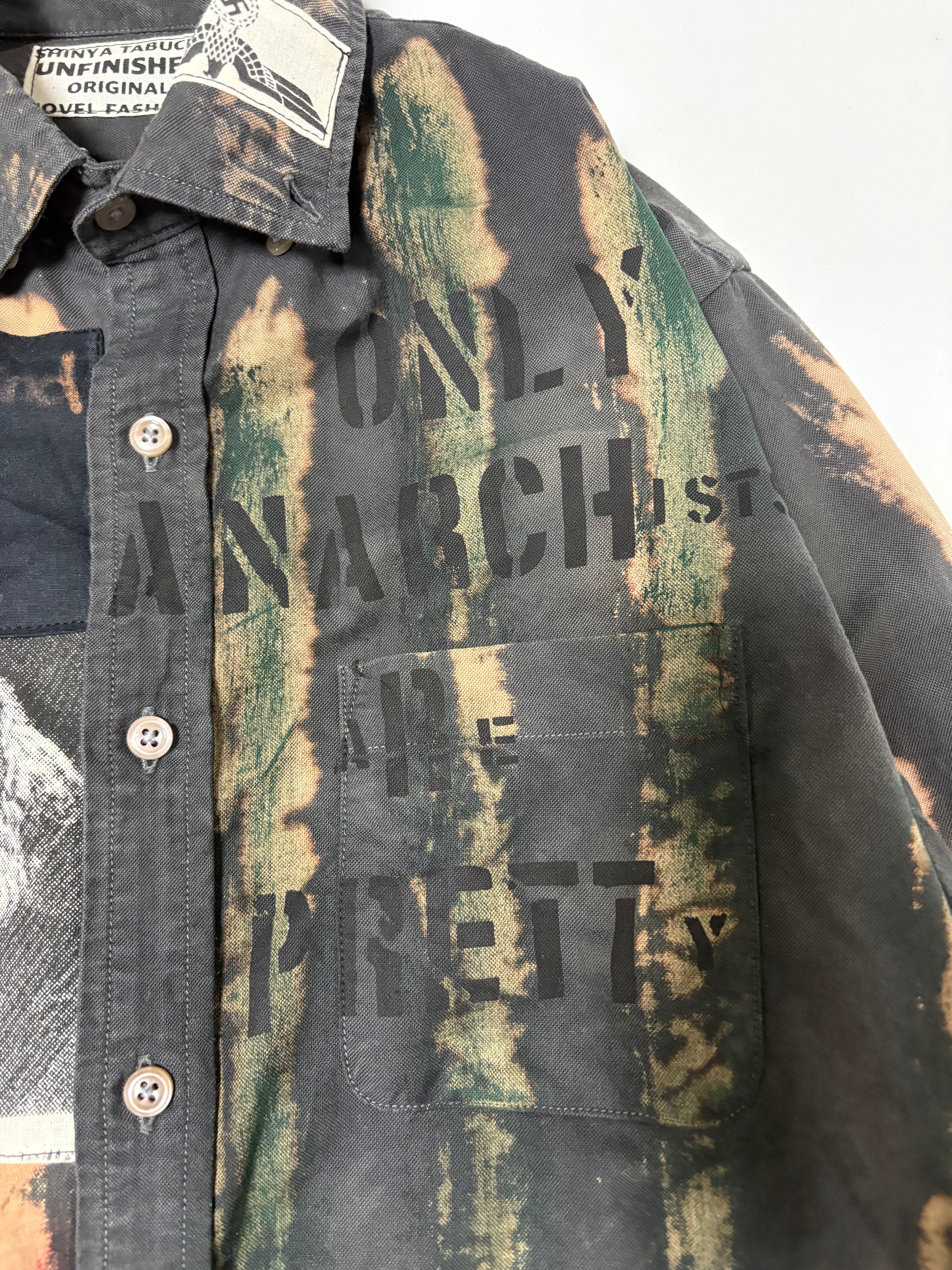 UNFINISHEDアナーキーシャツ25084 【サイズ】 肩幅42㎝ 着丈71㎝ 身幅51㎝ 袖丈60㎝ 購入金額に関わらず送料無料。