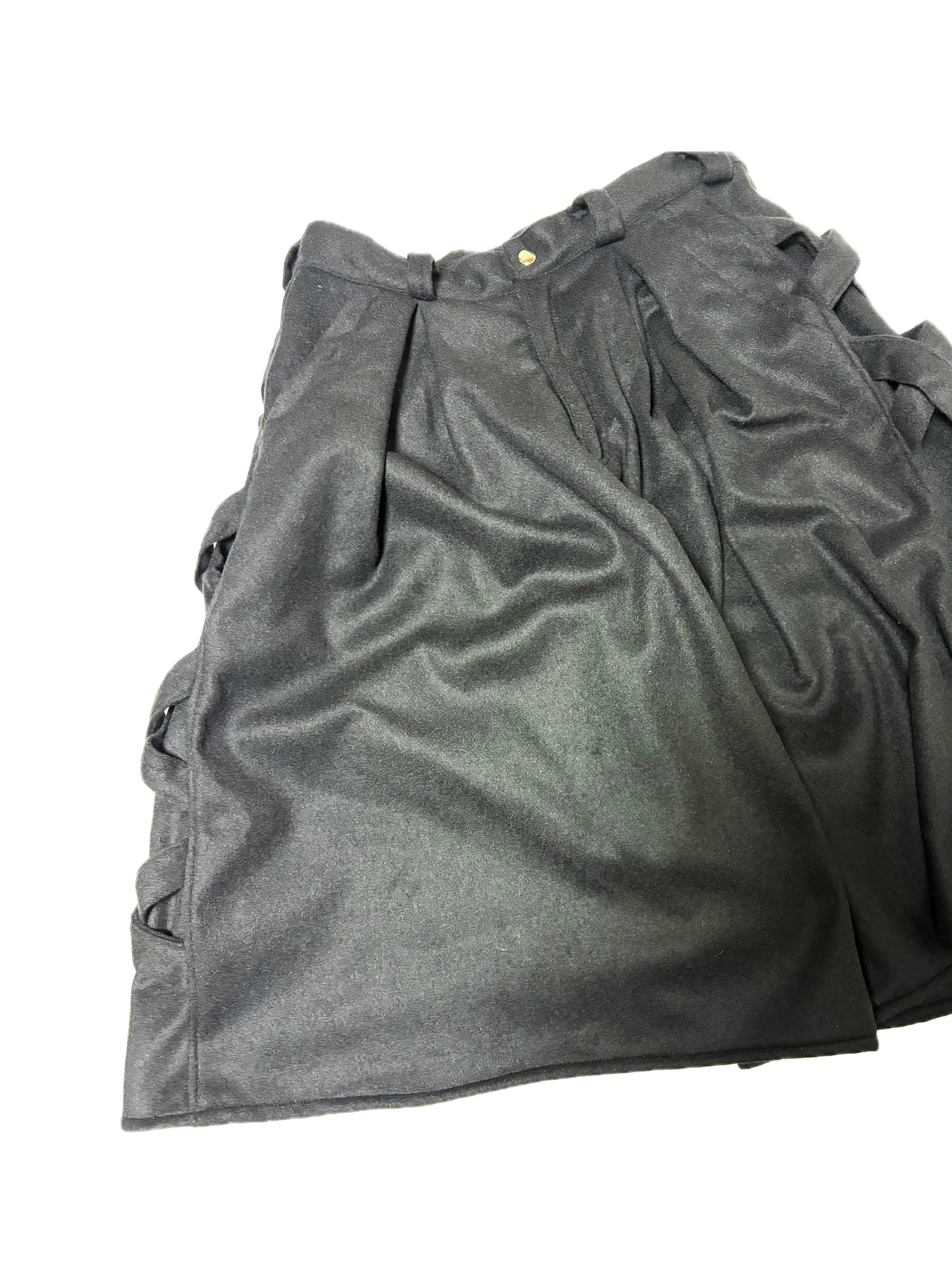 UNFINISHED ウール袴パンツ25099 ウール生地を使用しワイドな袴パンツを製作しました。 脇部分にはベルトが編み込まれた様なデザインを採用。 生地の高級感がデザインにマッチしています。 モードな雰囲気とパンクな要素を取り入れ目を引くパンツです。 【size】 ウエスト83㎝ 股上38㎝ 股下34㎝ 裾幅 半径54㎝ 全長108㎝ 【送料】 購入金額に関わらず無料。