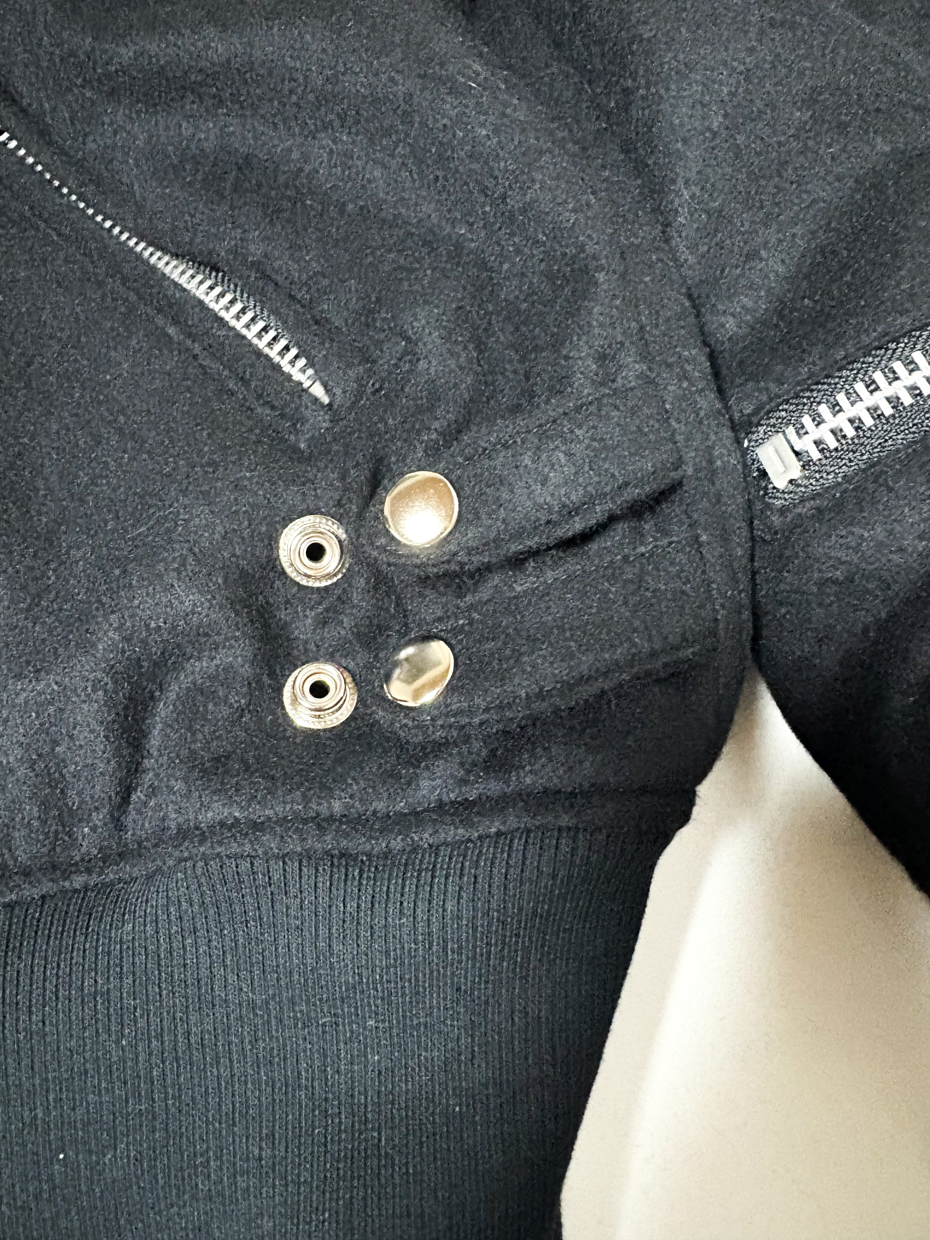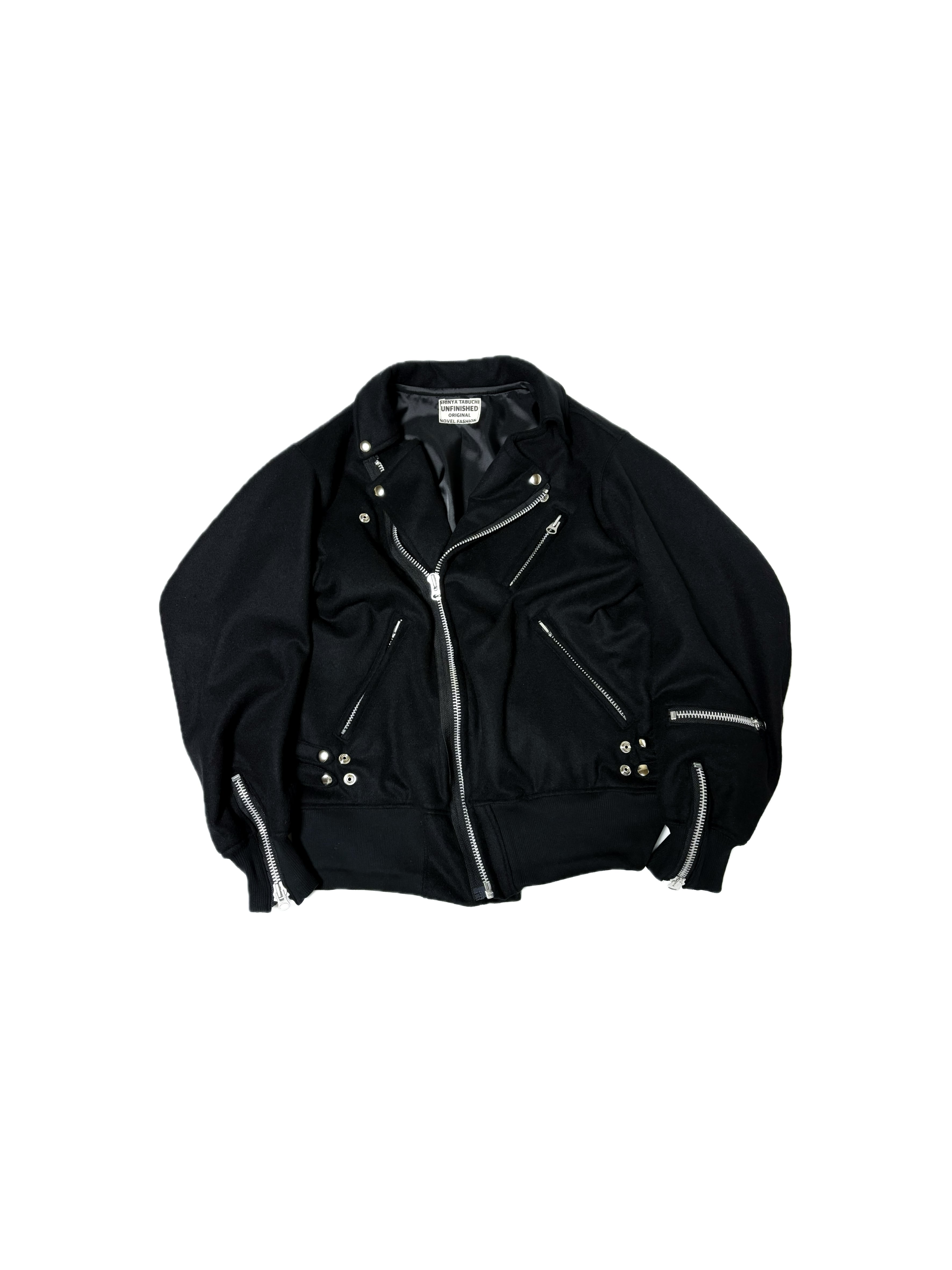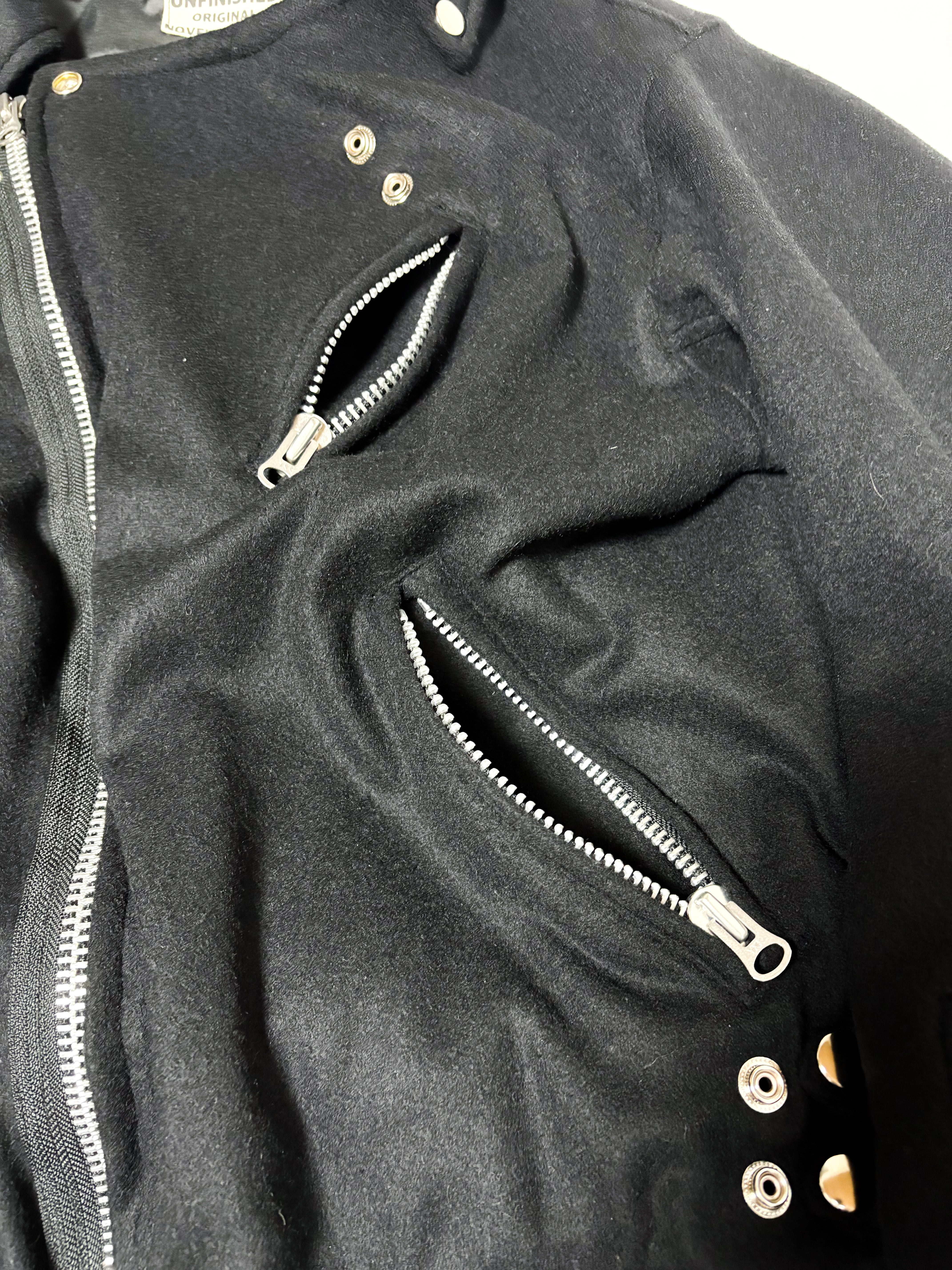 モードな雰囲気とパンクな要素を取り入れ目を引くジャケットです。