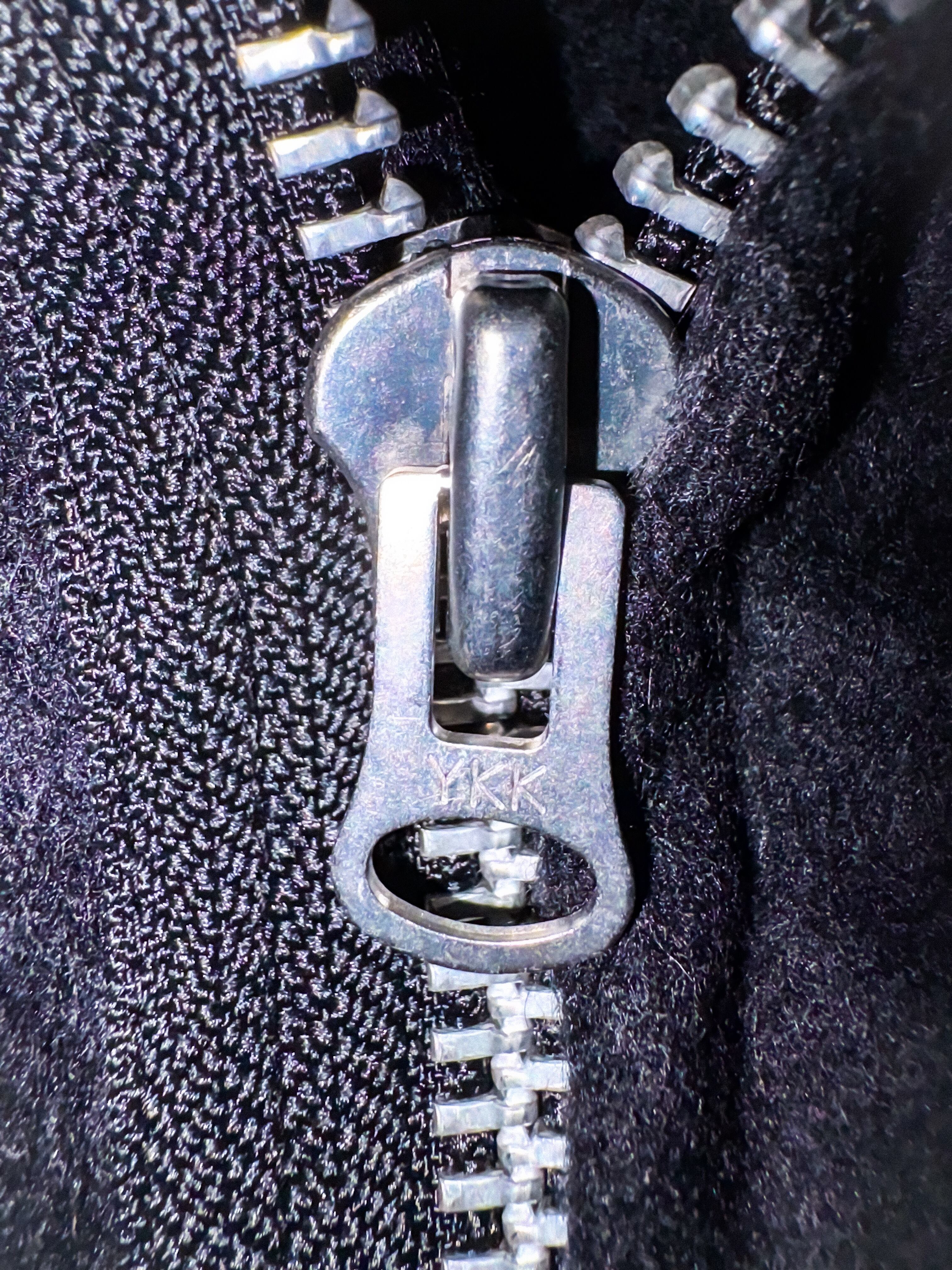 ファスナーは全て特大の物を使用ししっかりとしたウール生地との相性が非常にいいです。