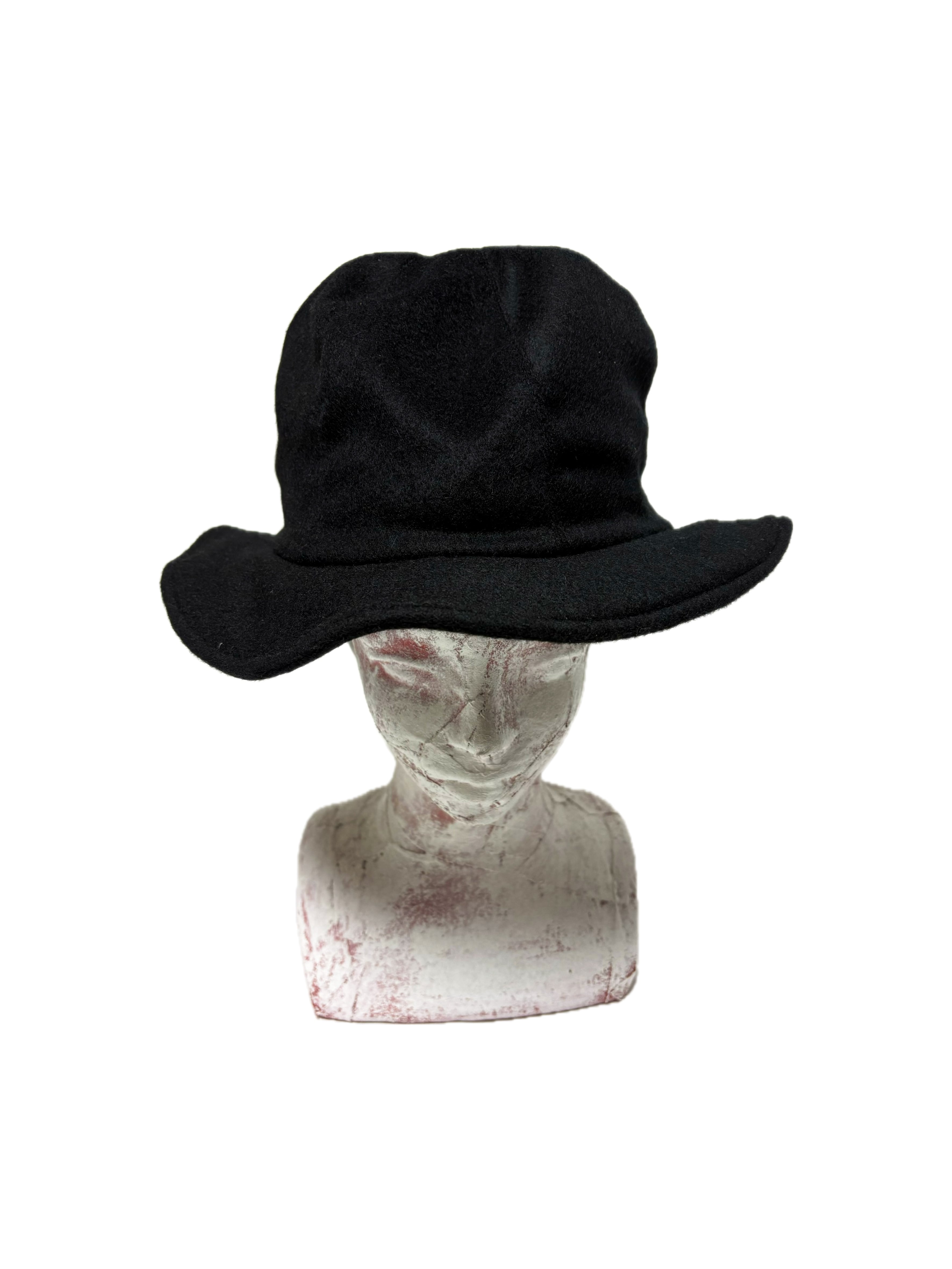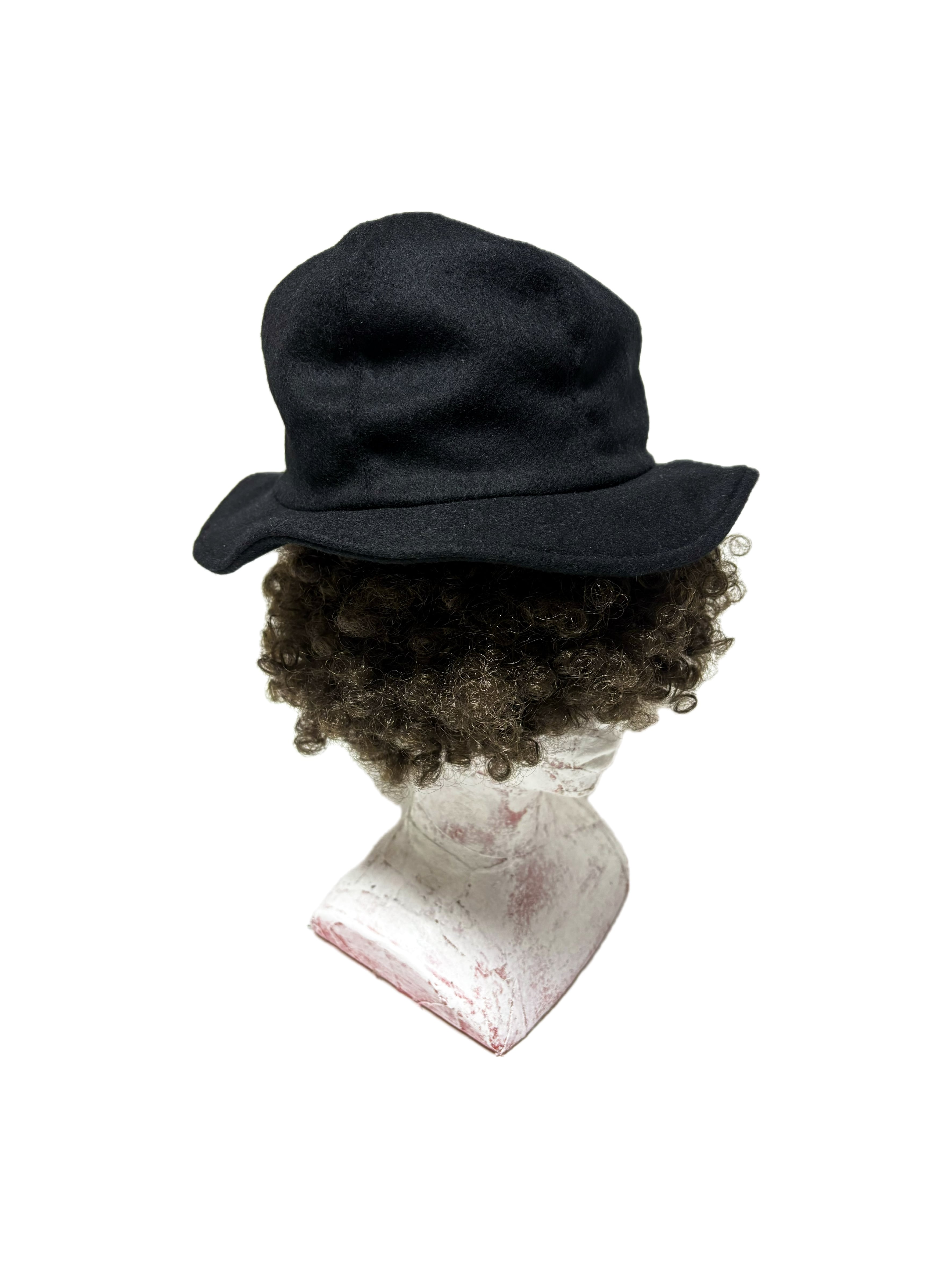 ウール生地をベースにボーラーハットの様なシルエットの帽子を製作しました。