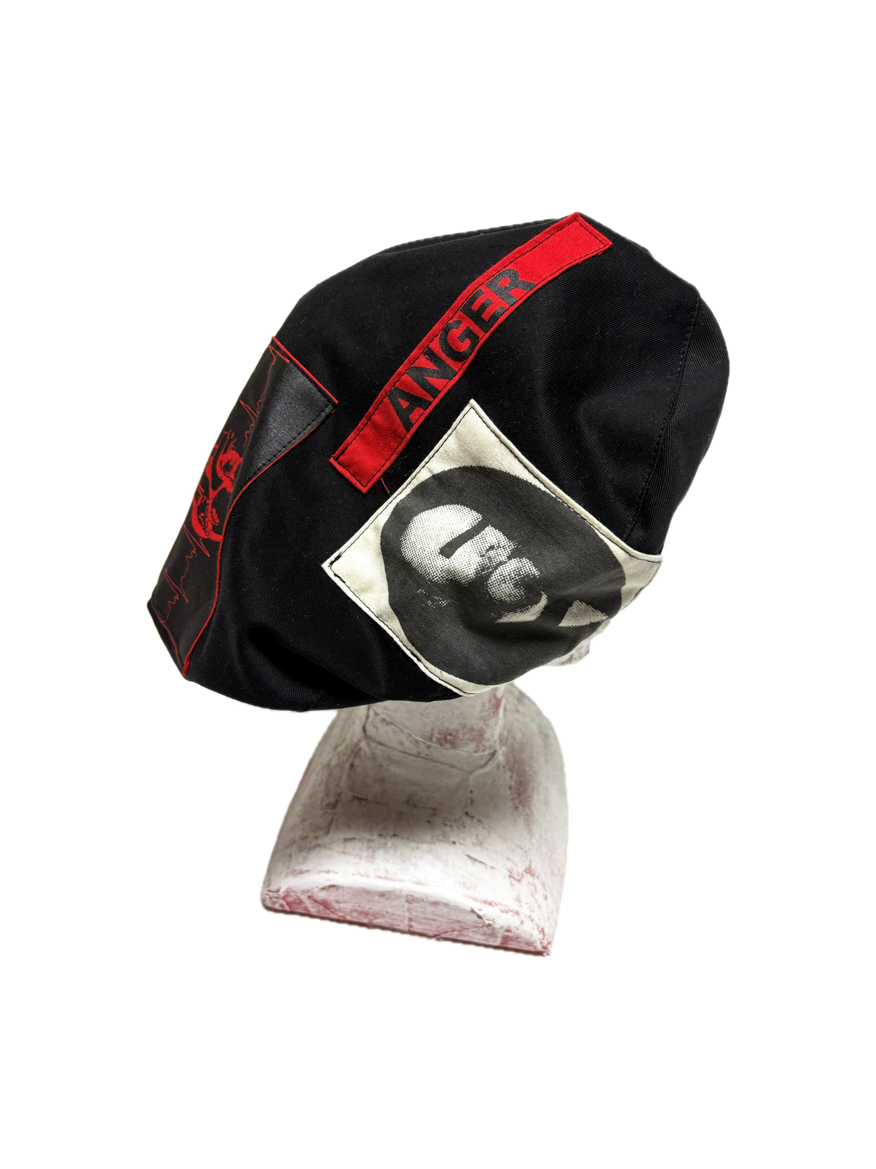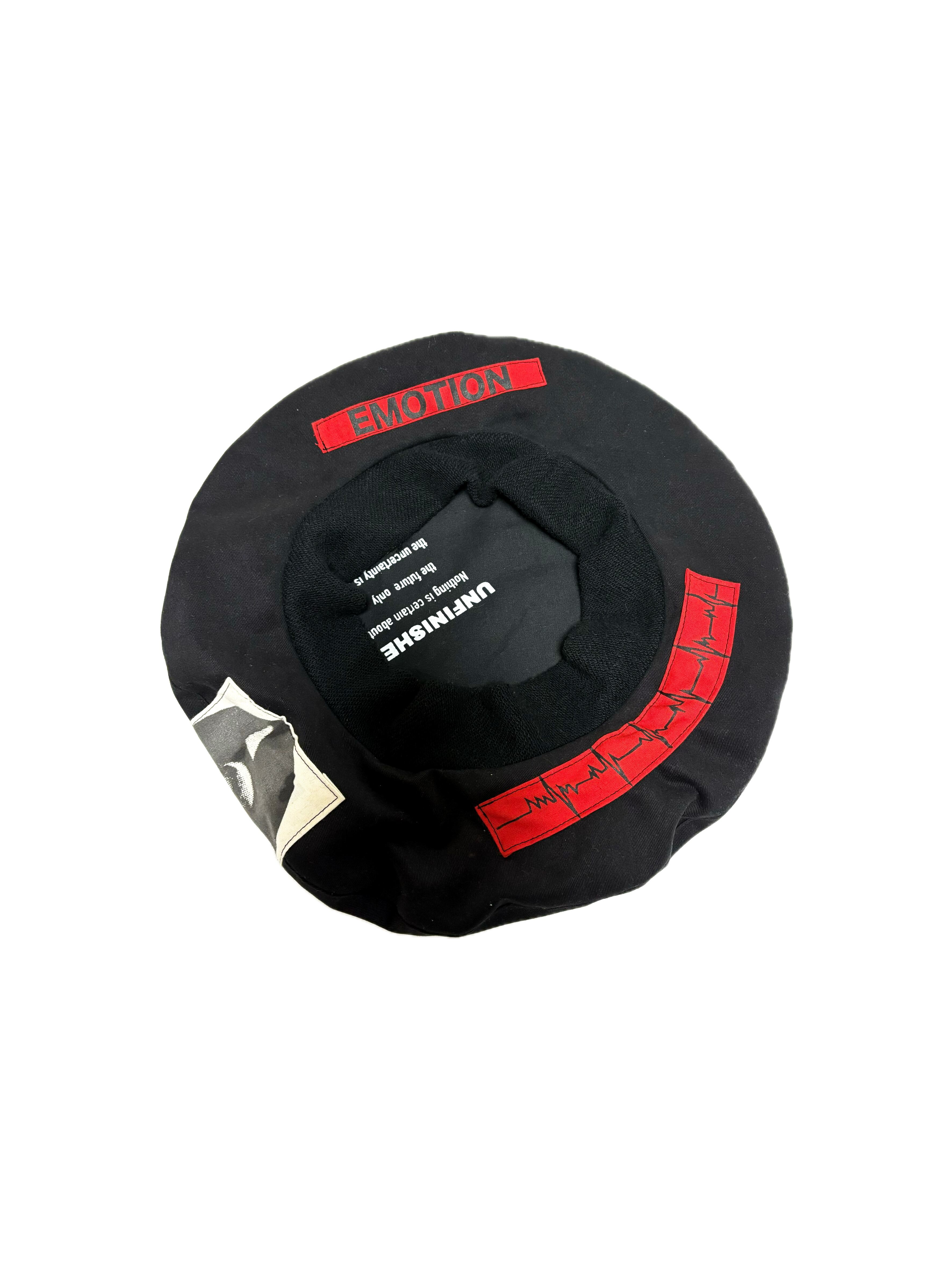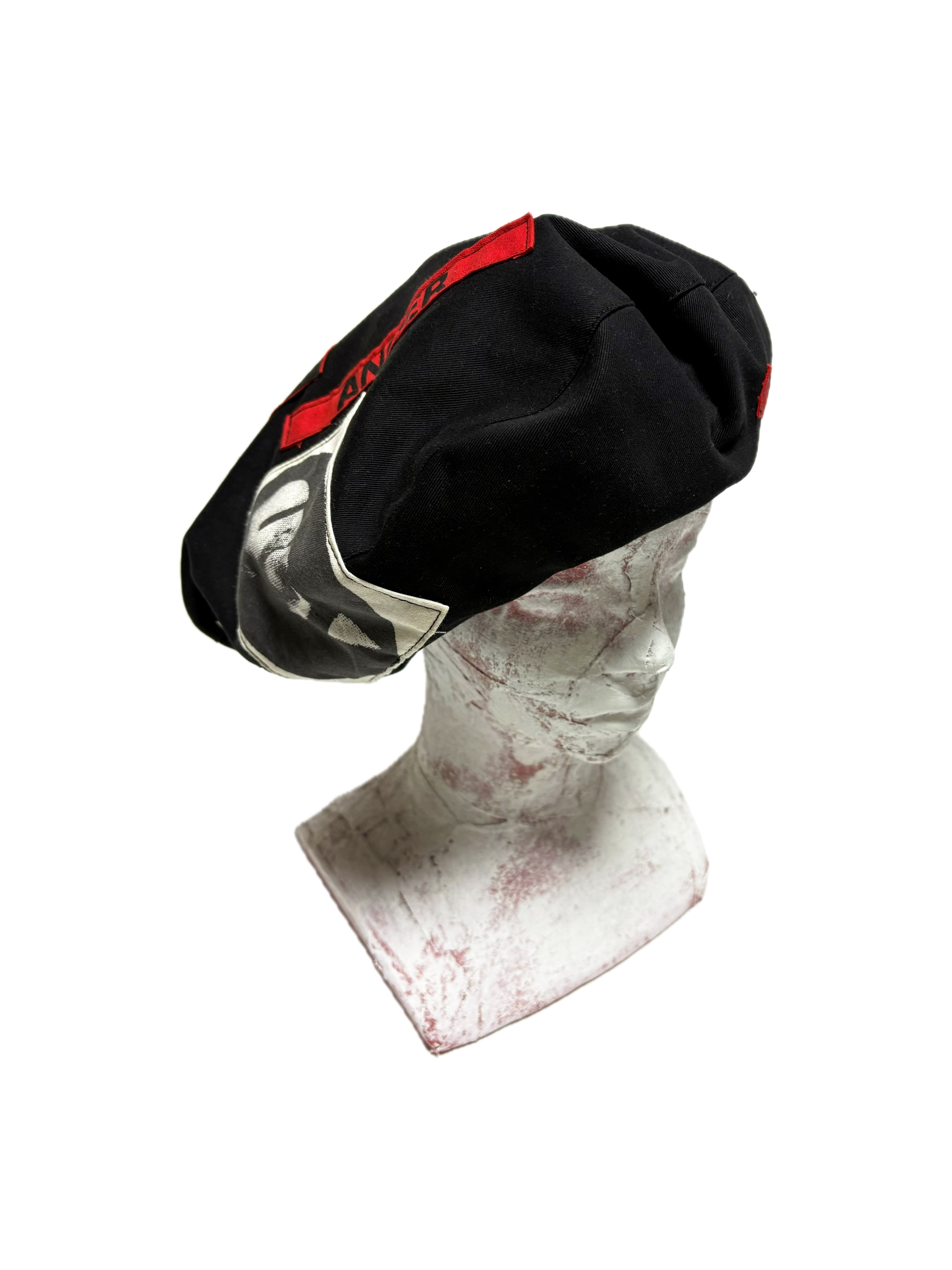 UNFINISHED ベレー帽25109 黒ツイルをベースにビッグシルエットのリバーシブルベレー帽を制作いたしました。 黒を主体としたデザインで幅広いファッションに使用可能です。 【size】 頭周り59~64㎝程度の方まで着用可能です。 外径 生地の端から端まで訳33㎝程度。 【送料】 購入金額に関わらず送料無料。