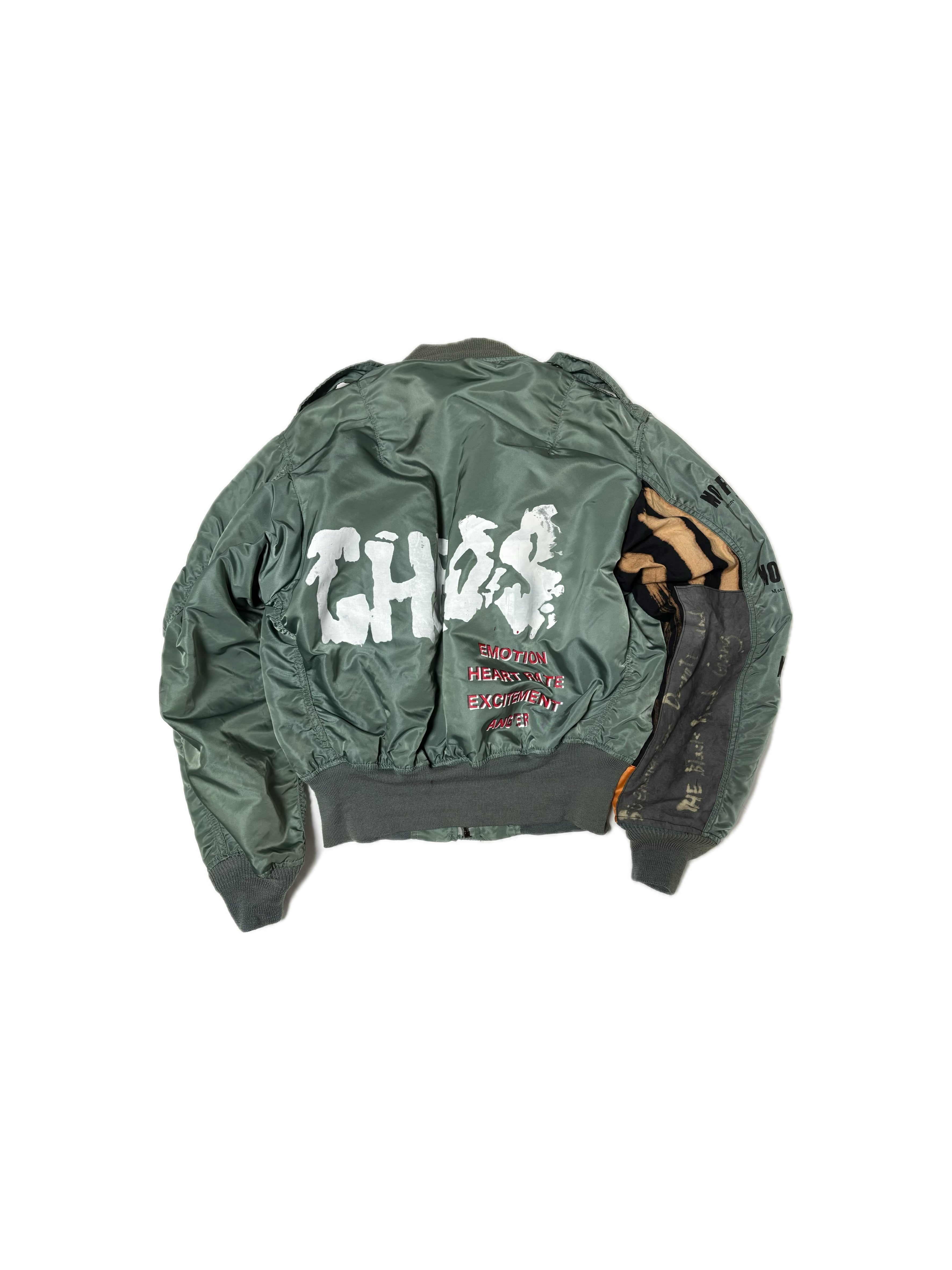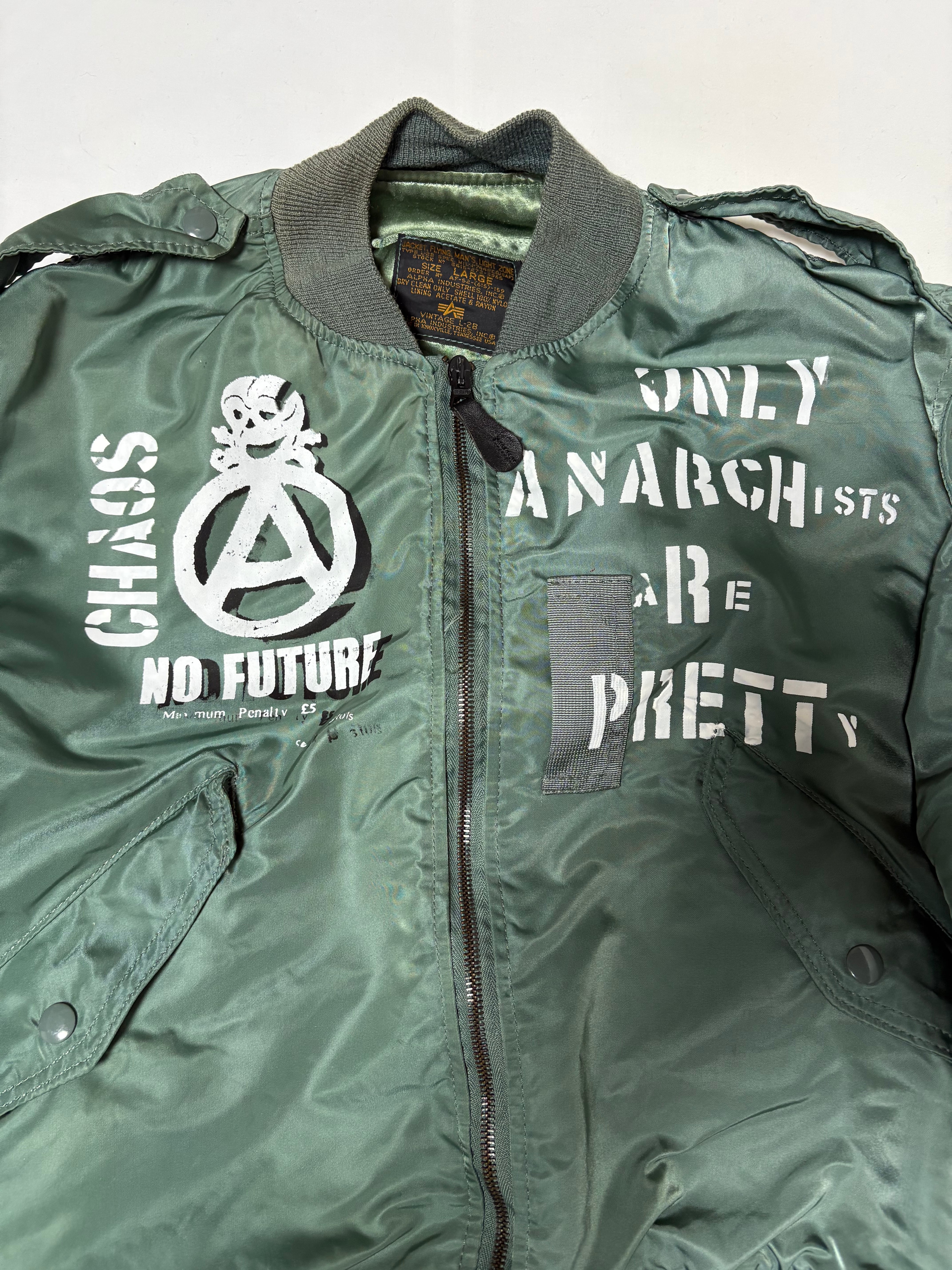 こちらの商品は、アルファMA1をベースにアナーキー加工を施してあります。全て手作業で丁寧に製作しております。インクは特殊なナイロン用インクを使用しております。
