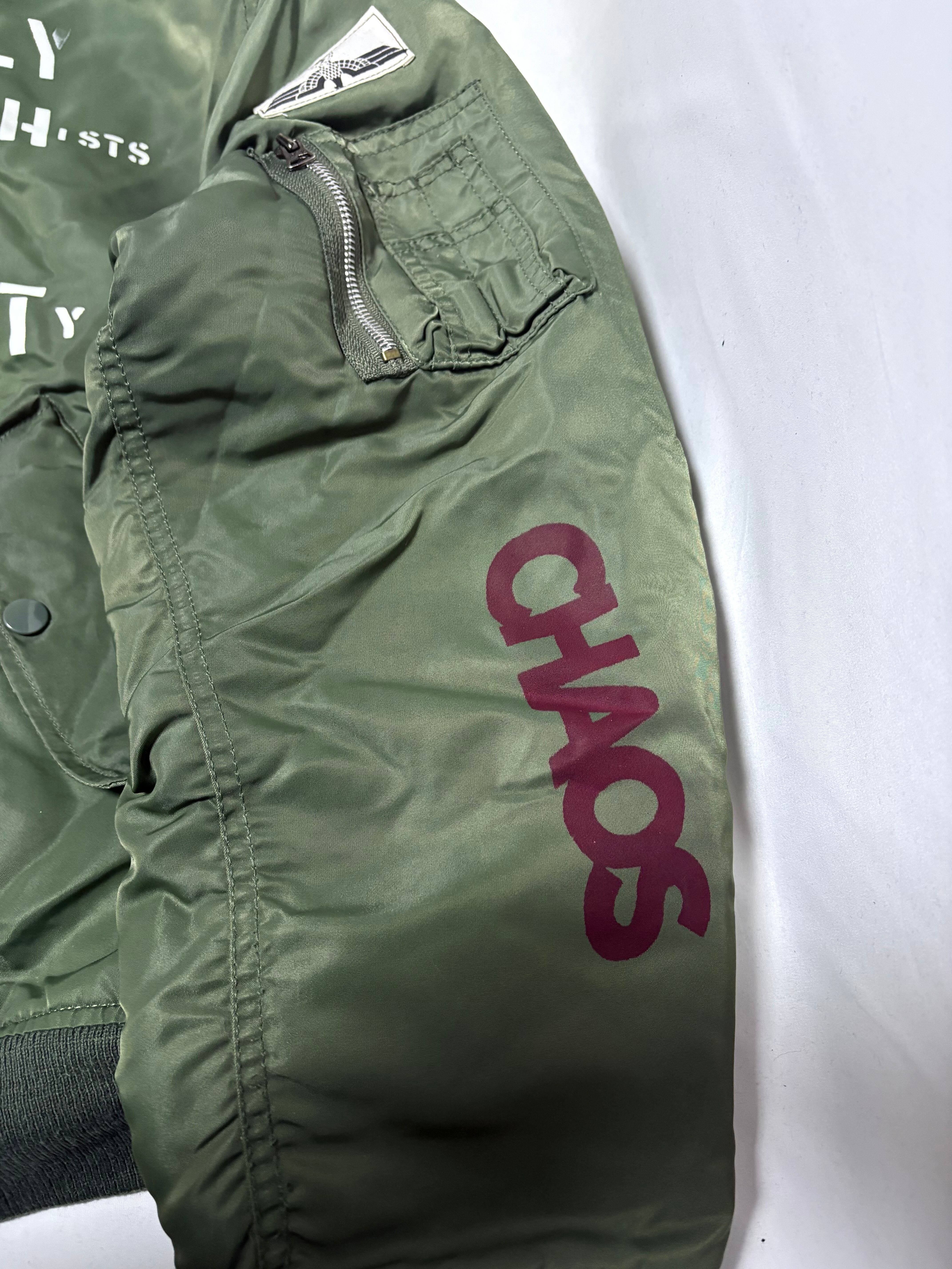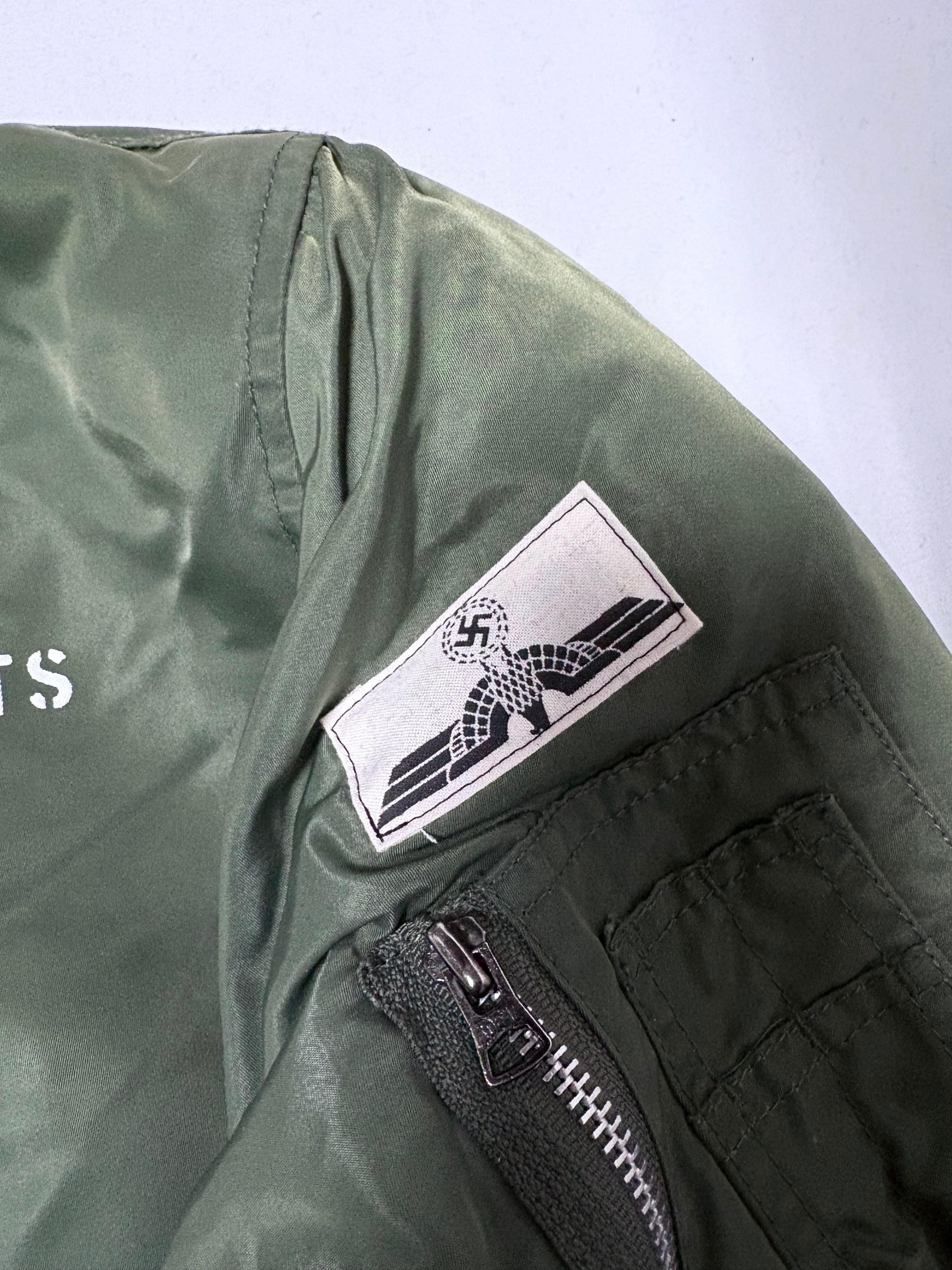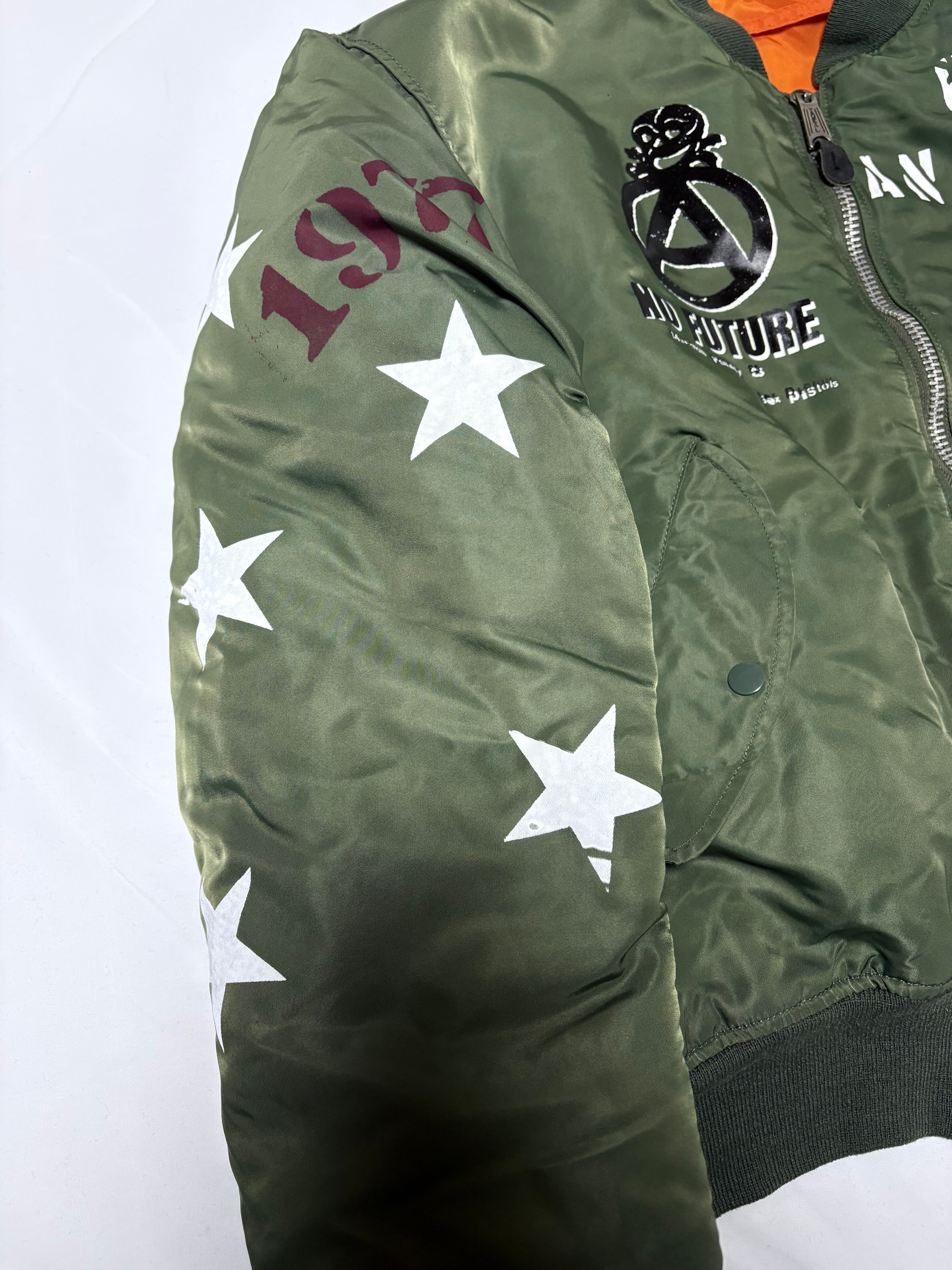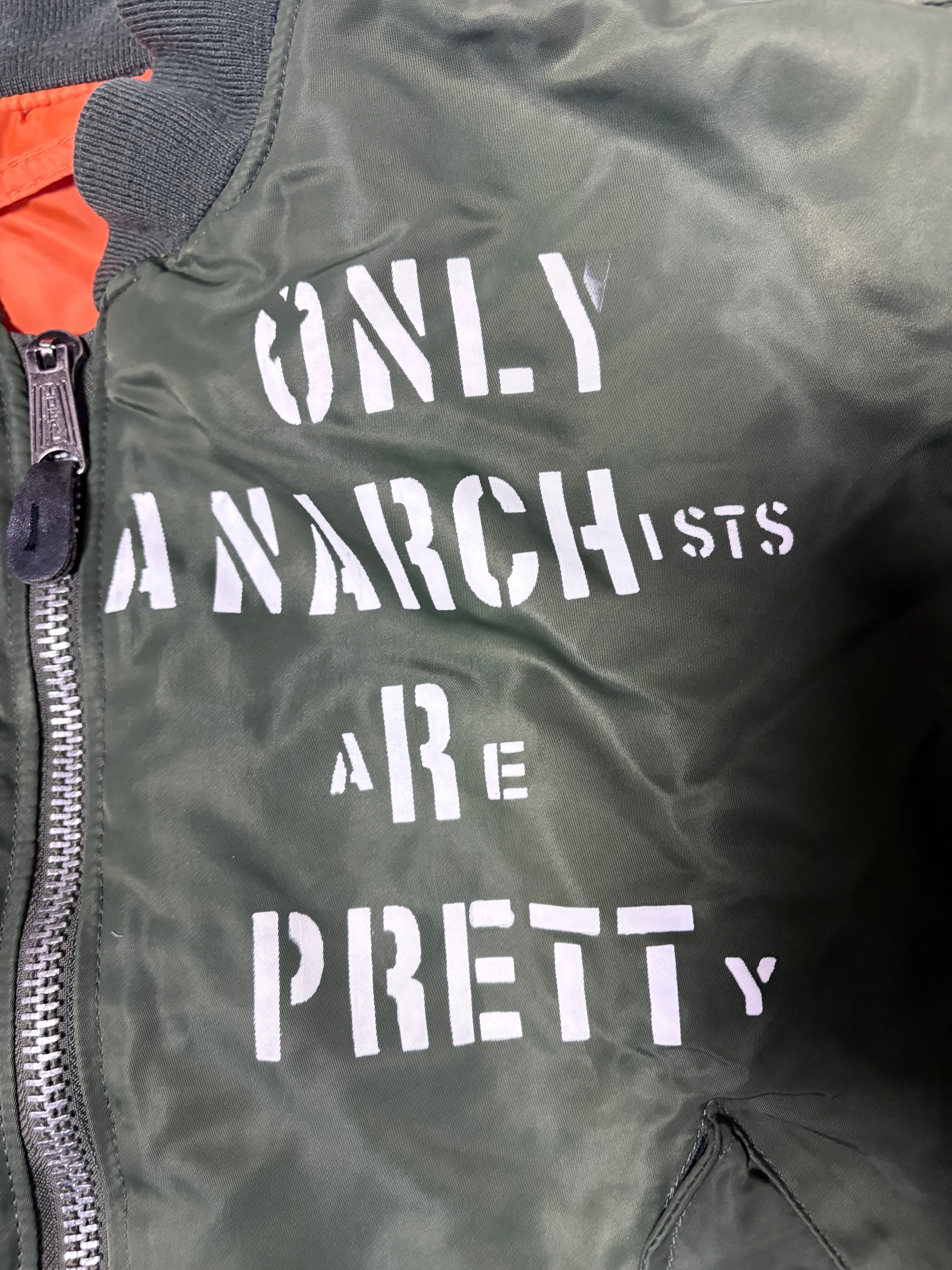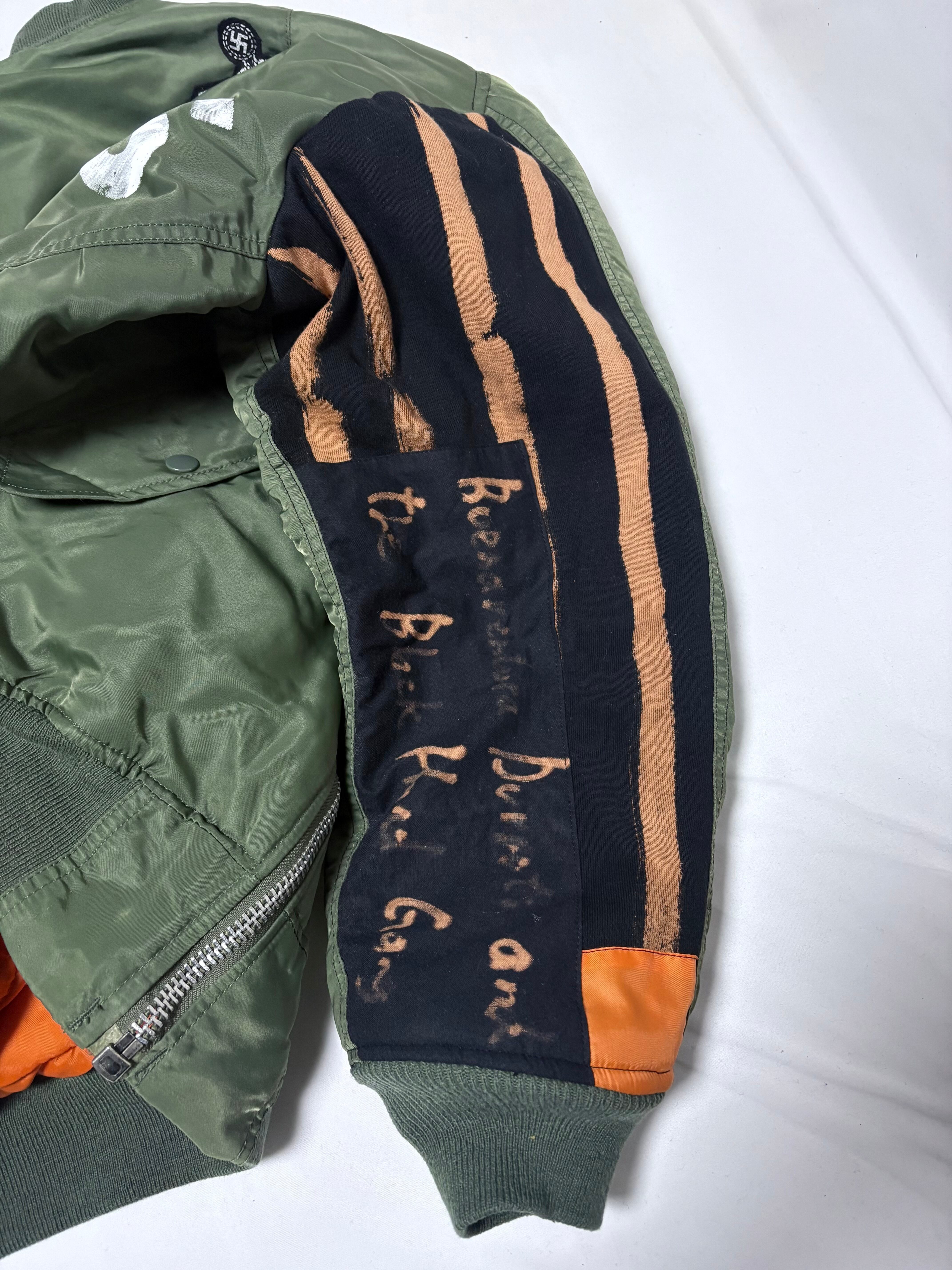 こちらの商品は、アルファMA1をベースにアナーキー加工を施してあります。全て手作業で丁寧に製作しております。インクは特殊なナイロン用インクを使用しております。