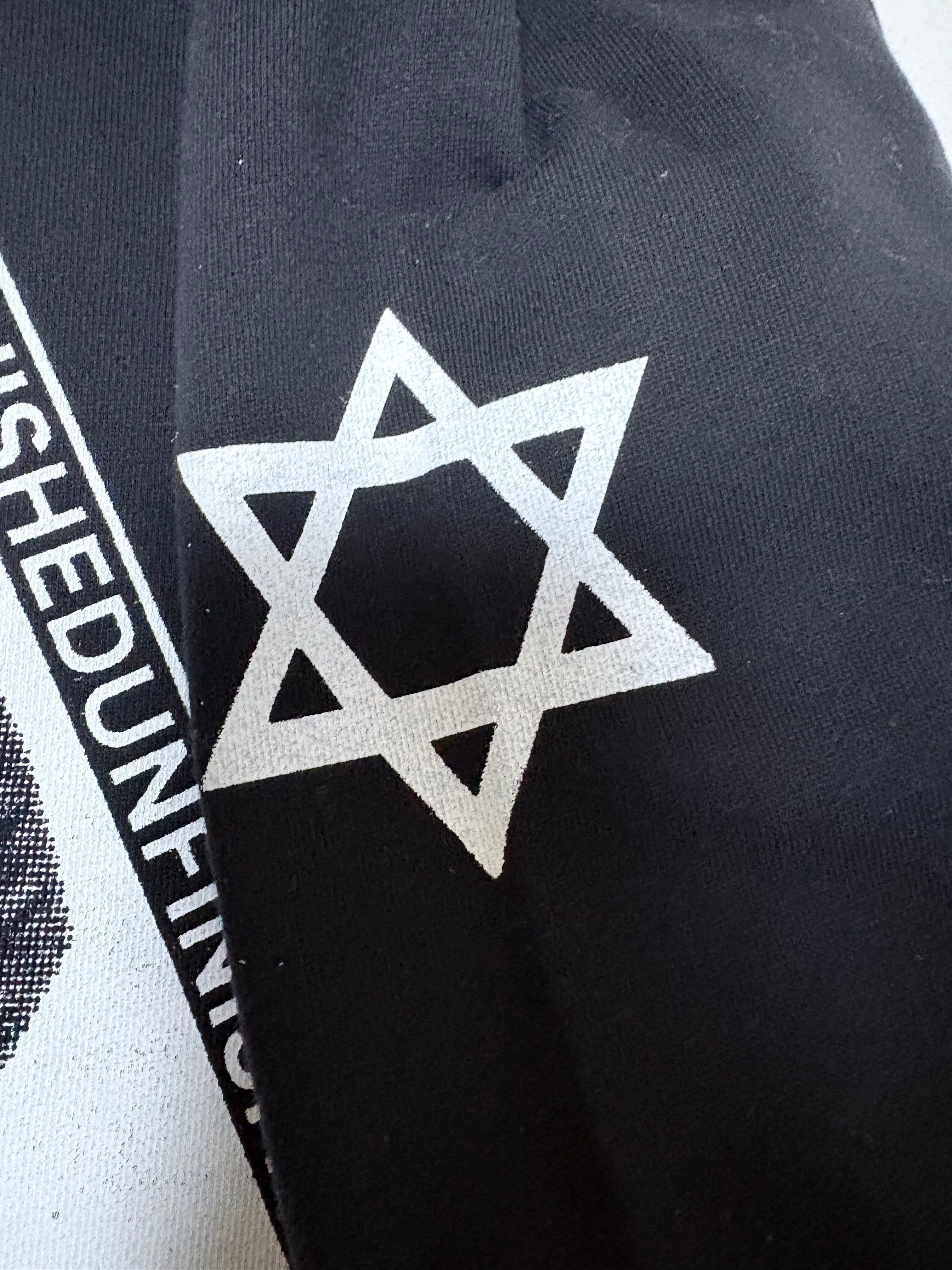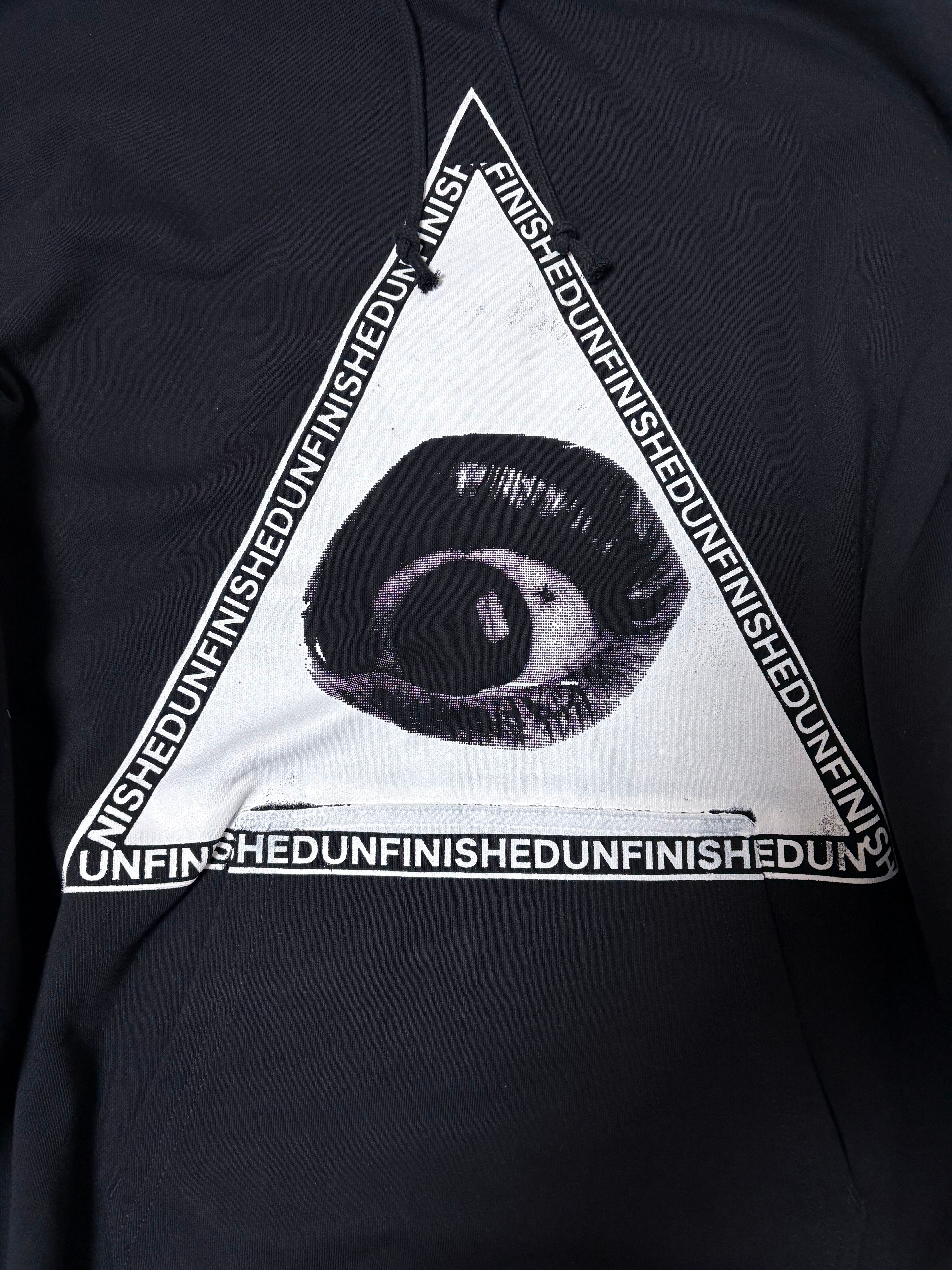 プリントは全面に目のデザインに袖は六芒星を採用しています。