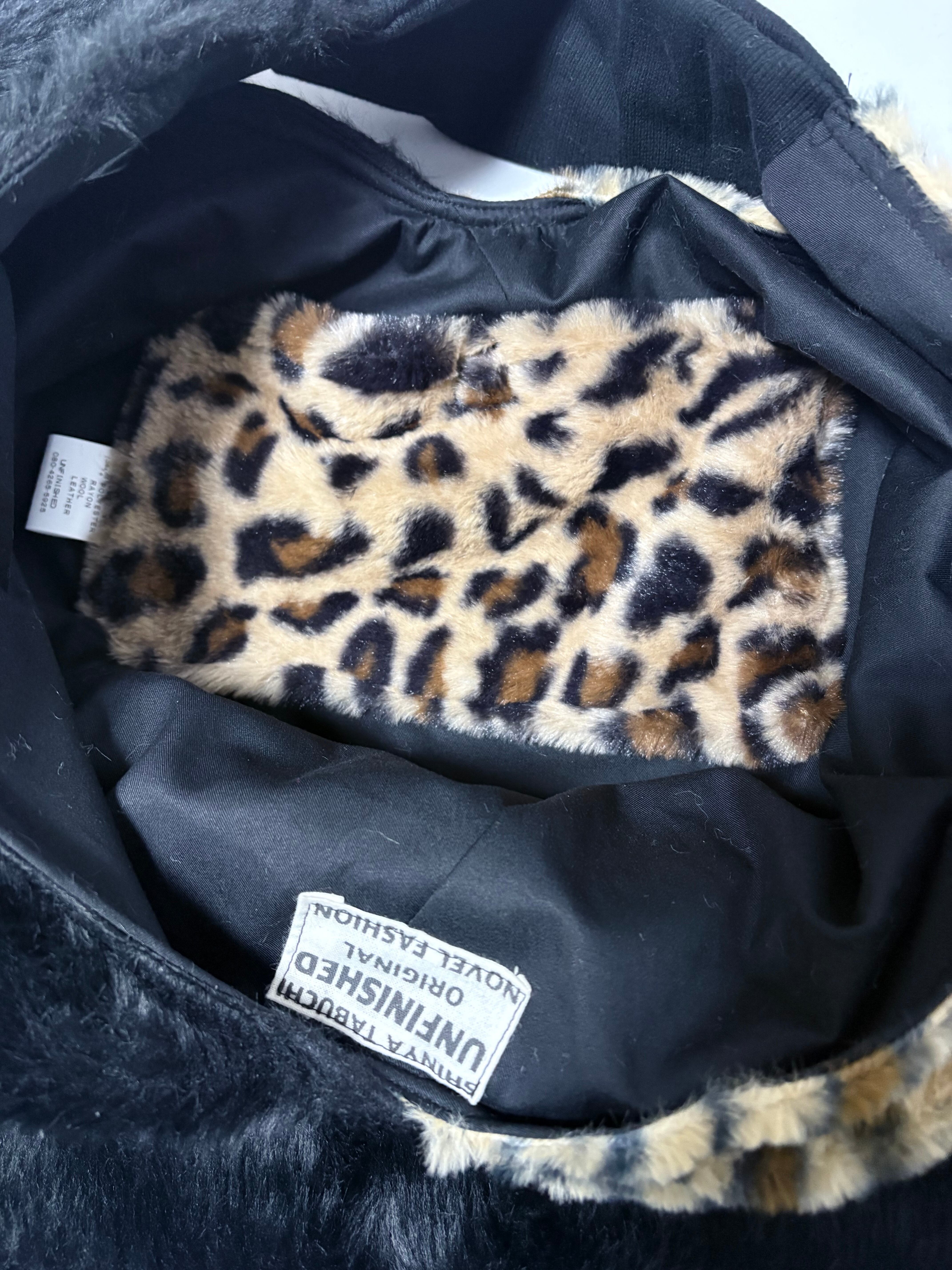 内側には豹柄のマジックテープで開閉可能なポケットを採用。