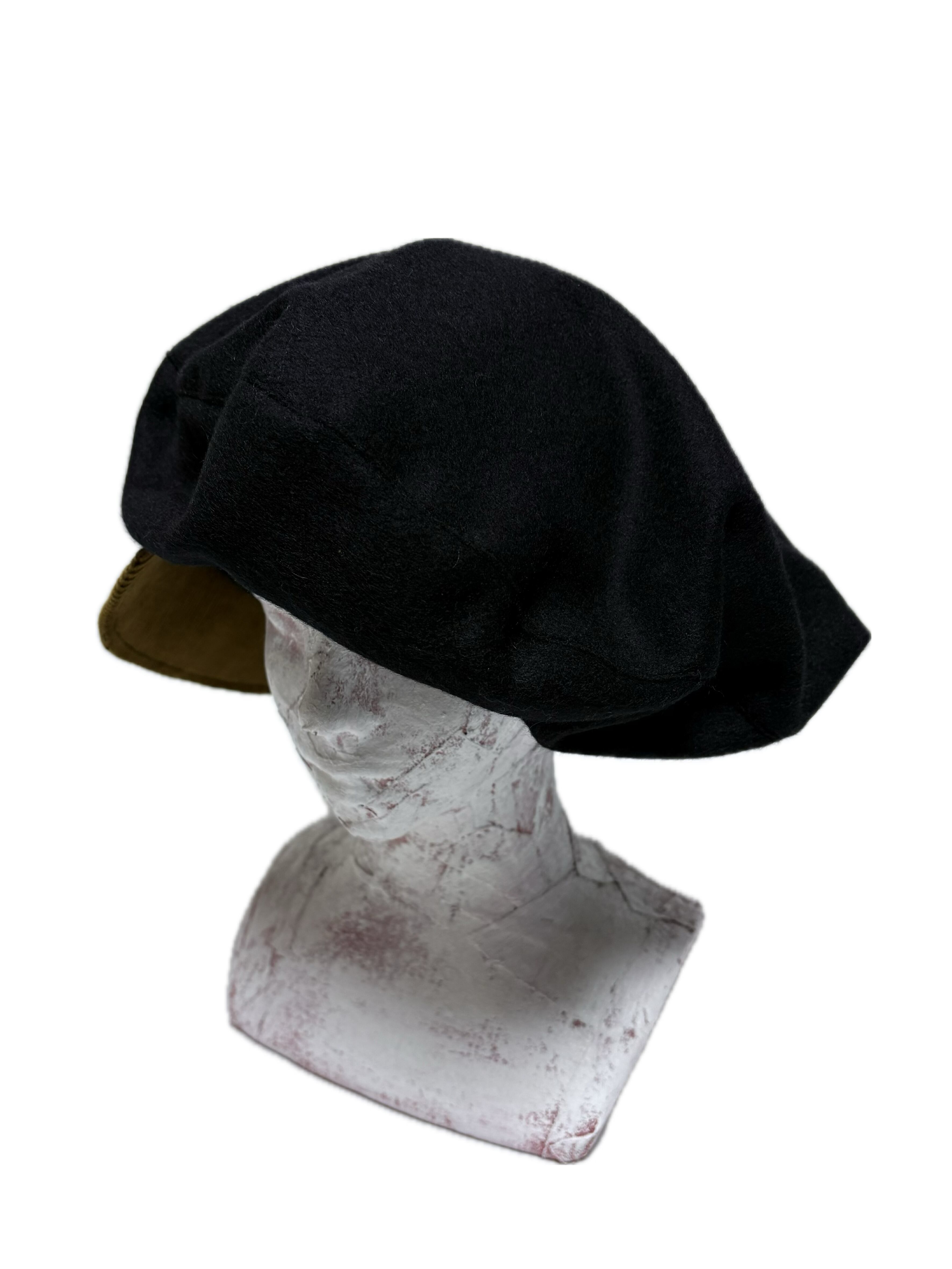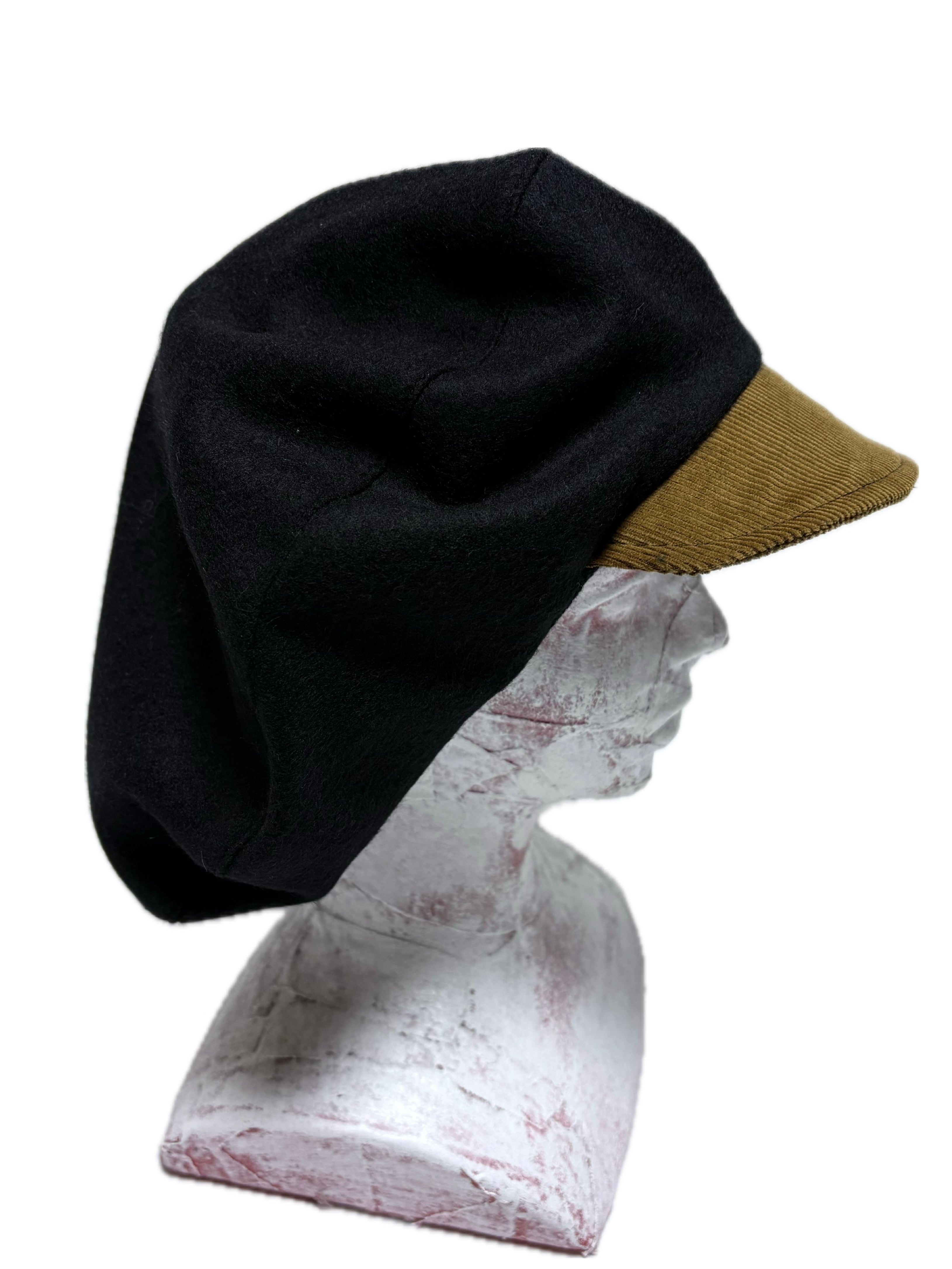UNFINISHEDキャスケット26021 ウール生地と茶色コーデュロイの切り替えビッグシルエットのキャスケットを製作しました。 リブ部分には綿の入ったパイル生地を採用しています。 【size】 頭周り60前後の方なら問題なく着用可能。 【送料】 購入金額に関わらず送料無料。
