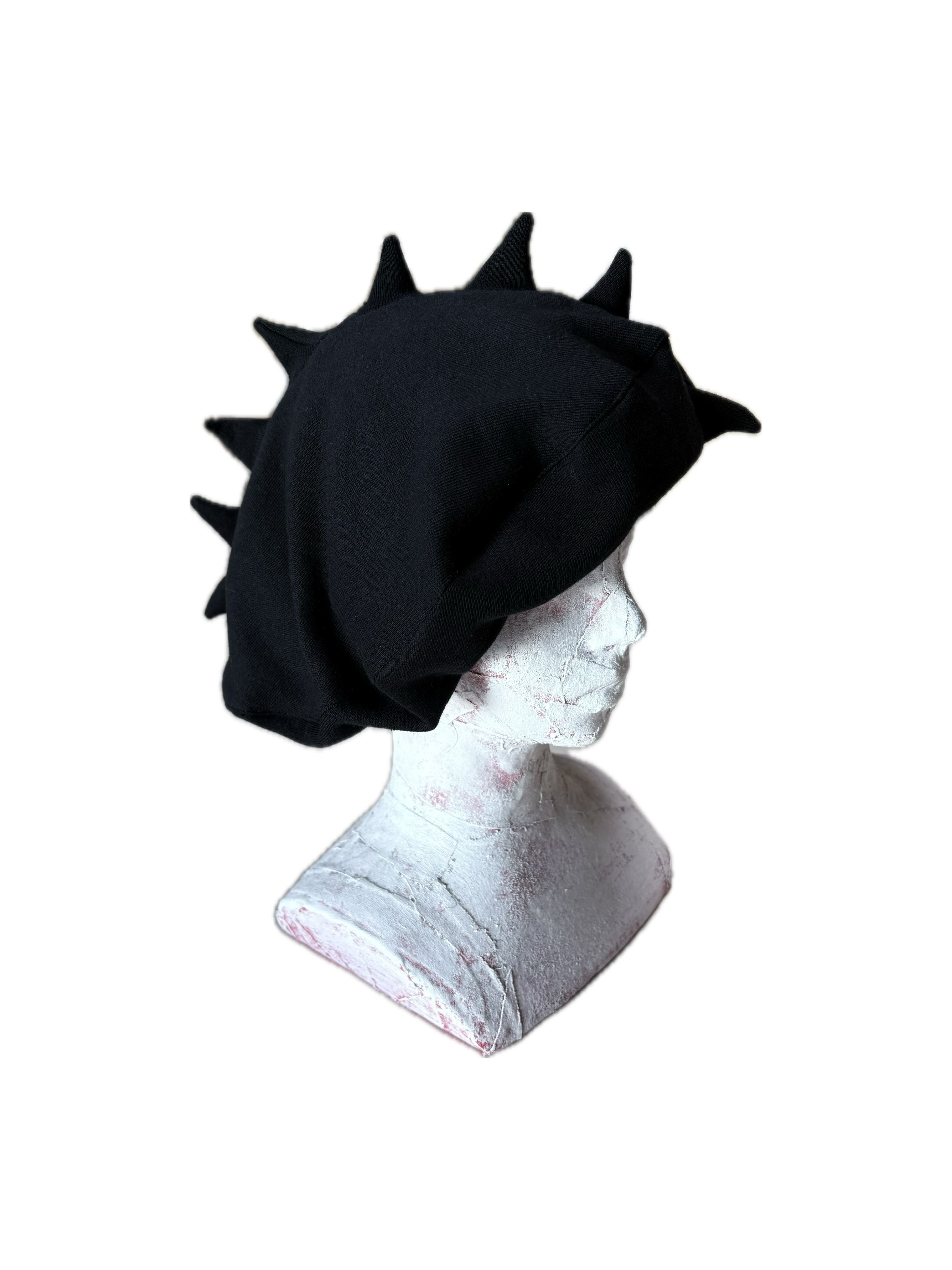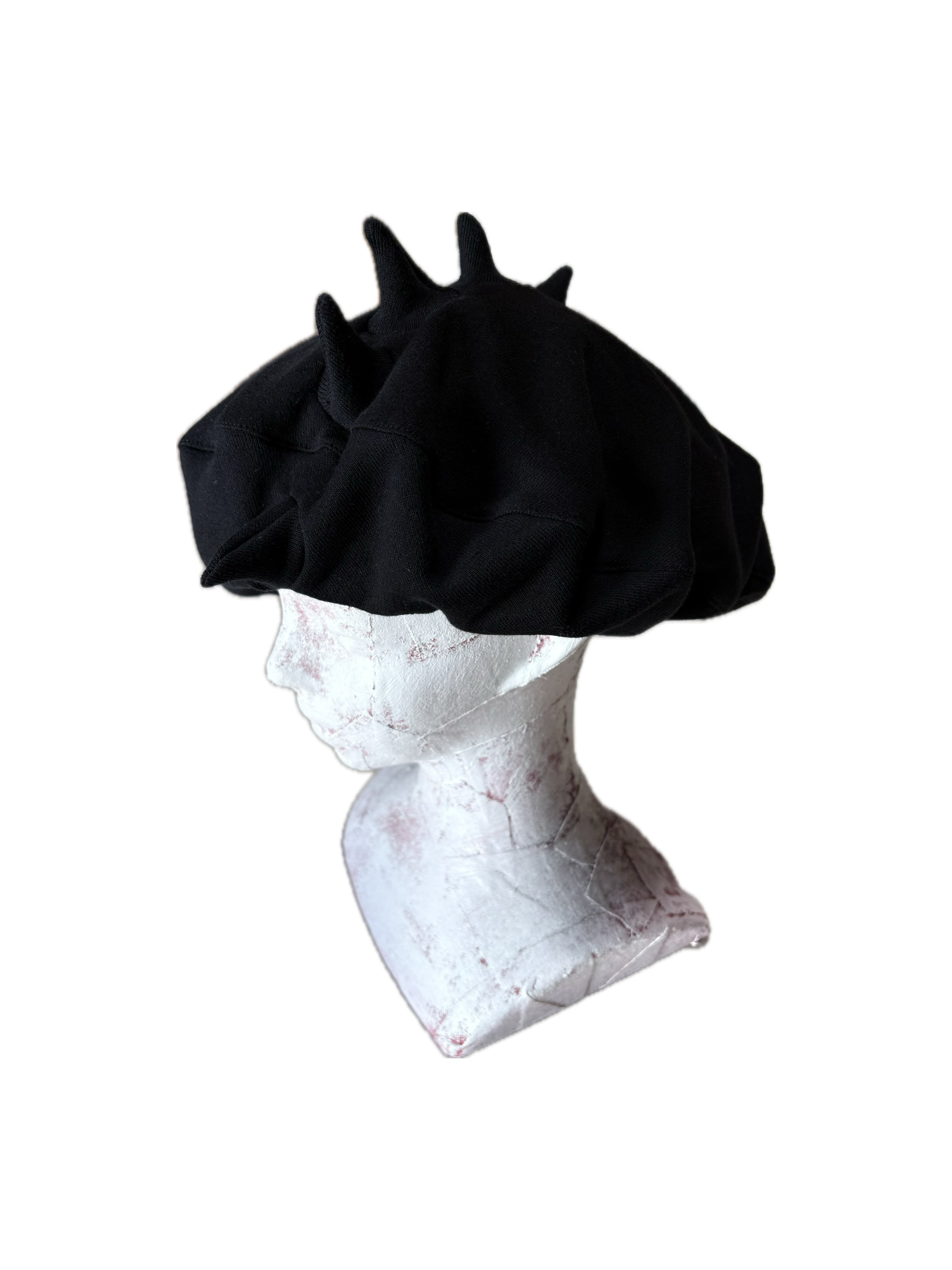 UNFINISHEDトゲトゲベレー帽26030 ビッグシルエットでトップにインパクトを出したい時に最適です。 表面にはトレーナー生地を使用しています。 【size】 頭周り58㎝〜62㎝程度の方なら問題なく着用可能。 内輪 直径(ゴムで伸びるため誤差はありますが、伸ばしていない状態で17〜20センチ程度です。) 大体の人が使用できるようゴムで収縮する仕様を採用しております。 外径 生地の端から端まで33センチ程度。 【送料】購入金額に関わらず送料無料。