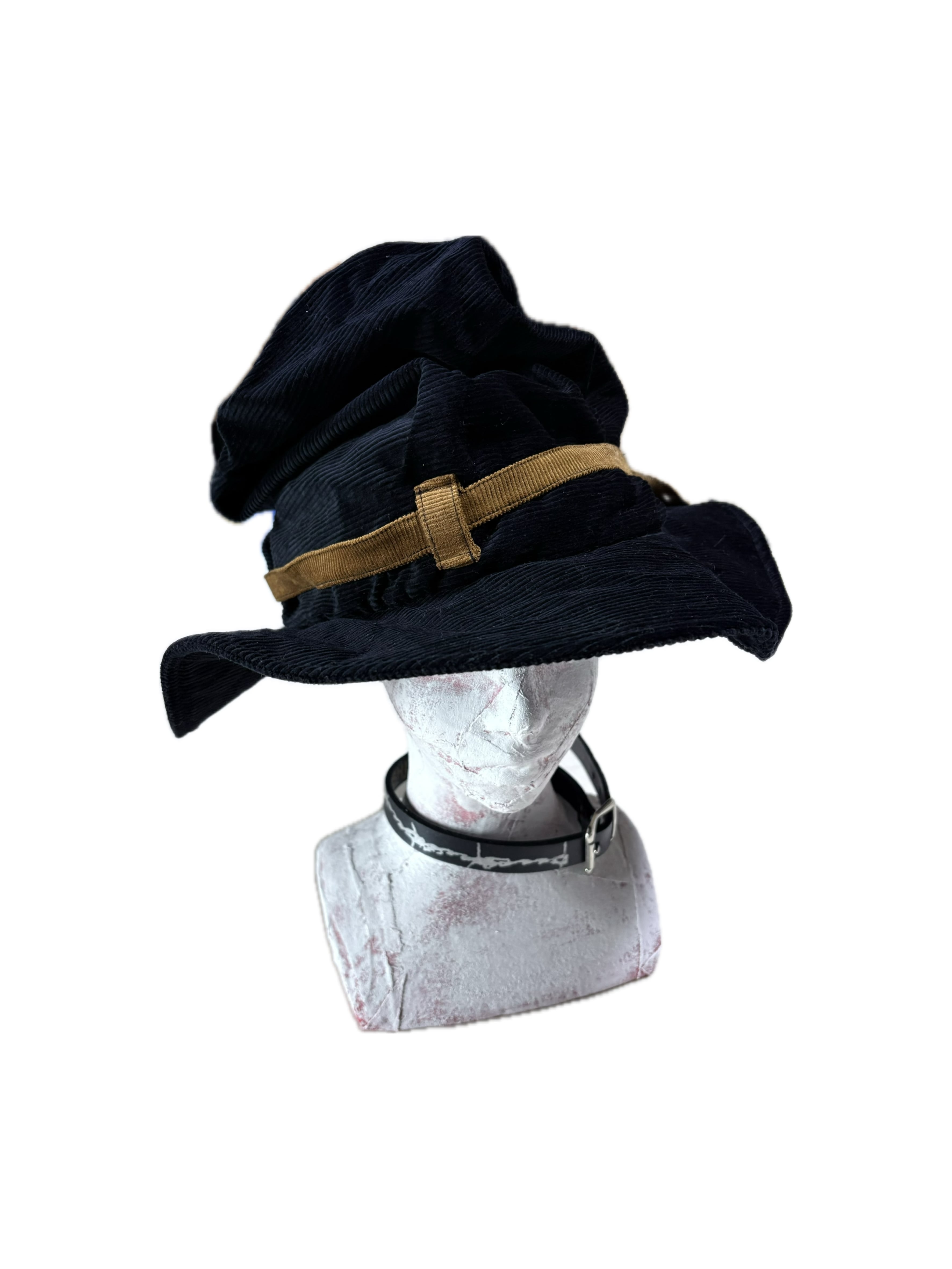 UNFINISHEDコーデュロイロングトップハット26032 コーデュロイを使用したロングトップハットを2着限定で再入荷。 黒と茶色のコーデュロイがバランスよく配置しておりコーディネートのアクセントになります。 ハットのリブ部分は柔らかいクッションを使用しており被り心地がとてもいいです。 【size】 頭周り60㎝前後の方なら問題なく着用可能。 外径 ツバの端から端まで31㎝程度。 内側リブ部分 直径18~20㎝ 購入金額に関わらず送料無料。 ※チョーカーは別売りです。