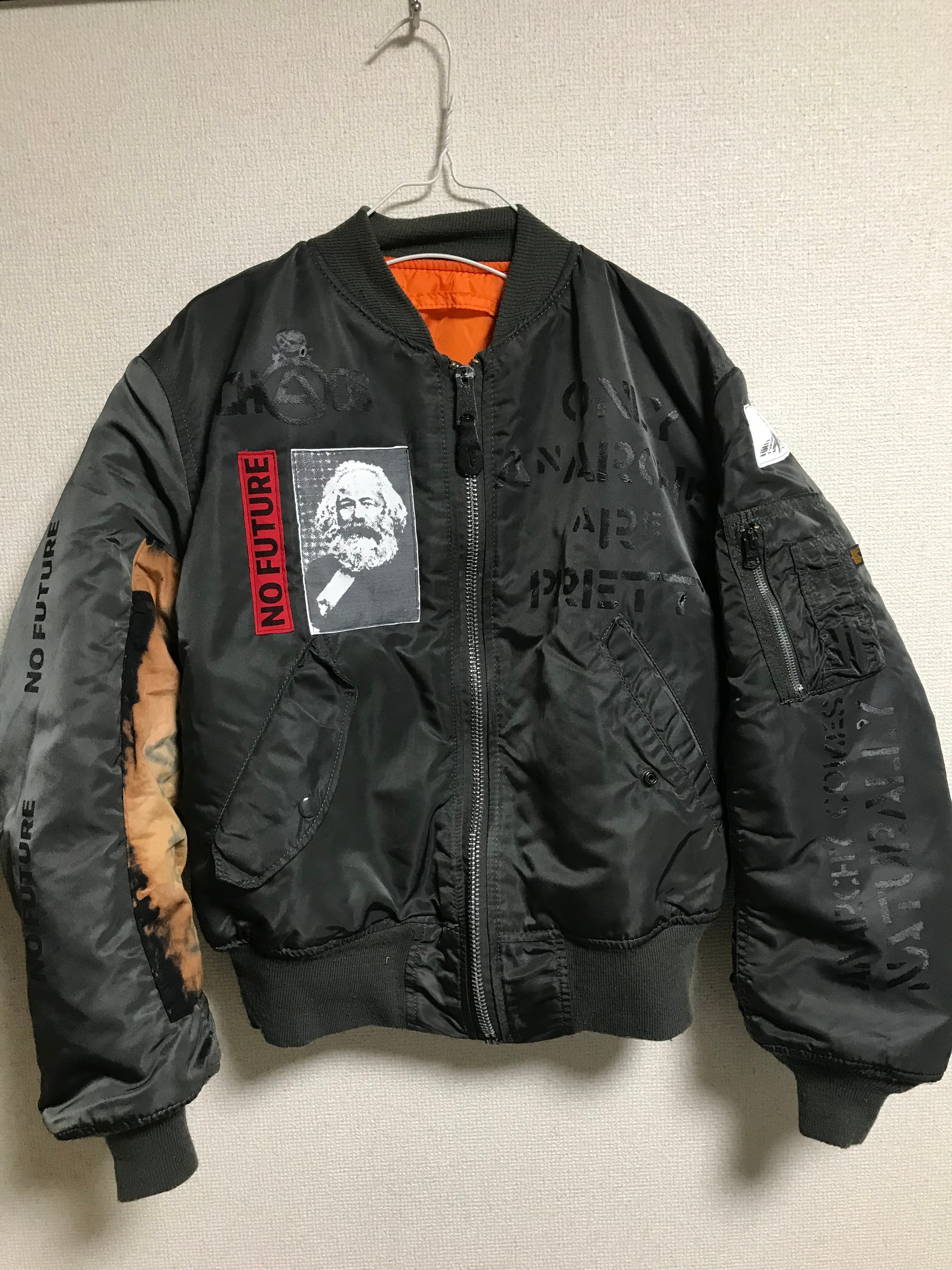 こちらの商品は、ロスコのMA1をベースにアナーキー加工を施してあります。