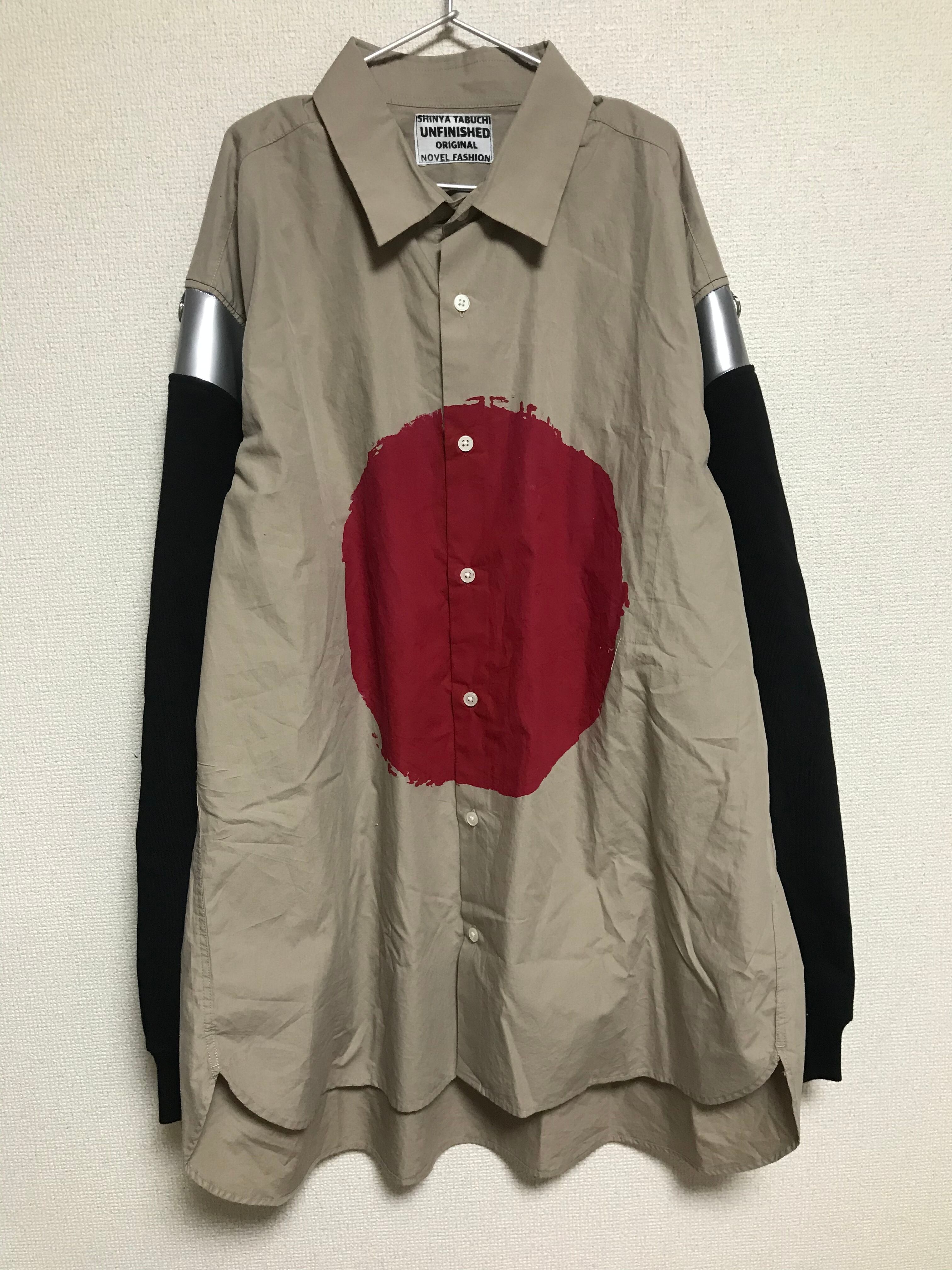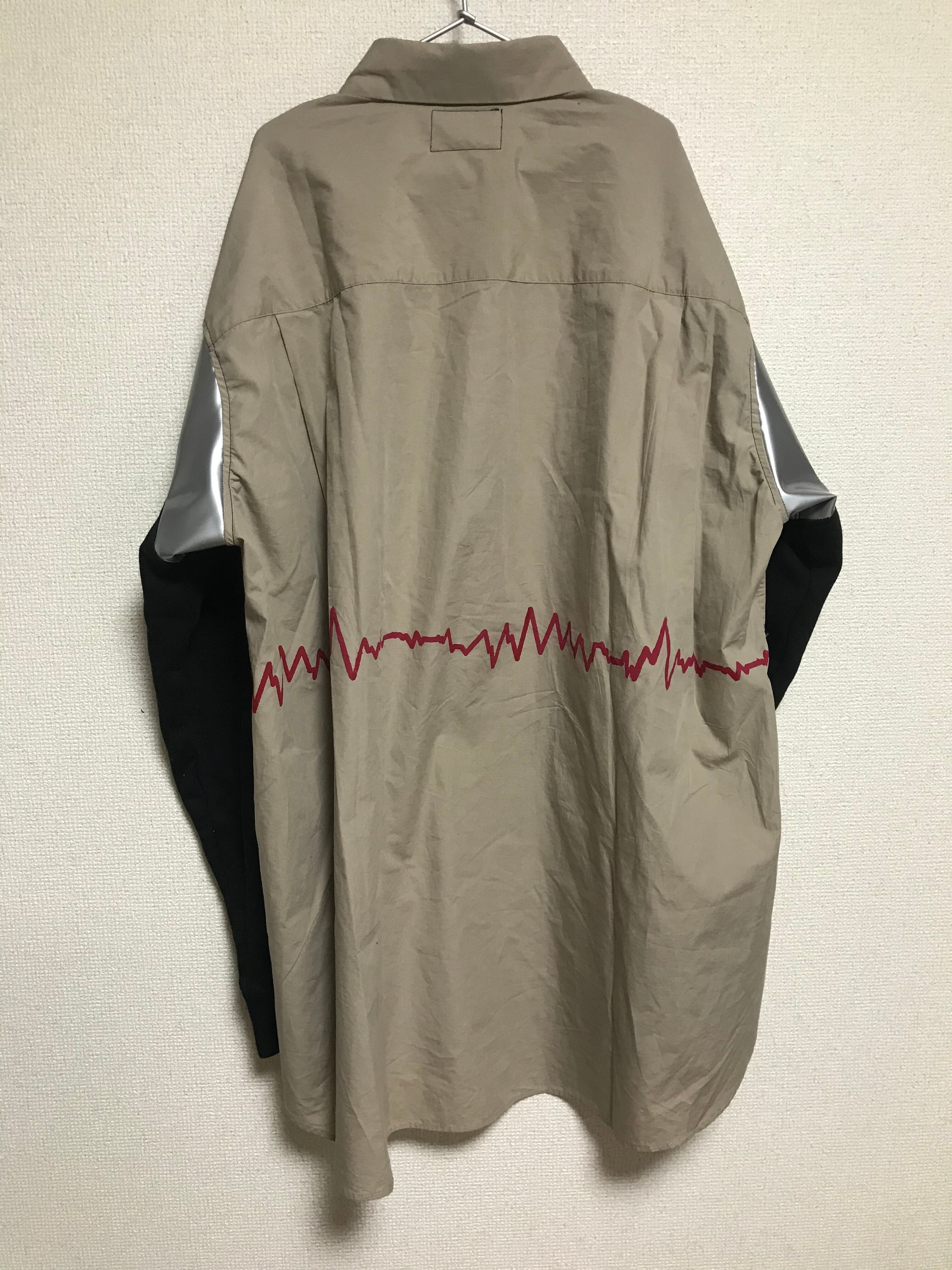 袖の切り替えが独特な切り替えシャツです。 胸には日本の国旗、背中には心電図を配置。 【サイズ】 肩幅50 着丈77 身幅60