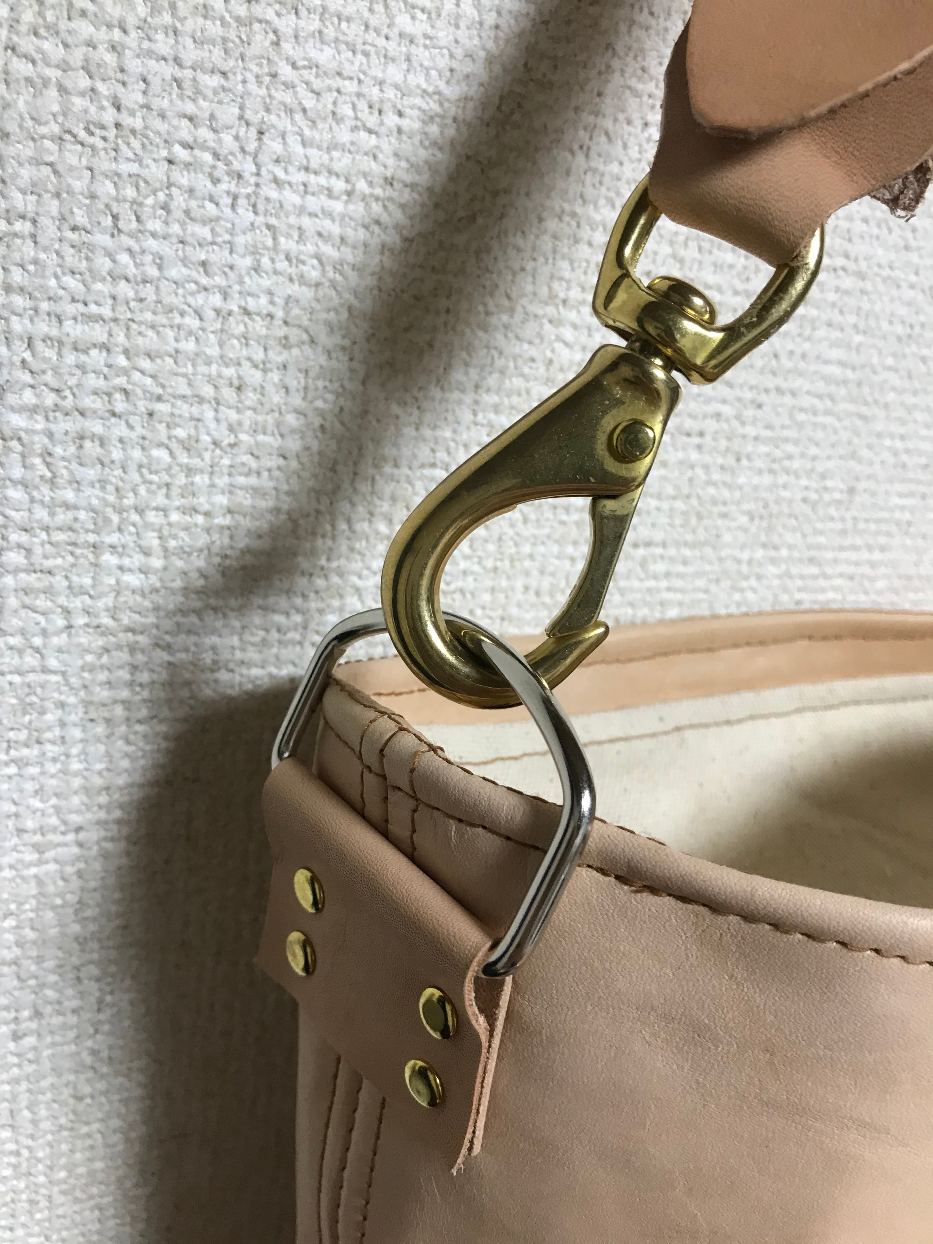 高品質なヌメ革ナチュラルをベースにショルダーバッグ 革は使うごとに焦げ茶になって行きます。 ベルト取り付け金具は高級感ある物を厳選して選びました。 【サイズ】 横40㎝ 縦32㎝ ベルトの長さ 取り付け金具の端から端まで90〜68㎝で調整可能。