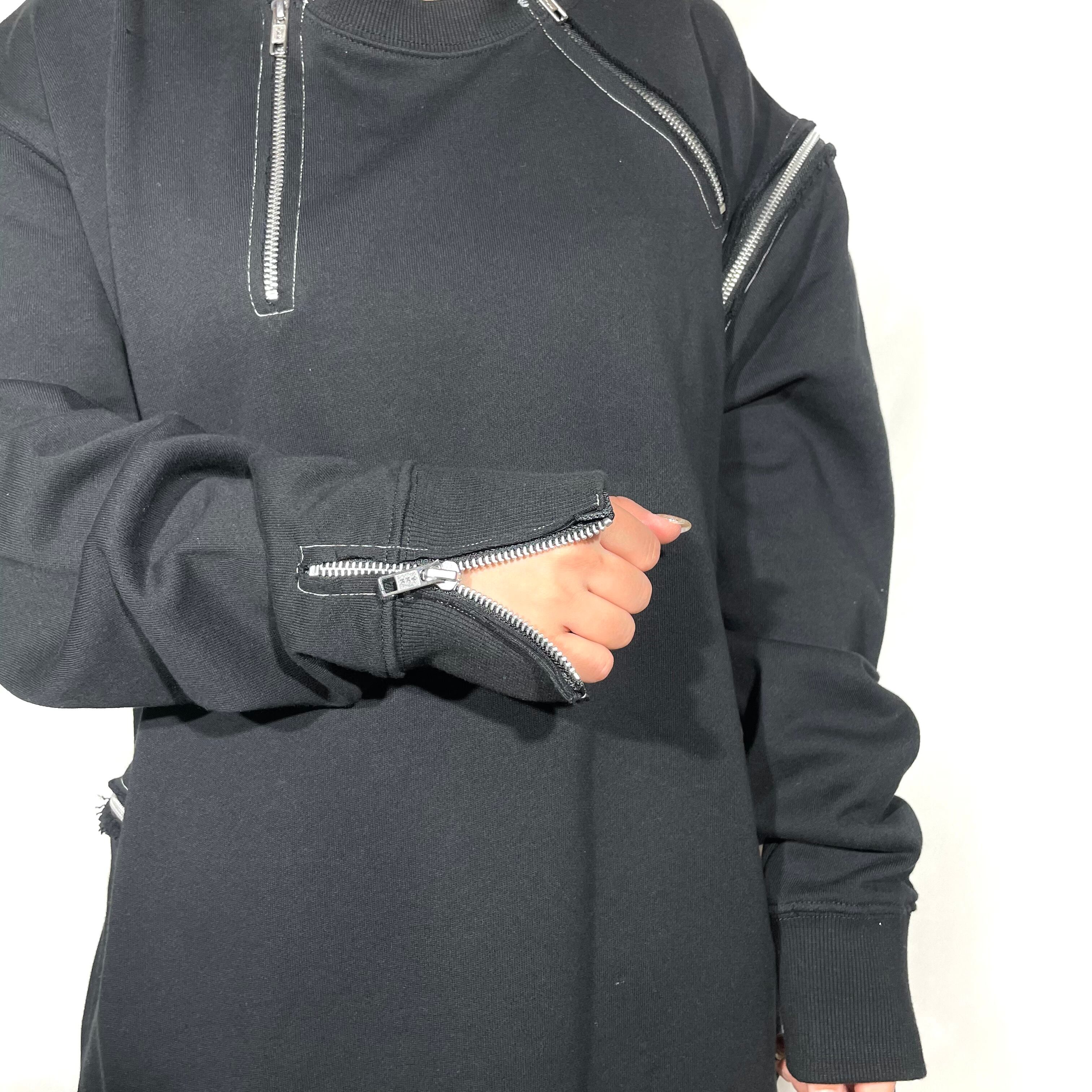 ファスナーを開閉することで、コーディネートのバリエーションを増やしてくれます。
