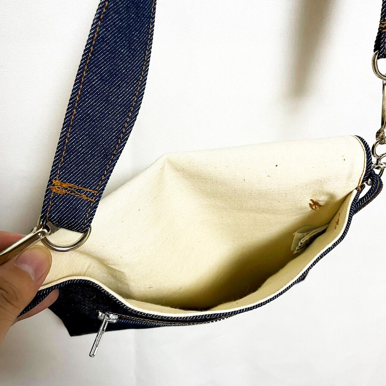 岡山デニムを使用しており、使えば使うほど味が出る丈夫なサコッシュです。 デニム素材のため、長くご使用いただけます。 内側には小物を入れるときに便利なファスナーポケット。 【サイズ】 サコッシュ 縦21㎝横23㎝ ベルト バックルで幅広く調整可能 【送料】 購入金額に関わらず送料無料