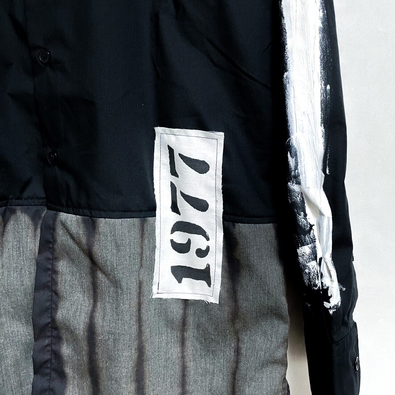 アナーキーシャツからインスピレーションを受けた、切り替えシャツコートです。 生地は薄手のシャツ生地をベースに製作しており、秋春に活躍するアイテムです。 【サイズ】 肩幅44 身幅55 着丈90 【送料】 購入金額に関わらず送料無料