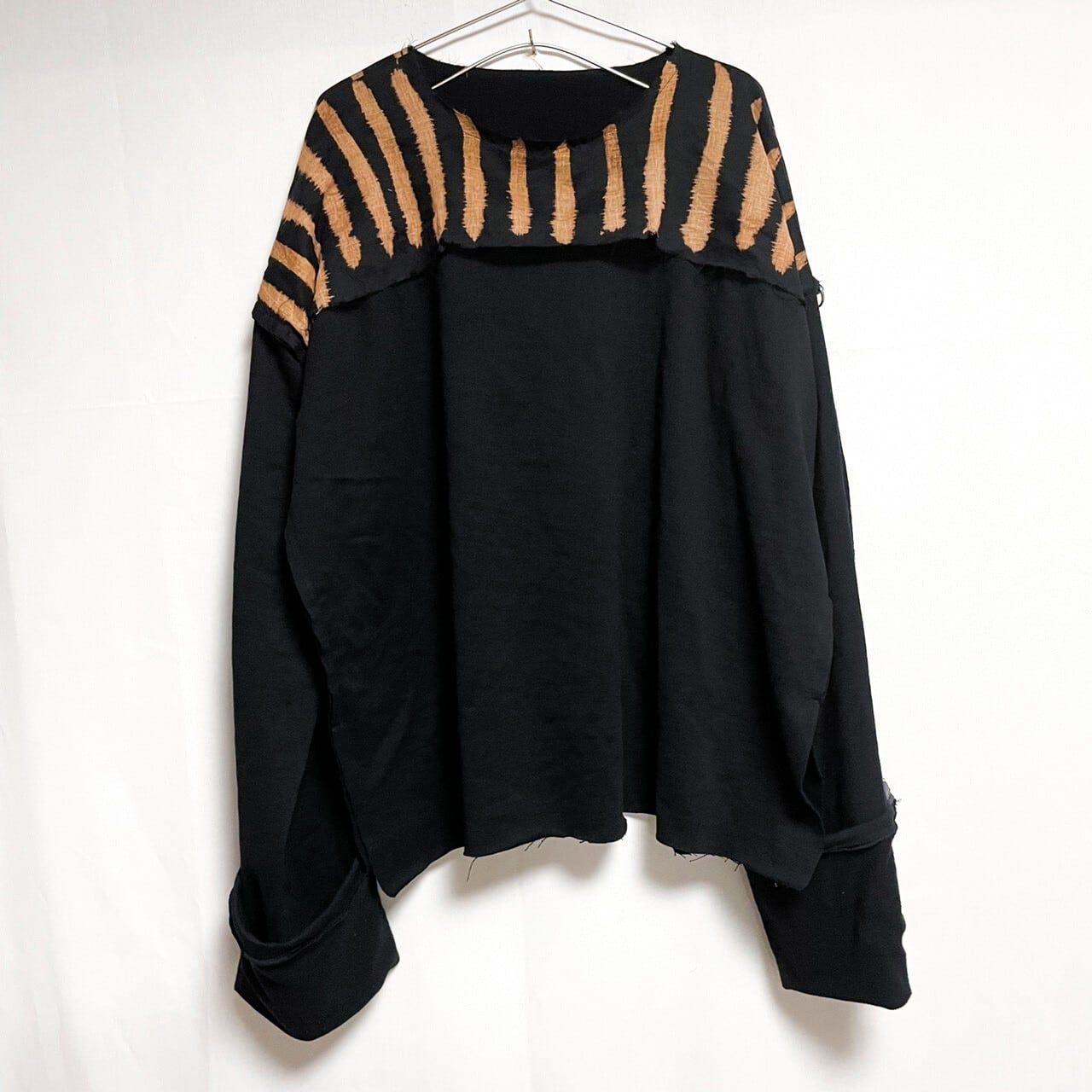 こちらの商品は拘束服をモチーフに、トレーナー生地で製作したガーゼシャツです。