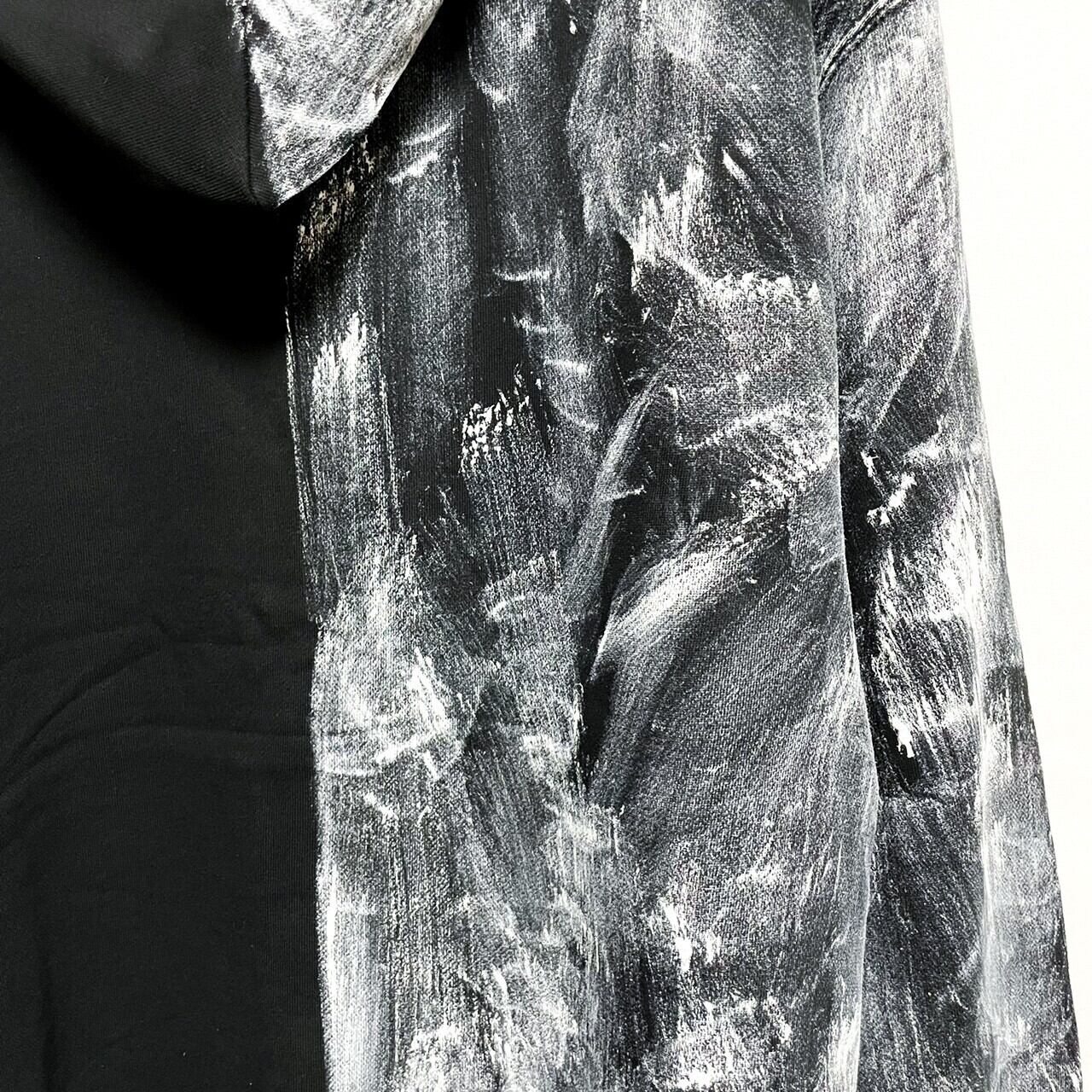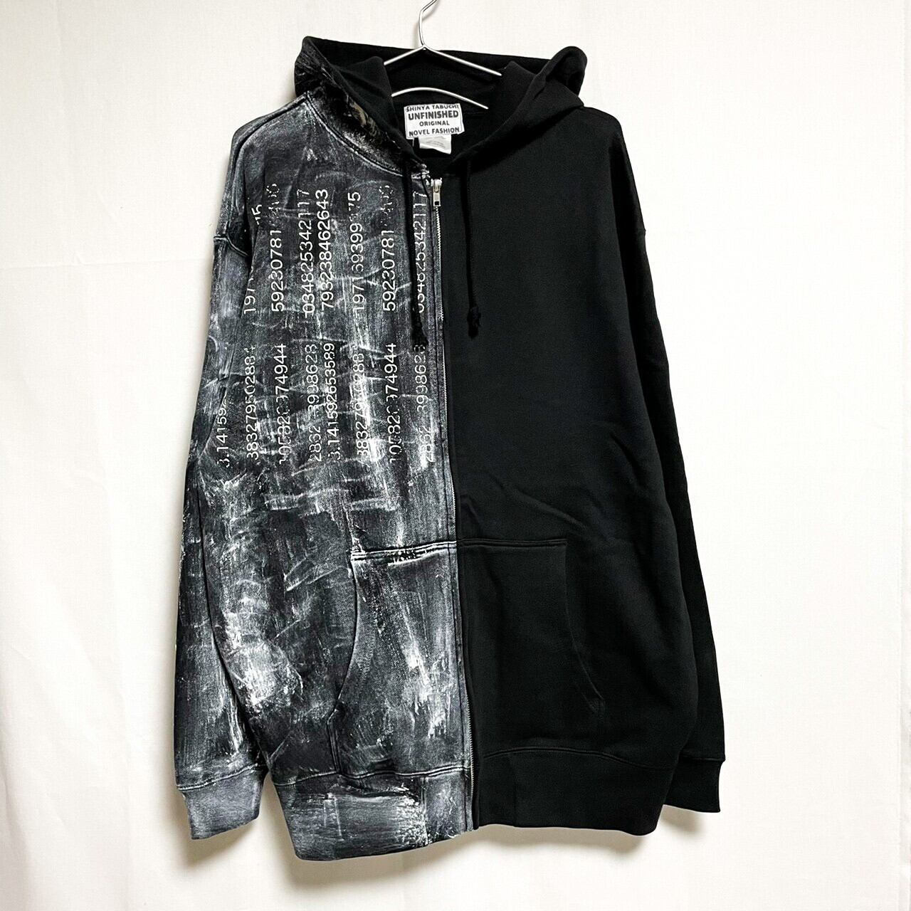 廃墟をイメージした円周率柄のパーカーです。 オーバーサイズのパーカーをベースに制作しており、ユニセックスで着用いただけます。 【サイズ】 肩幅53 着丈75 身幅65 【送料】 購入金額に関わらず送料無料