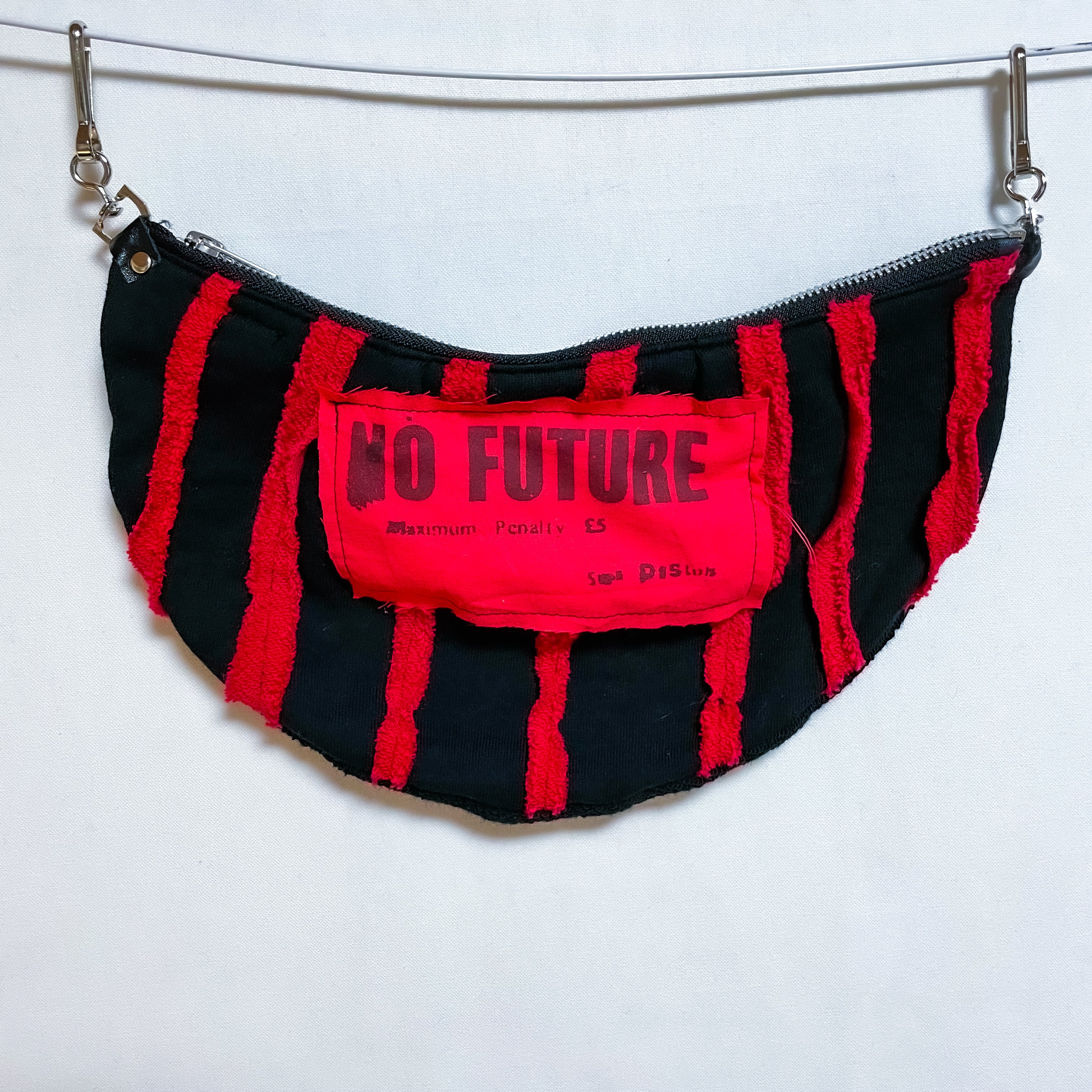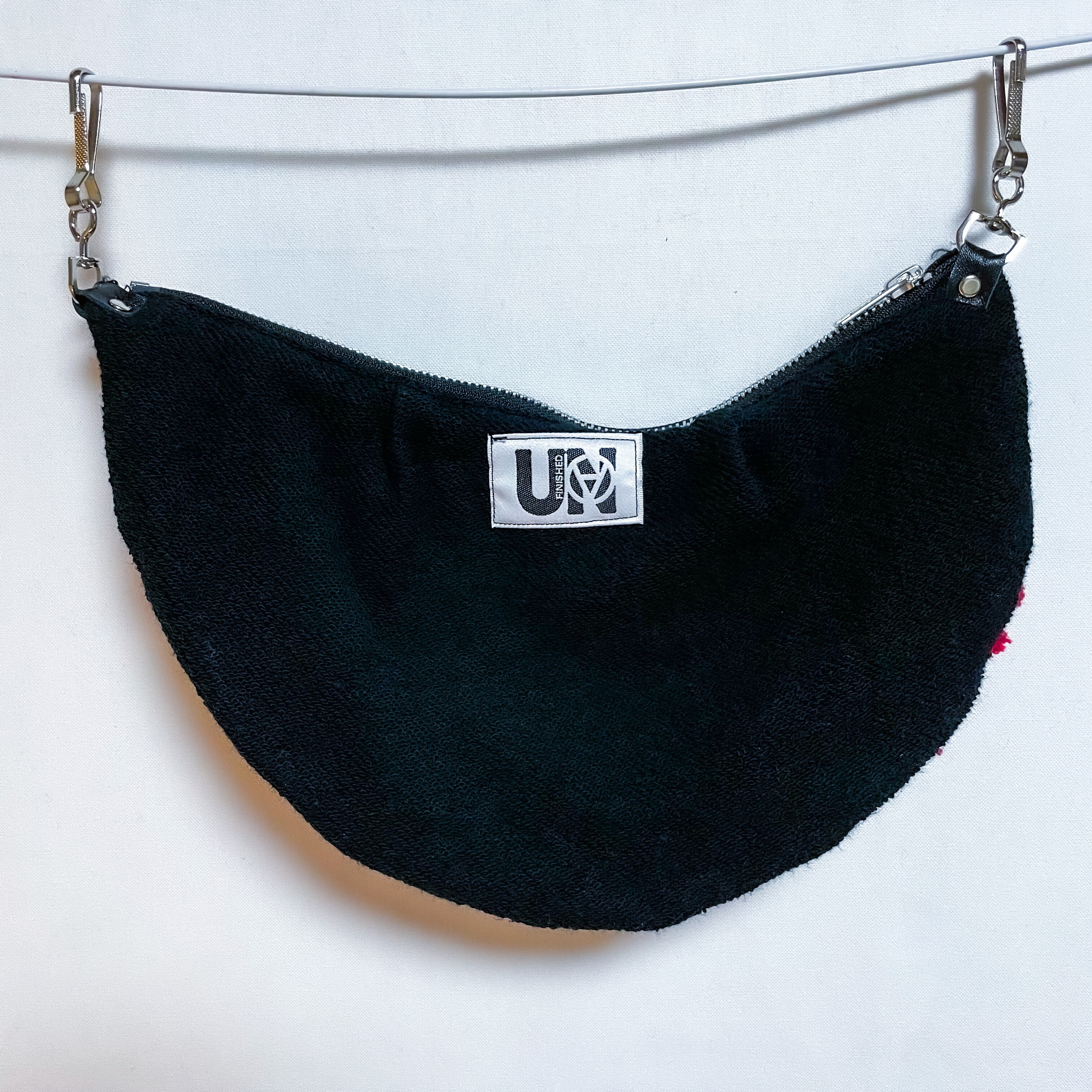 ブラック×レッド バムフラップ トレーナー生地をベースに赤と黒で構成したバムフラップです。 背面は裏表逆にしたパイル地を採用。 使用方法としては、ベルトループにカラビナを取り付けるだけです。 【サイズ】 生地の端から端まで 横28㎝ 縦20㎝ 金具の端から金具の端まで42㎝ 購入金額に関わらず送料無料。