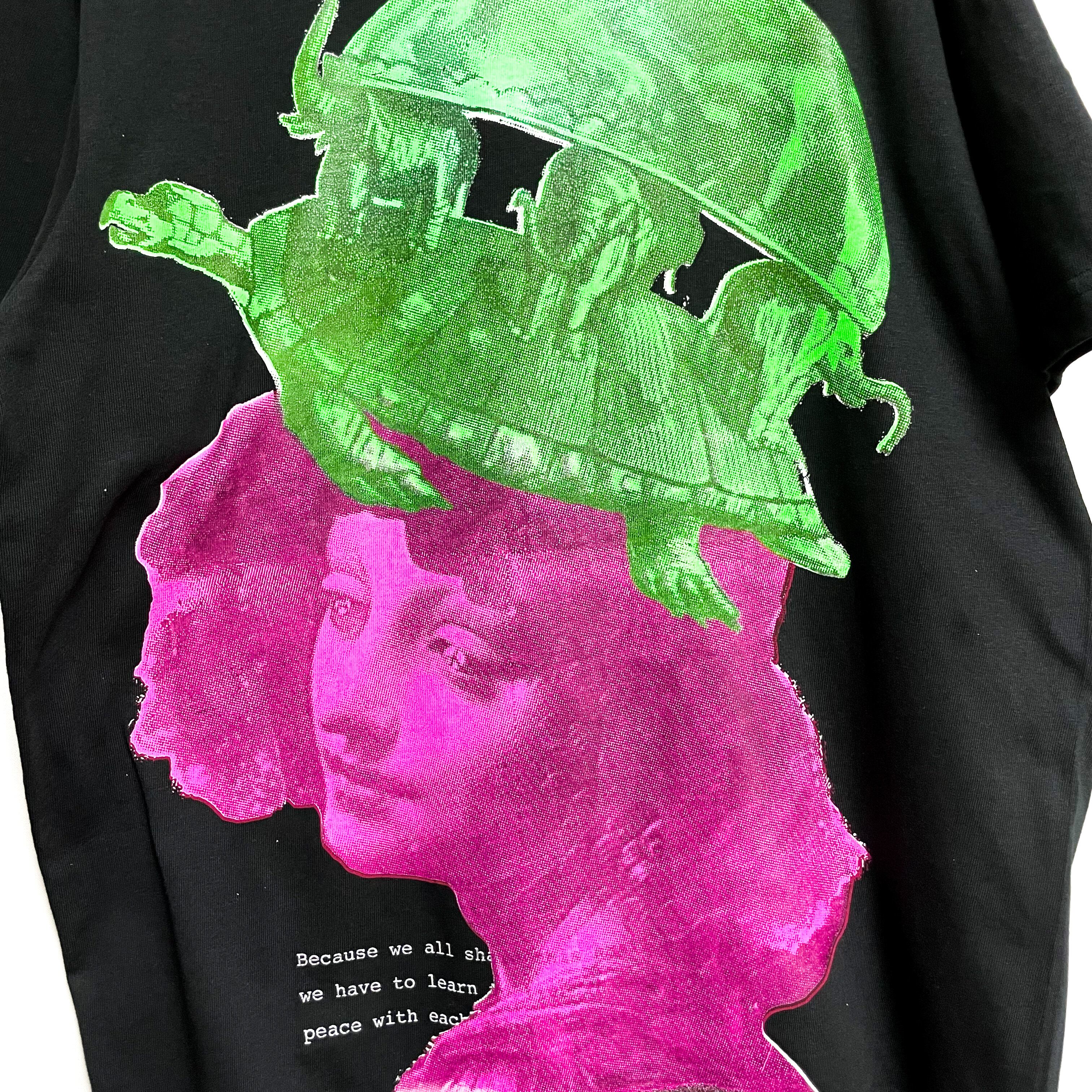 世界平和を題材にピースマークやアナーキーマークをモチーフにした作品。