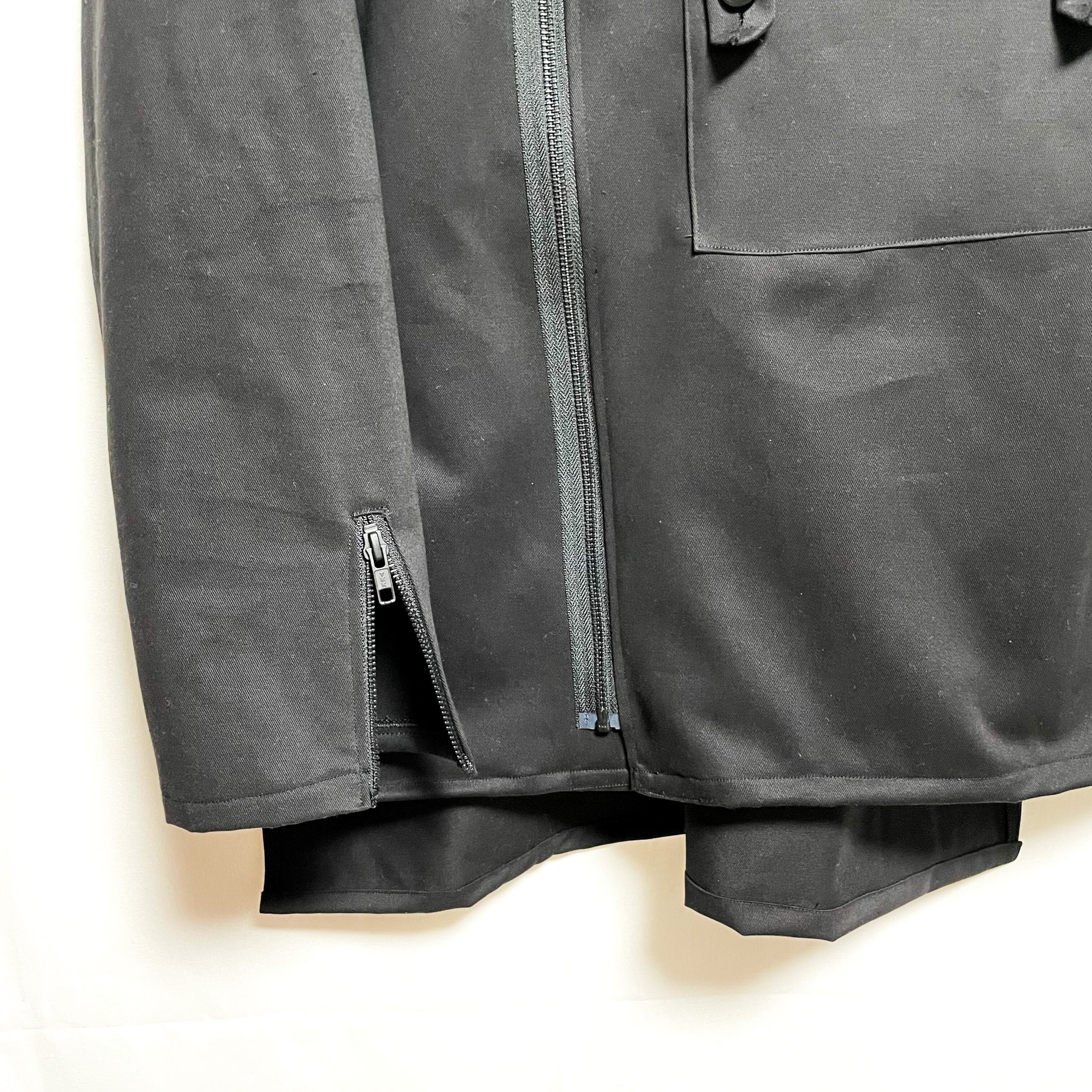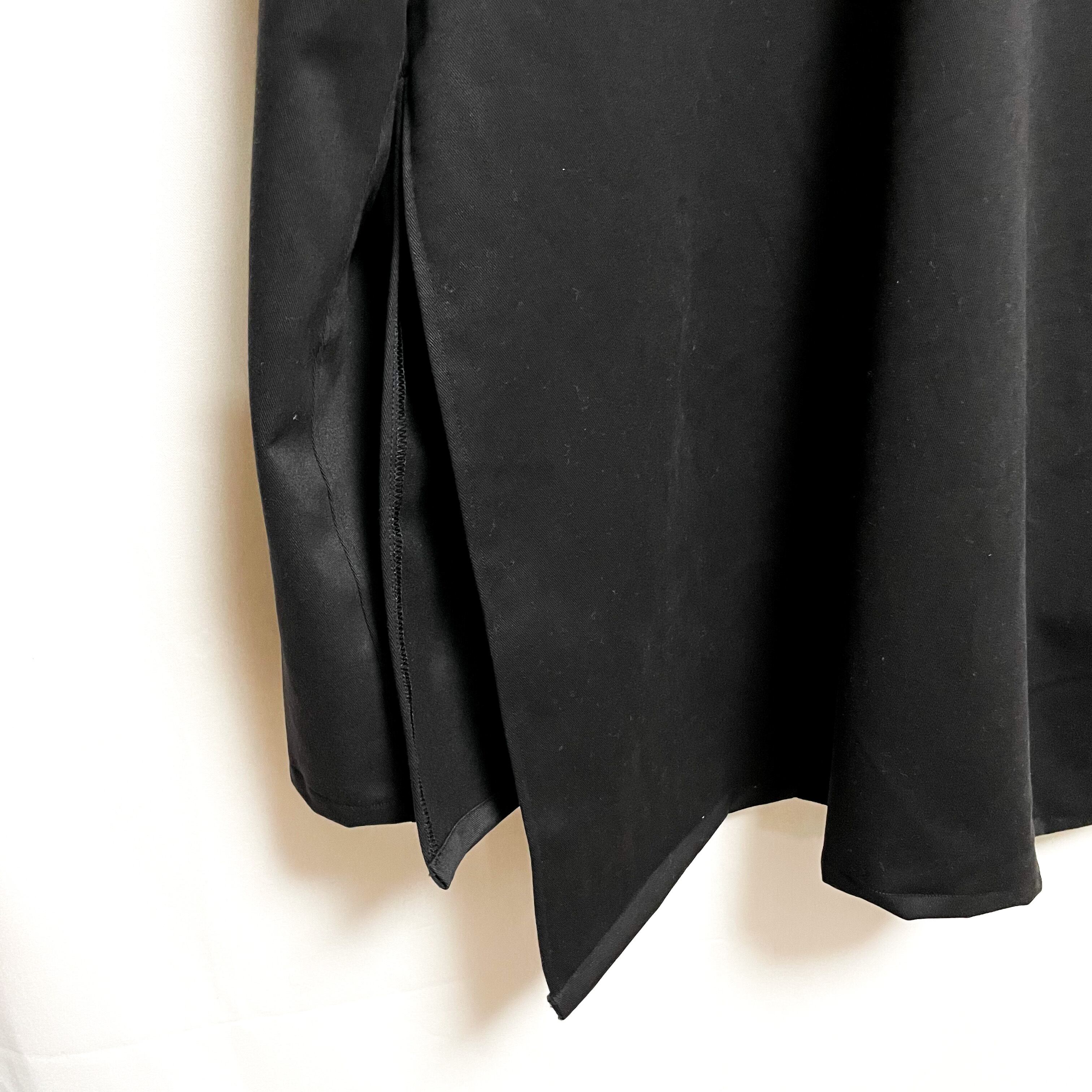 背見頃が前見頃より長く脇部分から前と後ろが切れている為マントのようなシルエットを実現。インナーを見せることができます。