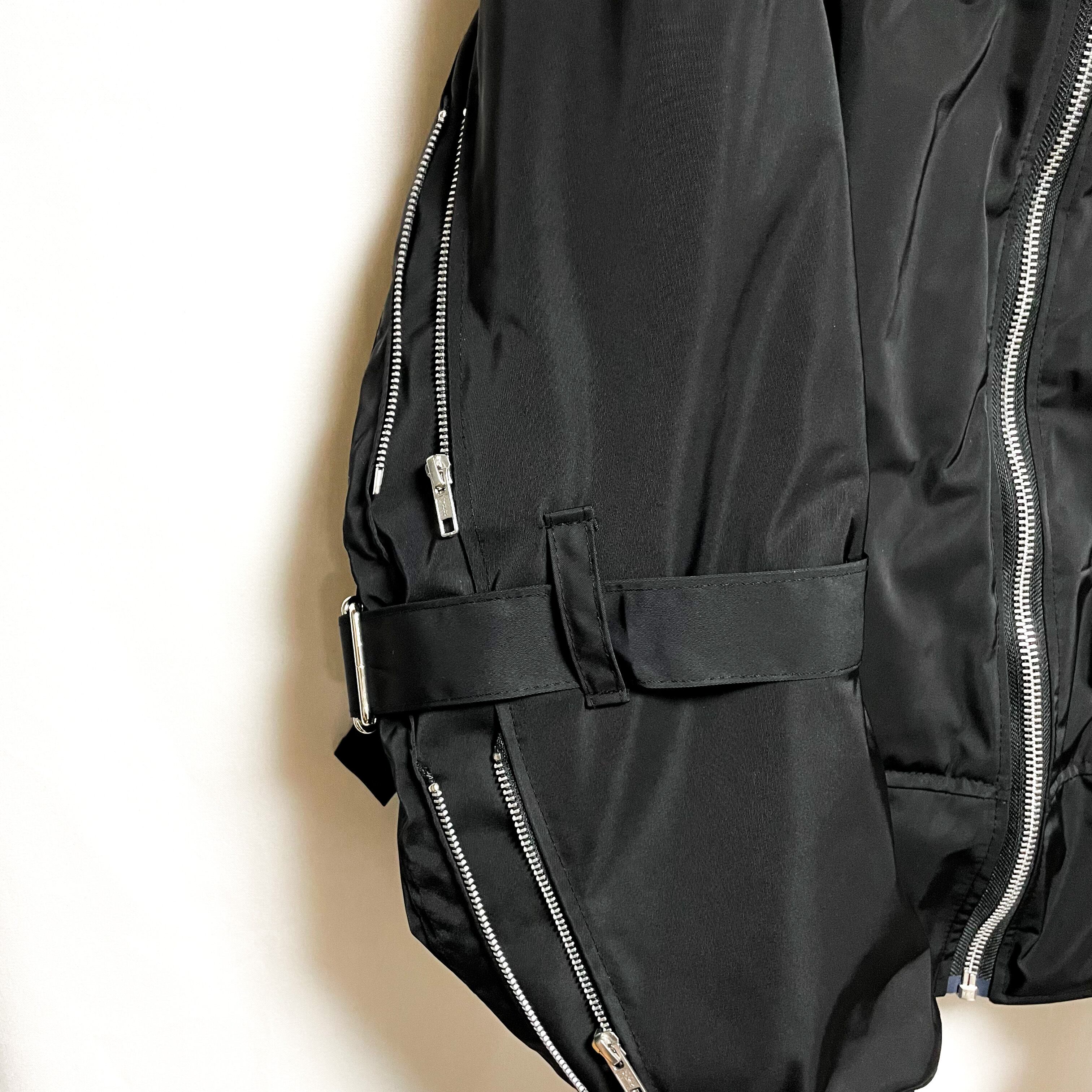 ボンテージパンツの要素とMA-1ジャケットの要素を取り入れた中綿入りジャケットです。