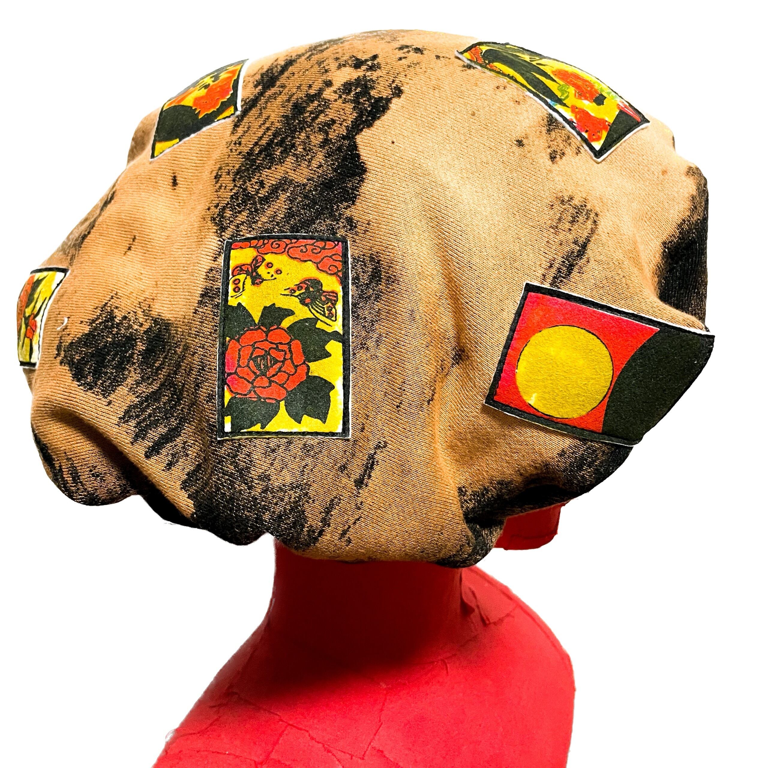 ブリーチ加工を施した花札シリーズのベレー帽です。