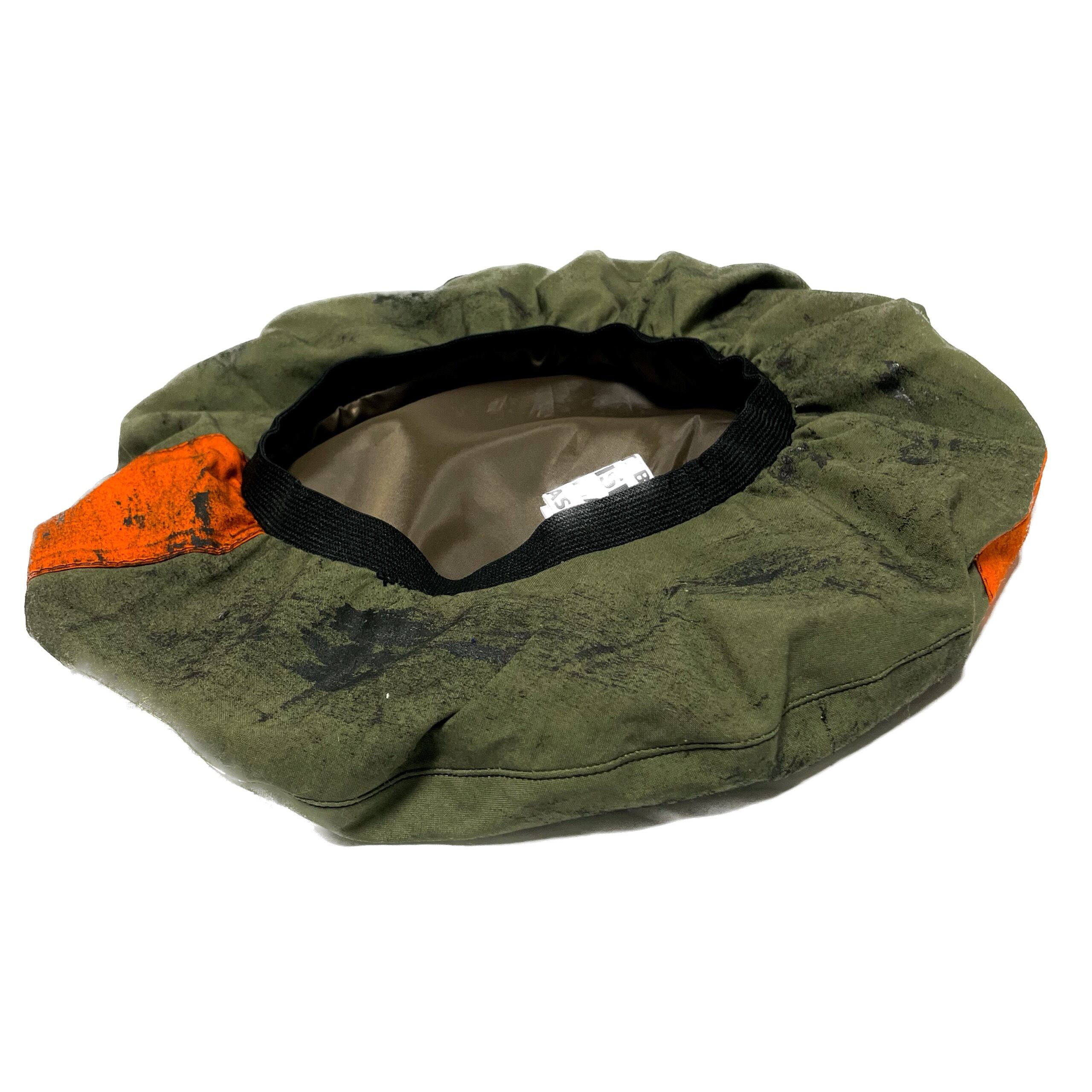 カーキーとオレンジの際立つビッグシルエットベレー帽。