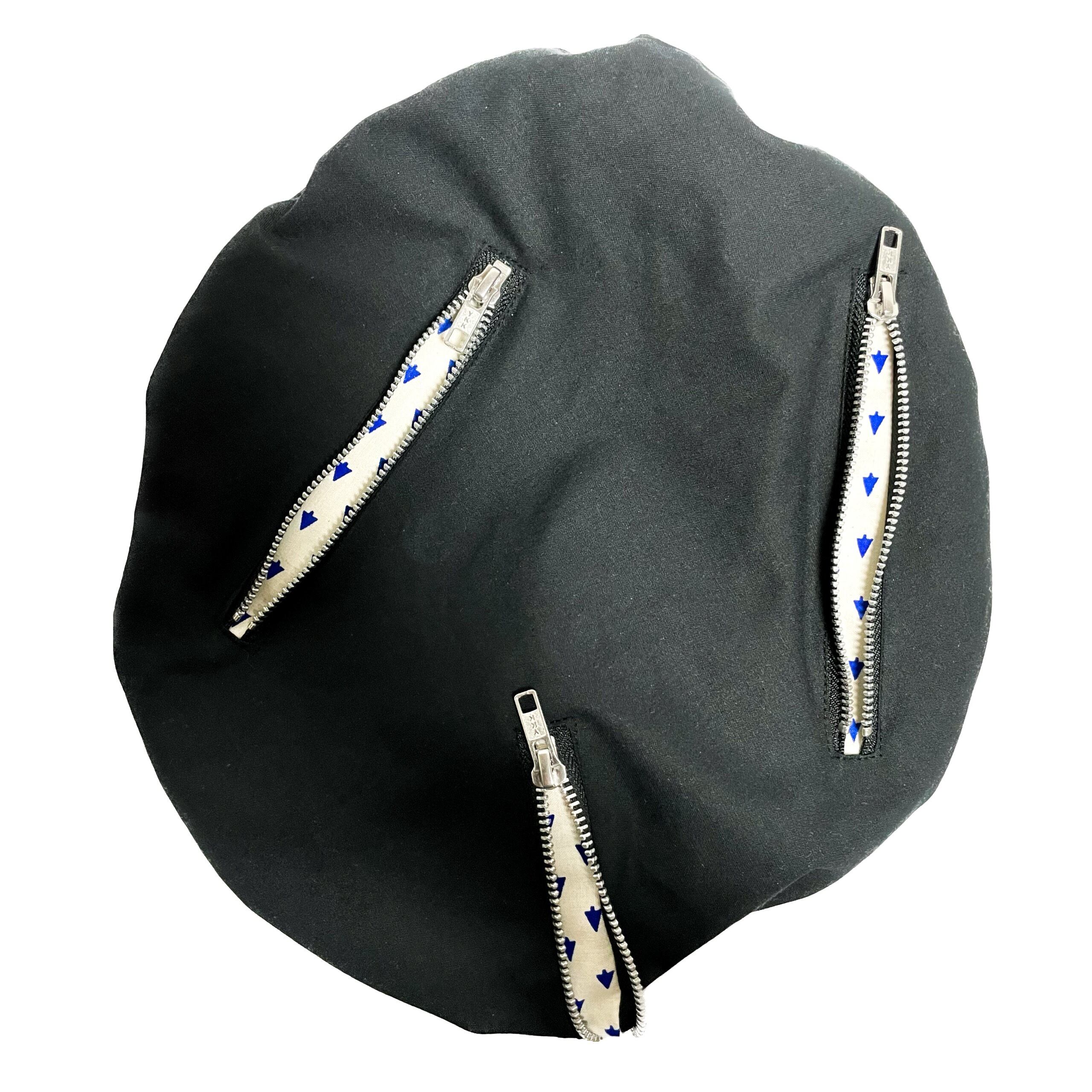 被った時にファスナーの取手部分が垂れるようシルエットを工夫しました。