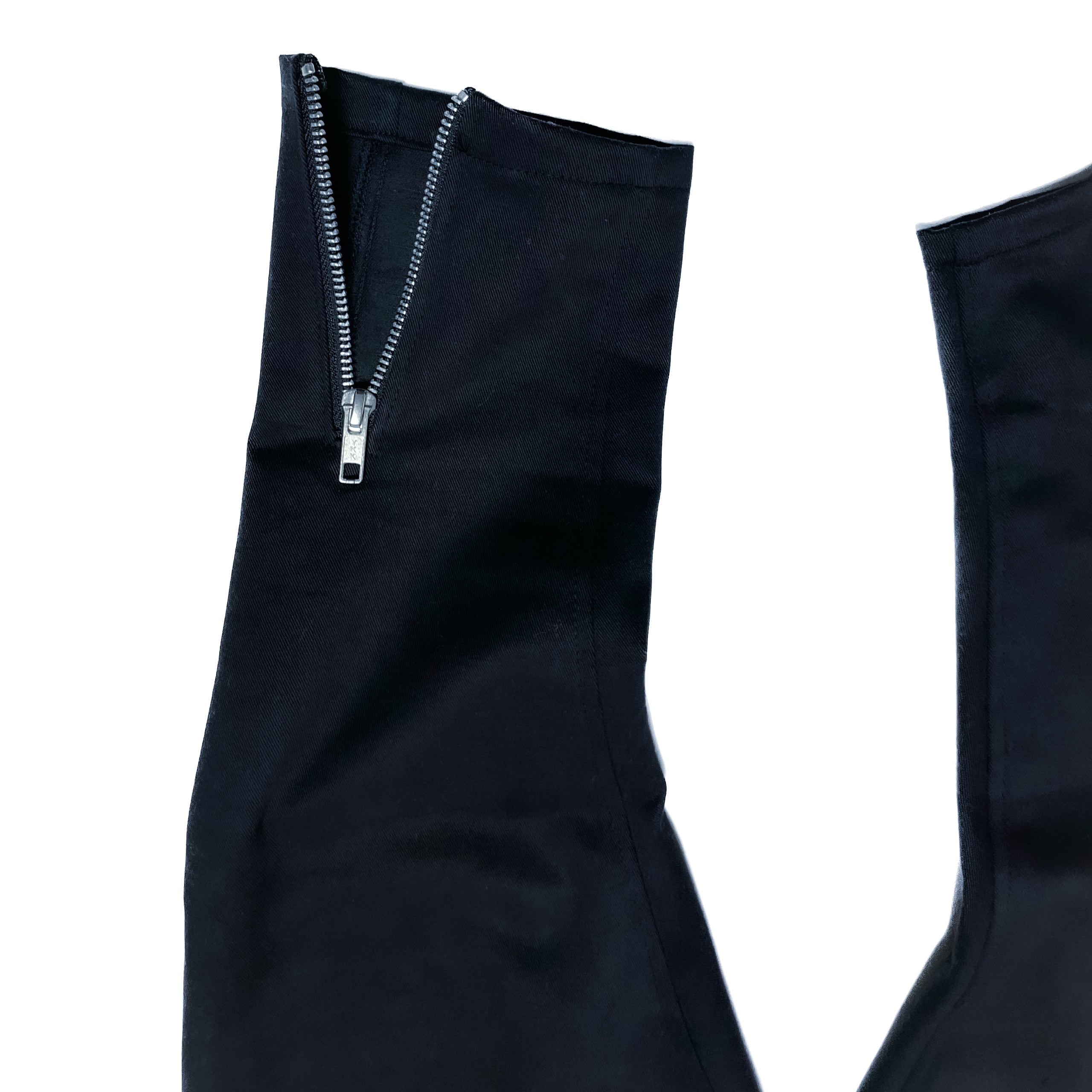 ファスナーを取り付けたことにより裾は細くスキニーのような細さを実現出来ました。