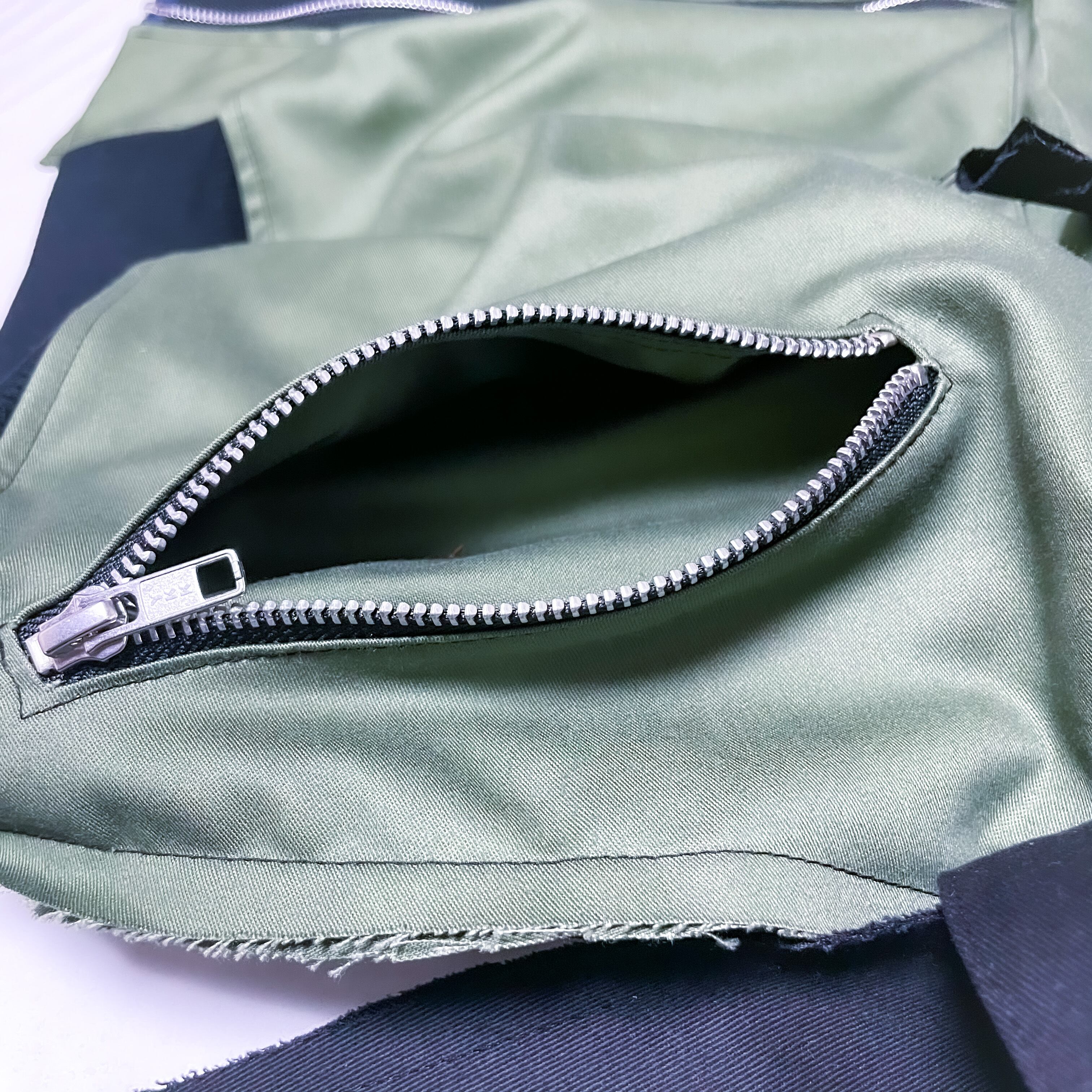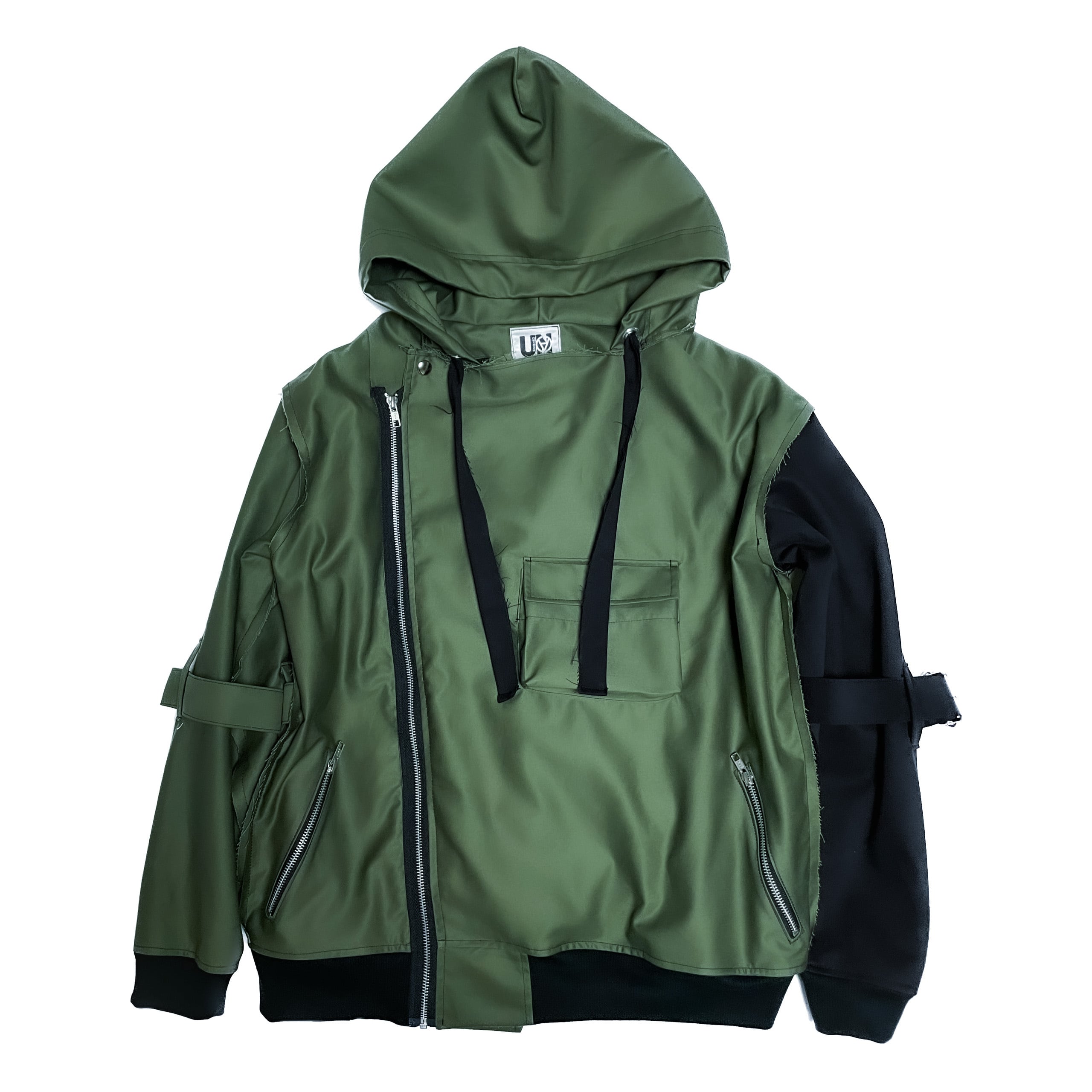 UNFINISHED ボンテージライダースパーカーカーキ×ブラック2023020