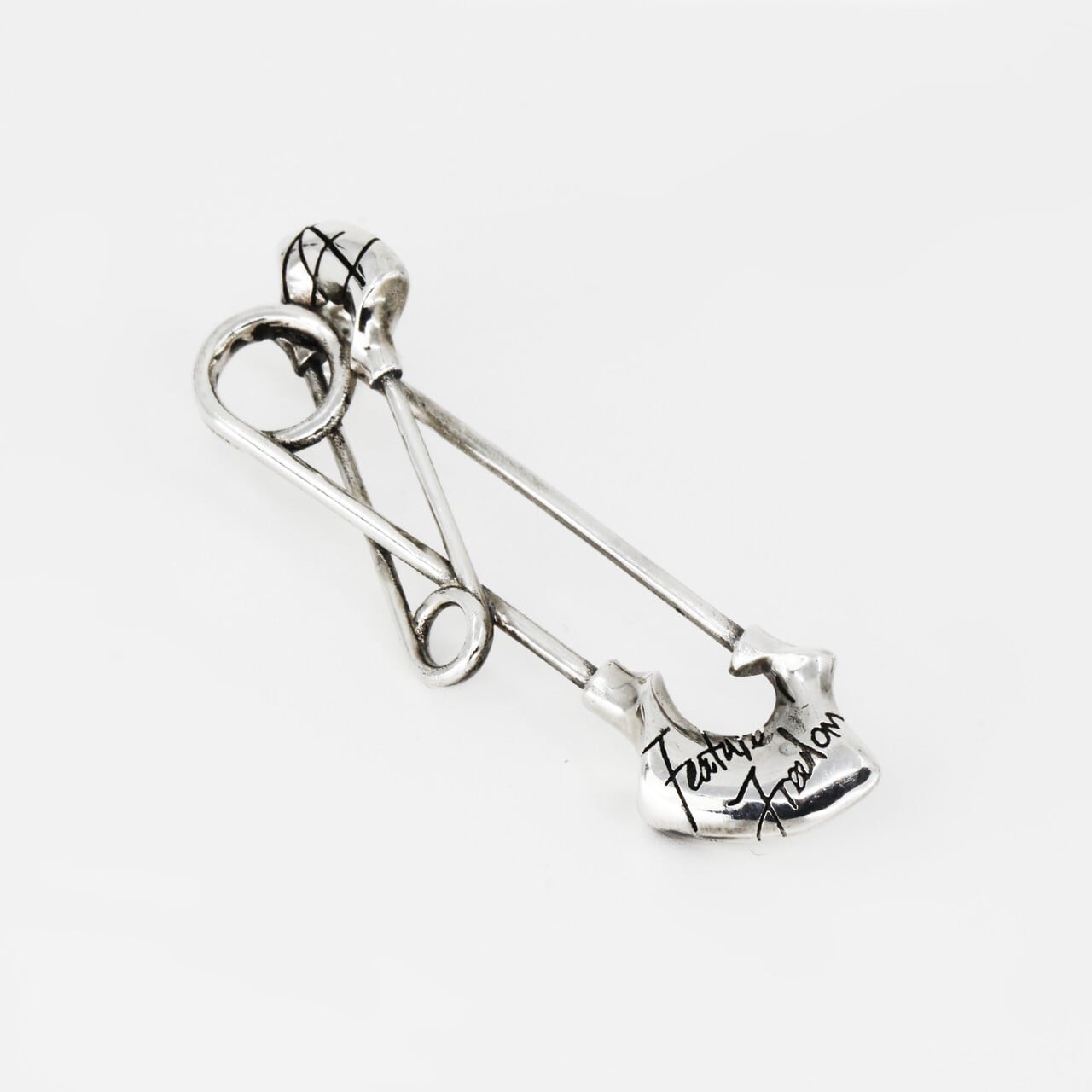 二つの安全ピンをモチーフにしたデザインで、アナーキーマークとfeature & freedomと書かれたパンク要素満載なデザインです。大きめなサイズでインパクトのあるデザインです。