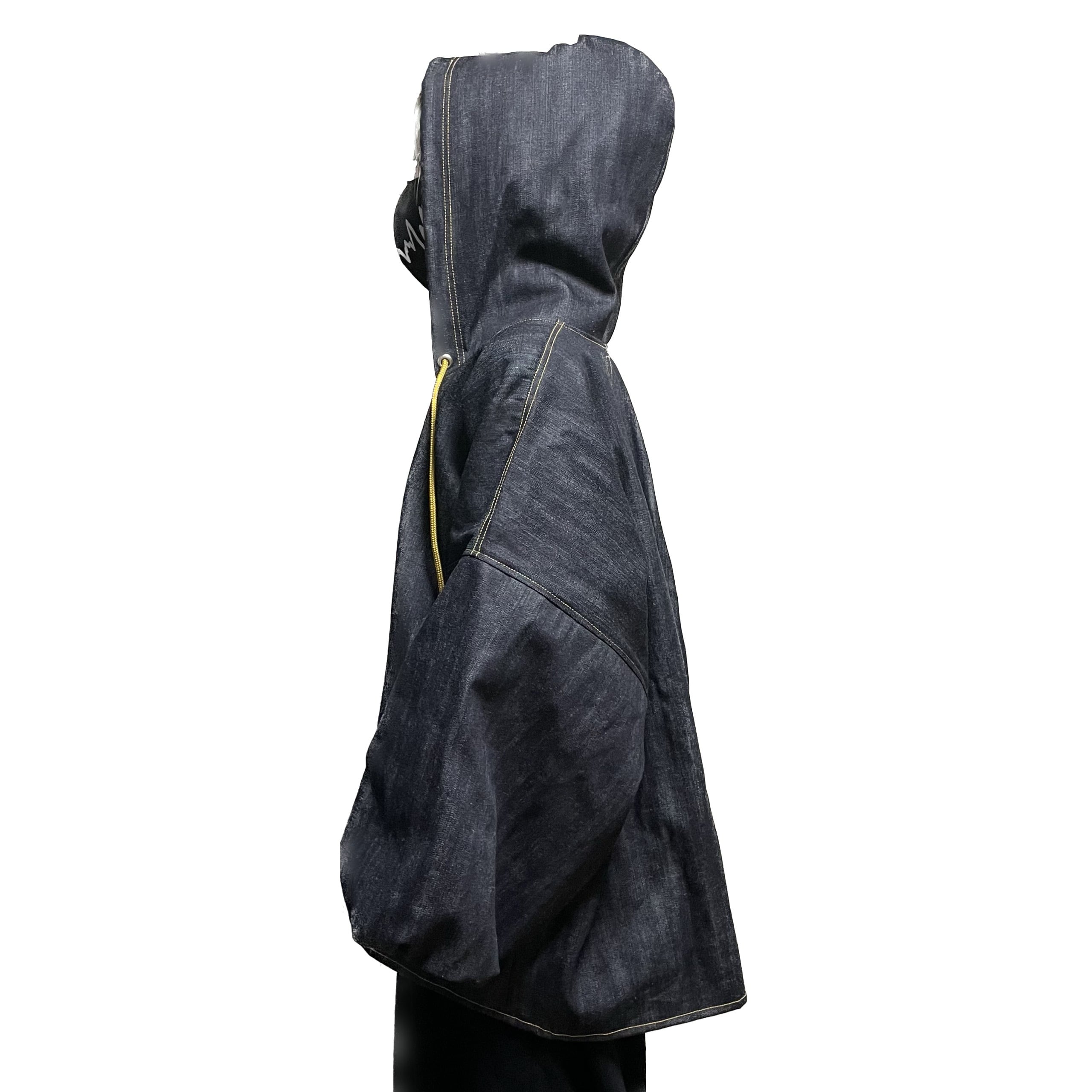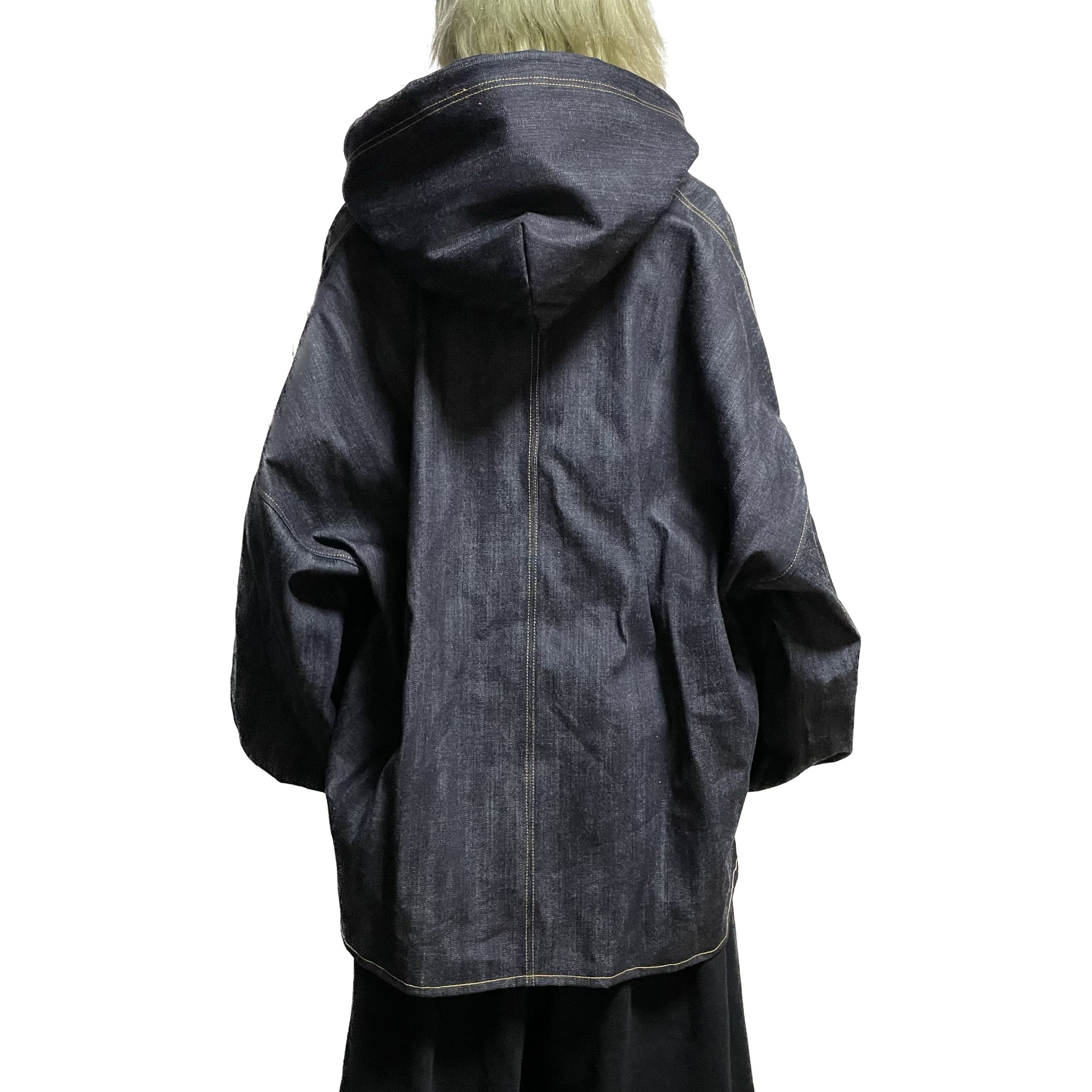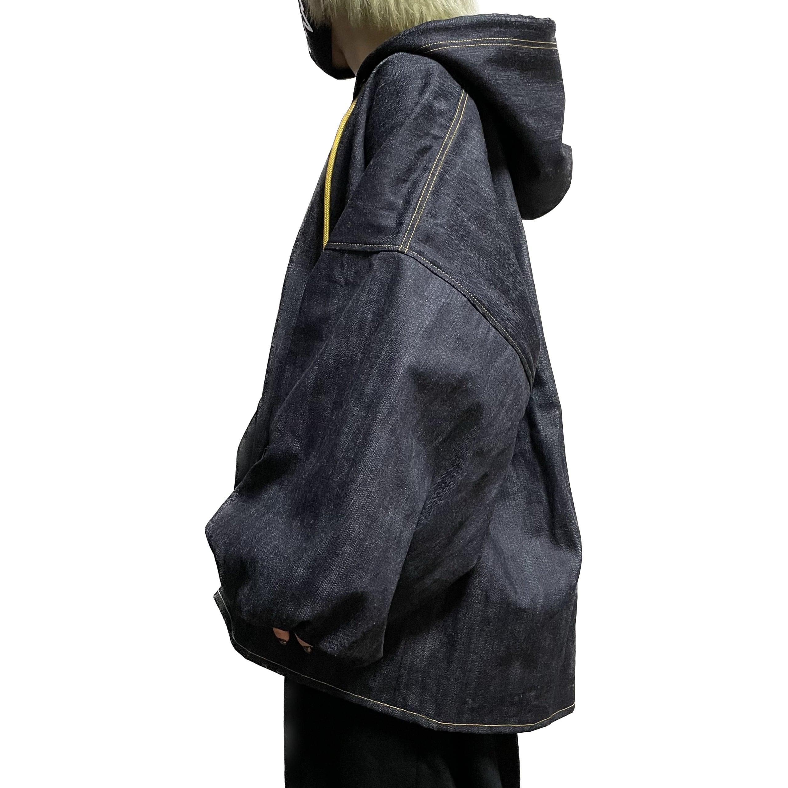 岡山デニムをベースに羽織り風パーカーを製作しました。
