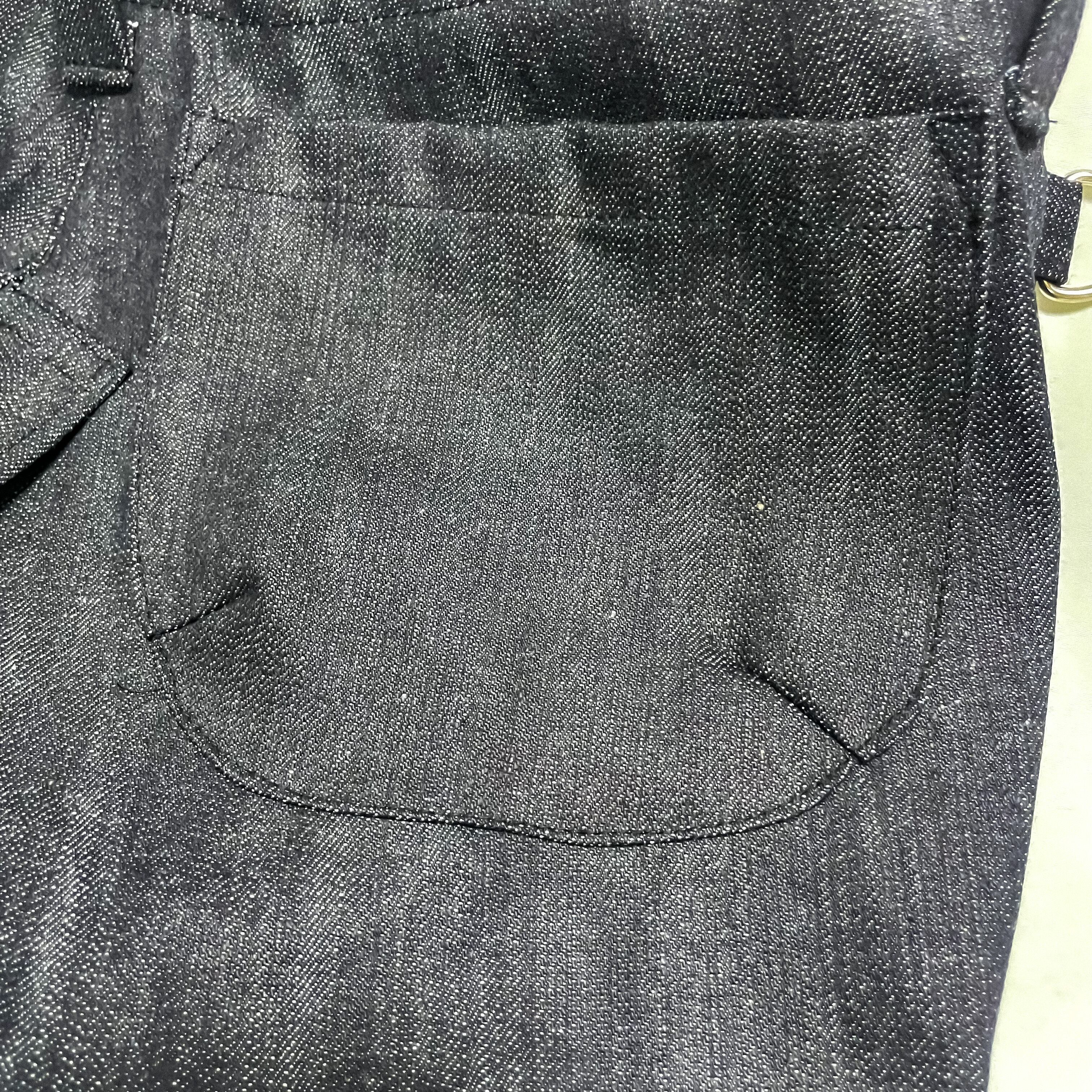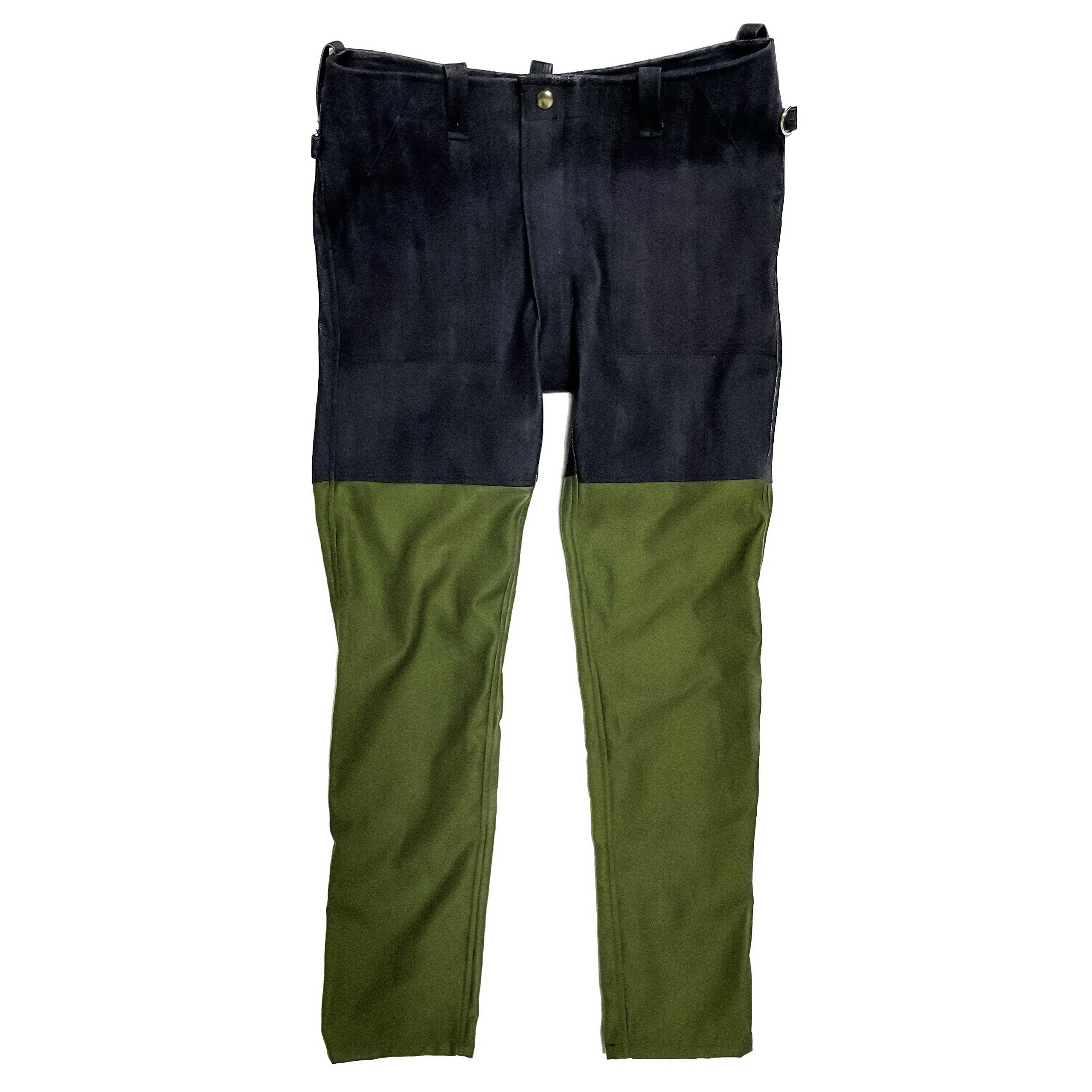 岡山デニム×カーキの切り替えボンテージパンツ。