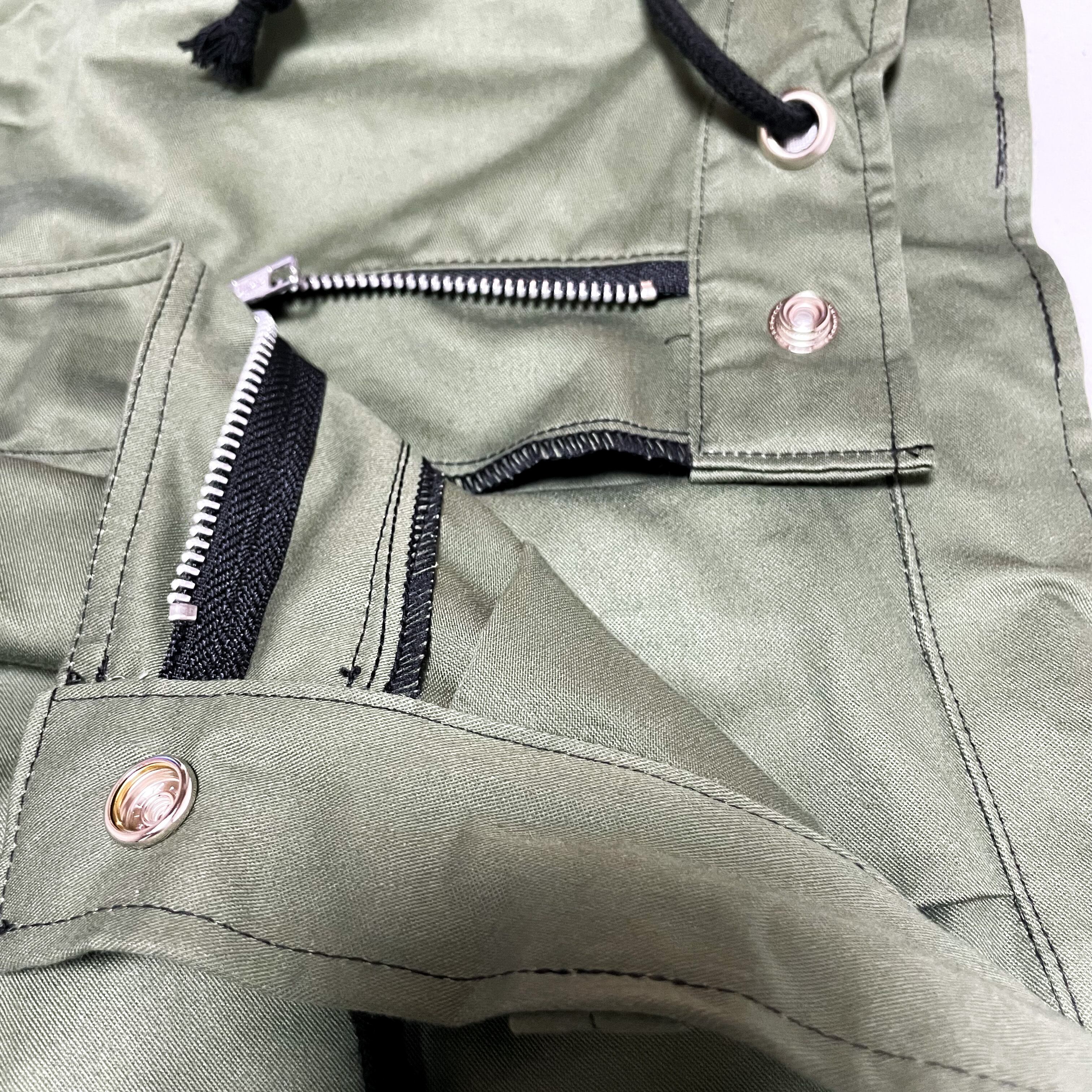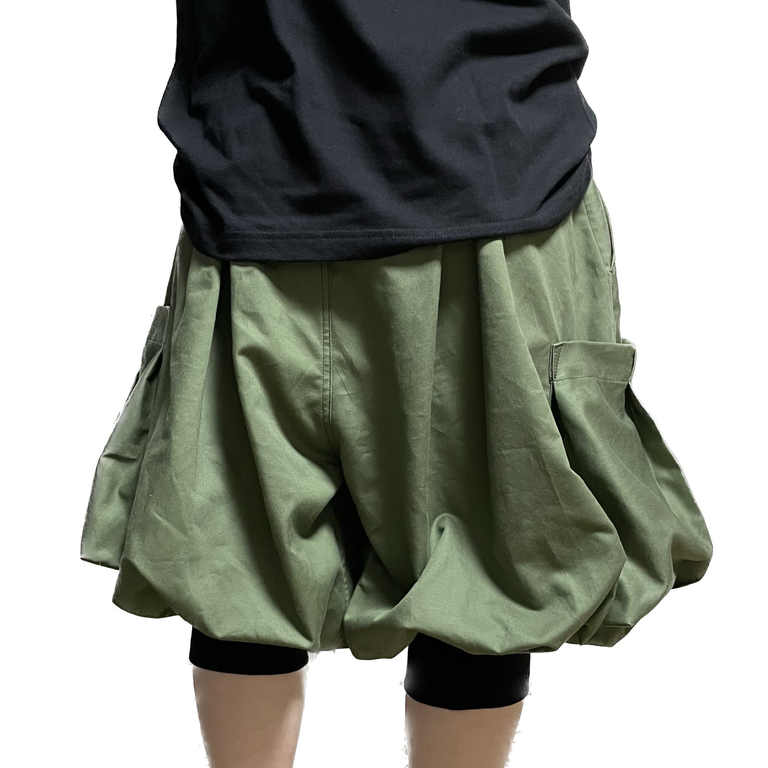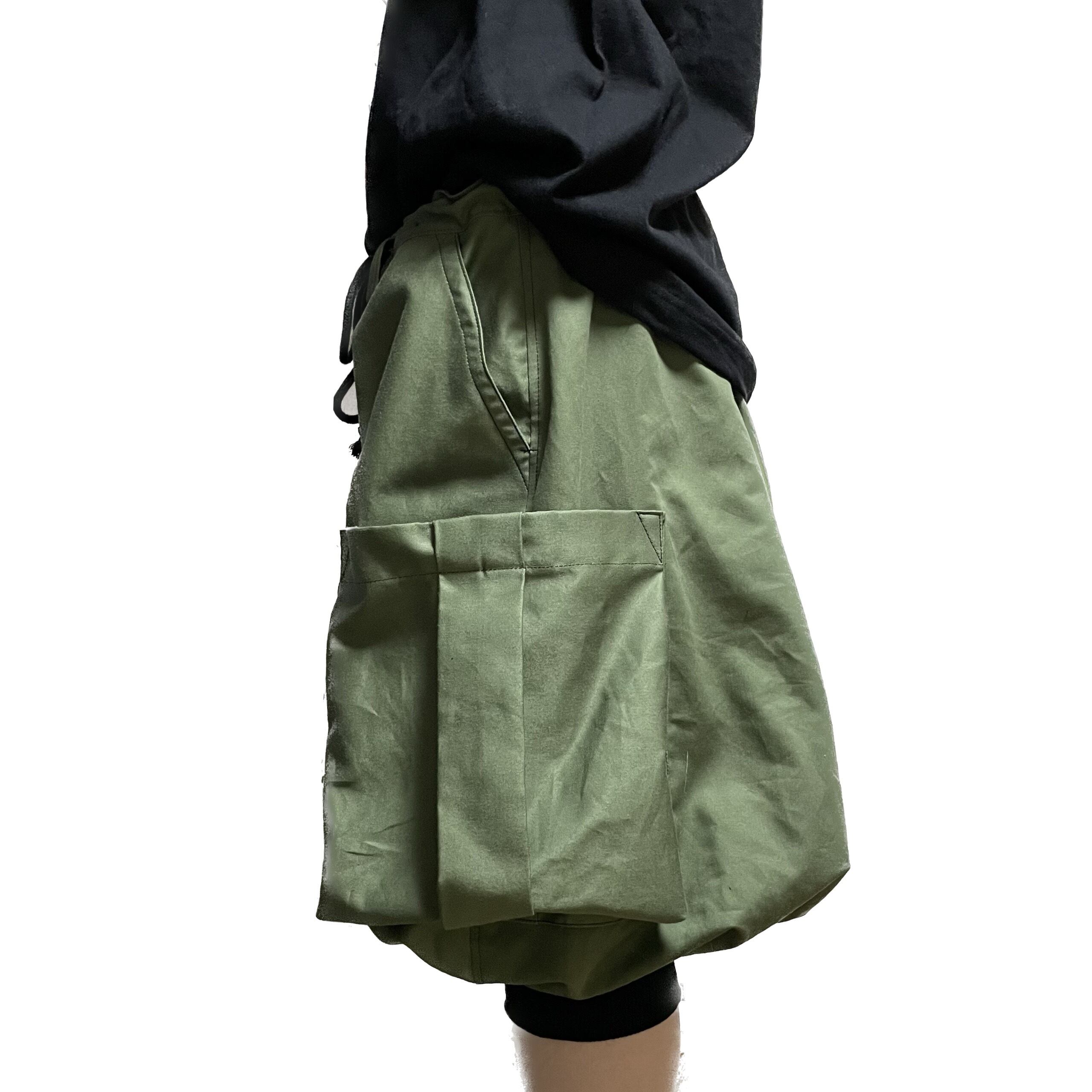 ミリタリー生地を使用したハーフ丈のワイドパンツです。
