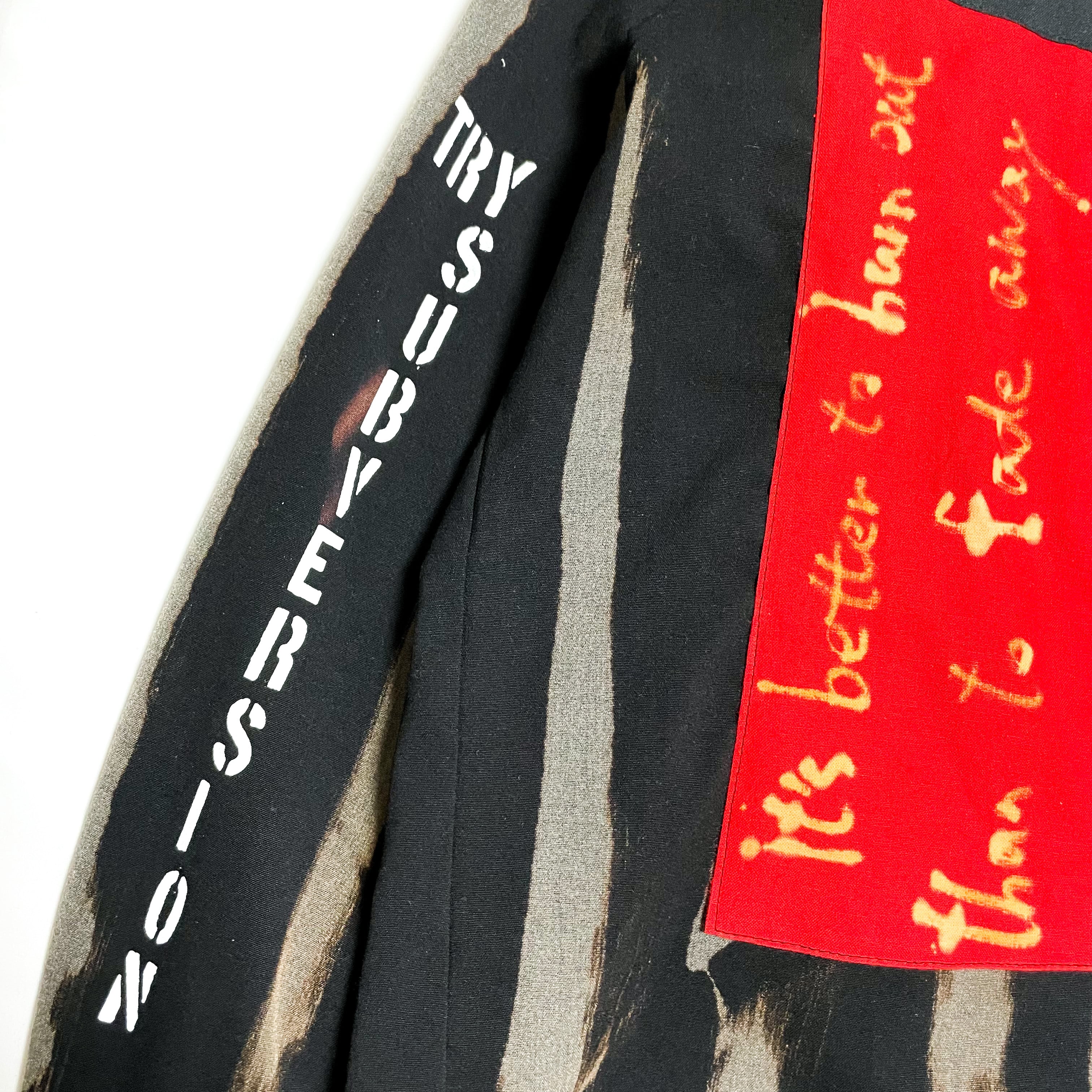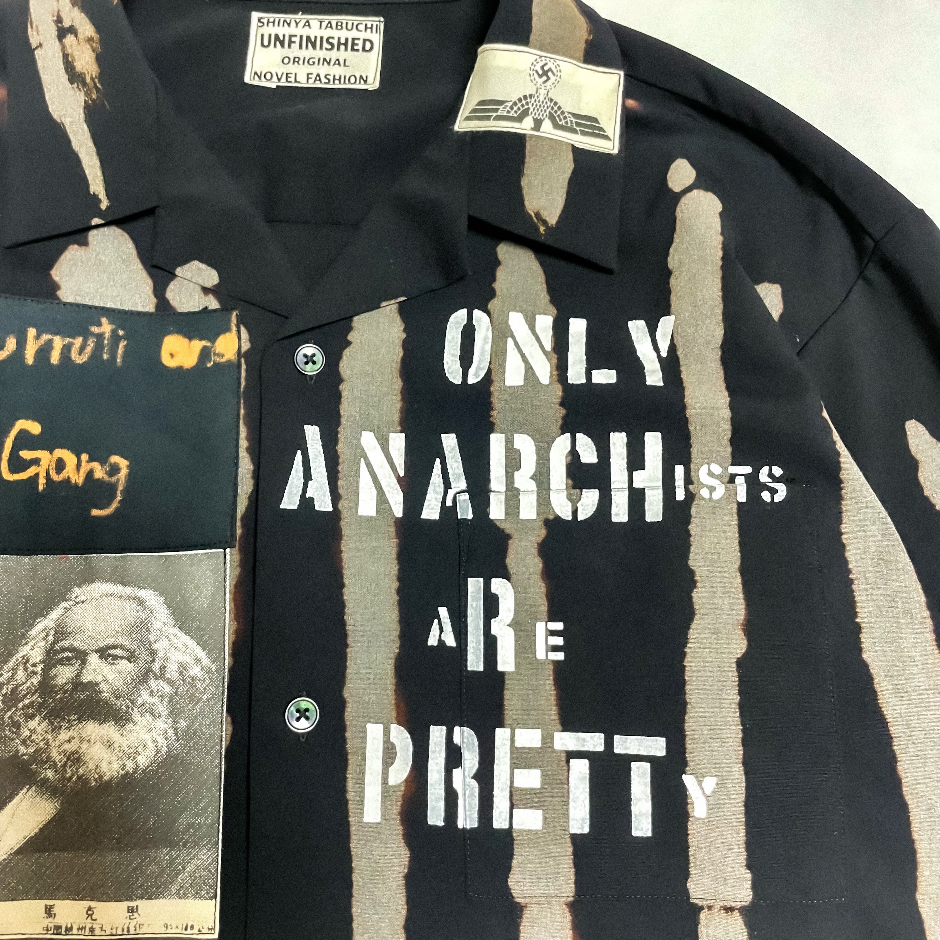 アナーキーシャツ2023008 こちらの商品は、70年代当時セックス・ピストルズのシドヴィシャスや、ジョニーロットンが着ていたアナーキーシャツを再現した一品になります。 【サイズ】 肩幅51㎝ 着丈74㎝ 身幅63㎝ 袖丈60㎝ 【送料】 購入金額に関わらず送料無料。