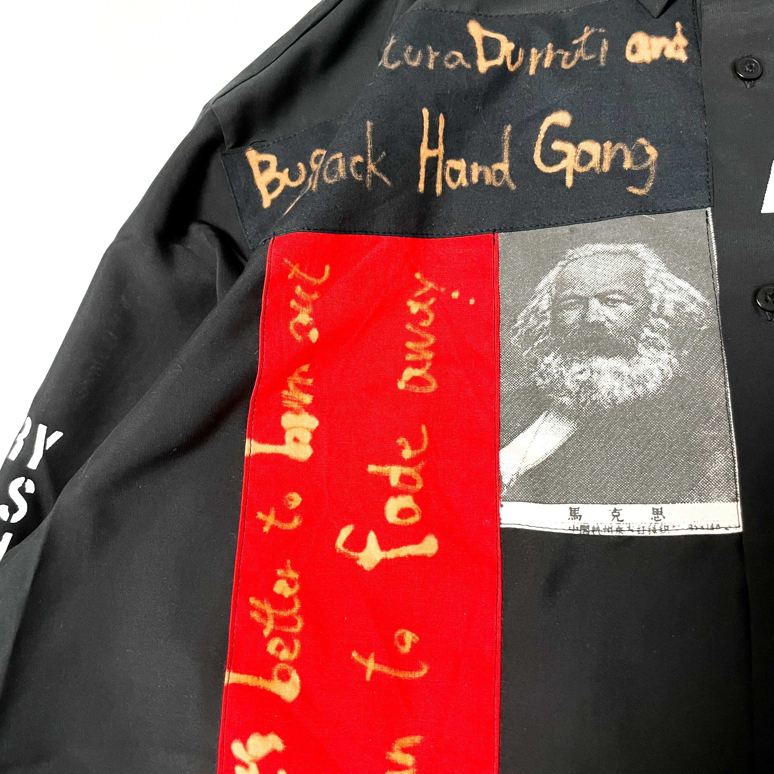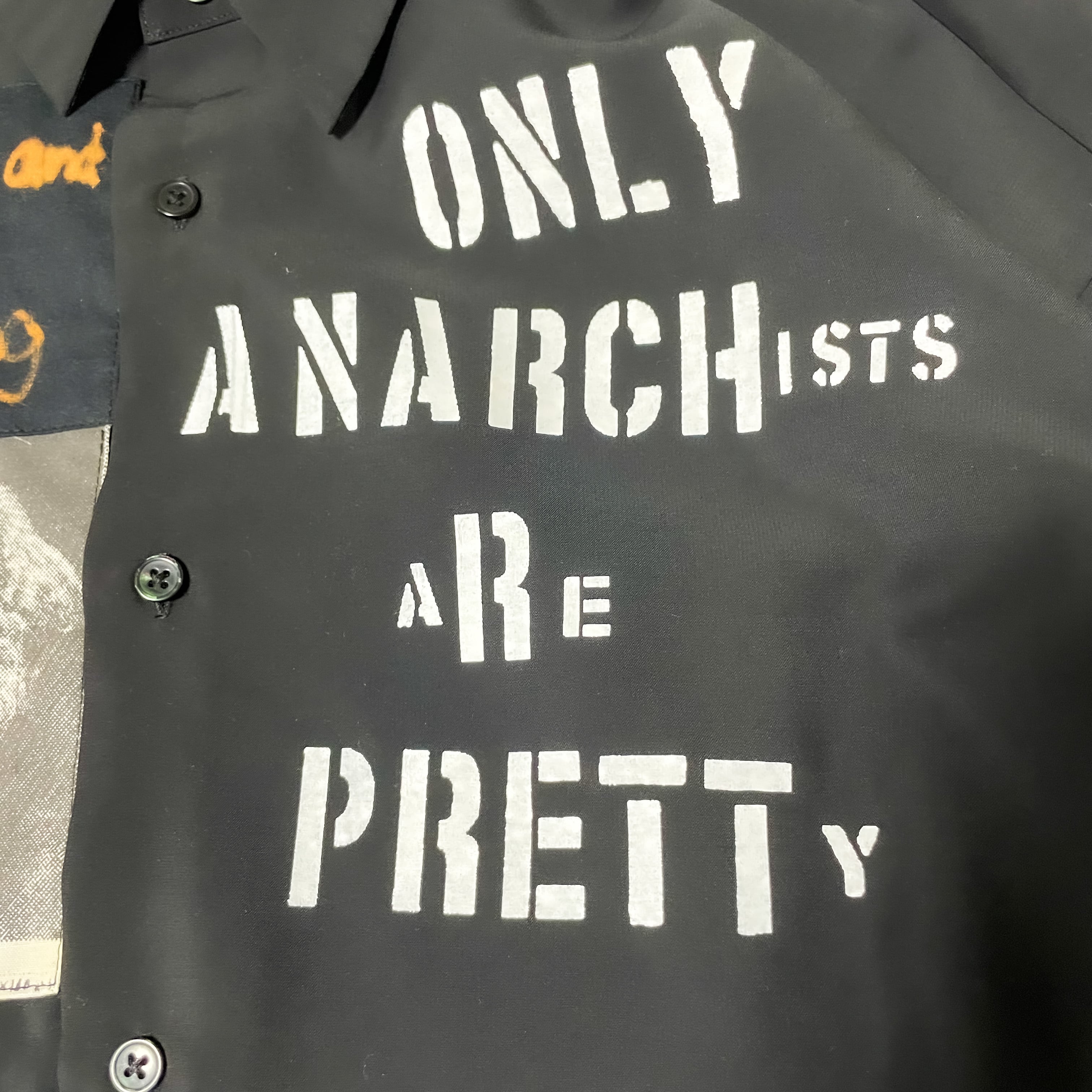 UNFINISHEDアナーキーシャツ2023009 こちらの商品は、70年代当時セックス・ピストルズのシドヴィシャスや、ジョニーロットンが着ていたアナーキーシャツを再現した一品になります。 【サイズ】 L 肩幅56.5㎝ 着丈82㎝ 身幅65㎝ XL 肩幅58.5㎝ 着丈84㎝ 身幅69㎝ 購入金額に関わらず送料無料。