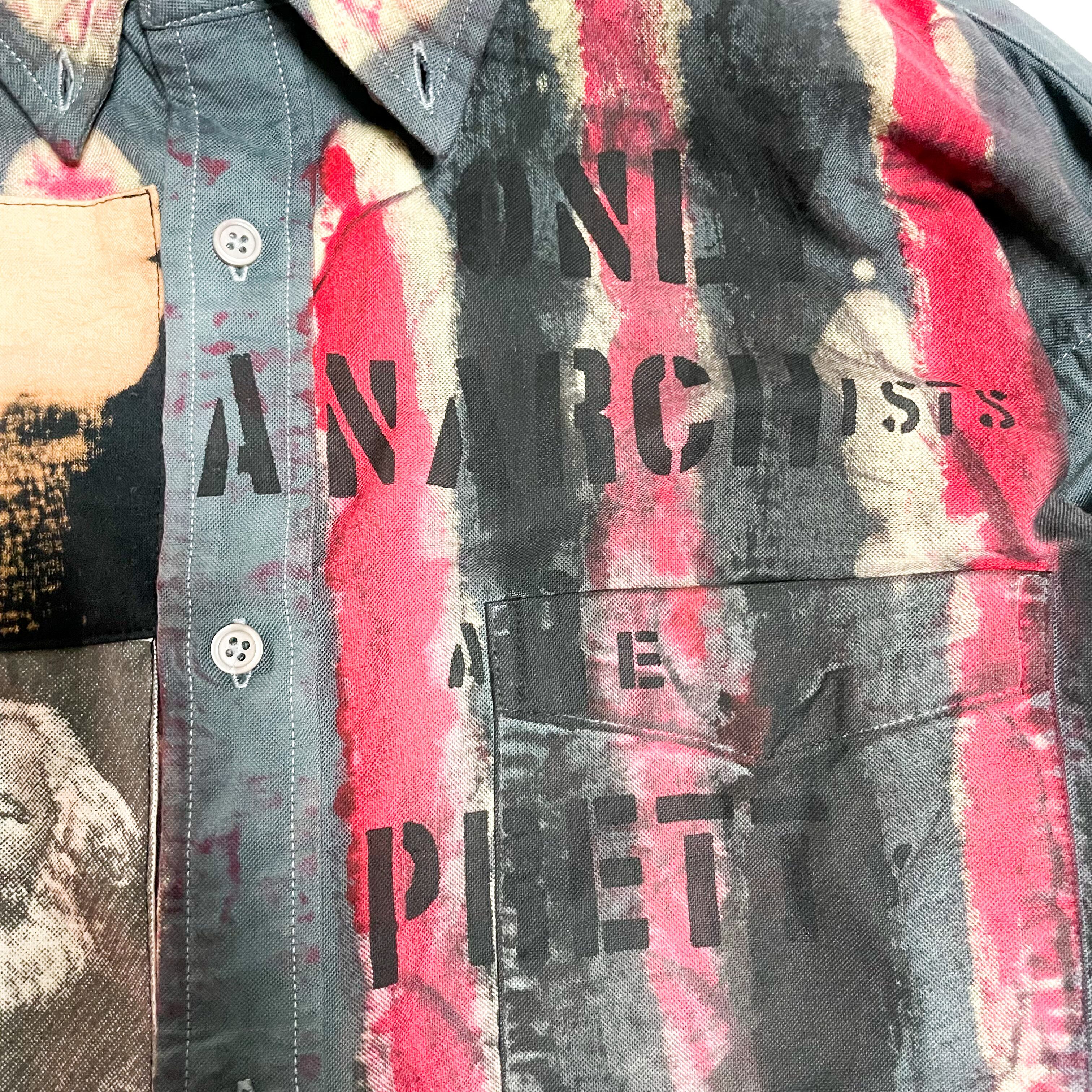 UNFINISHEDアナーキーシャツ2023011 こちらの商品は、70年代当時セックス・ピストルズのシドヴィシャスや、ジョニーロットンが着ていたアナーキーシャツを再現した一品になります。 【サイズ】 肩幅50㎝ 着丈77㎝ 身幅60㎝ 購入金額に関わらず送料無料。
