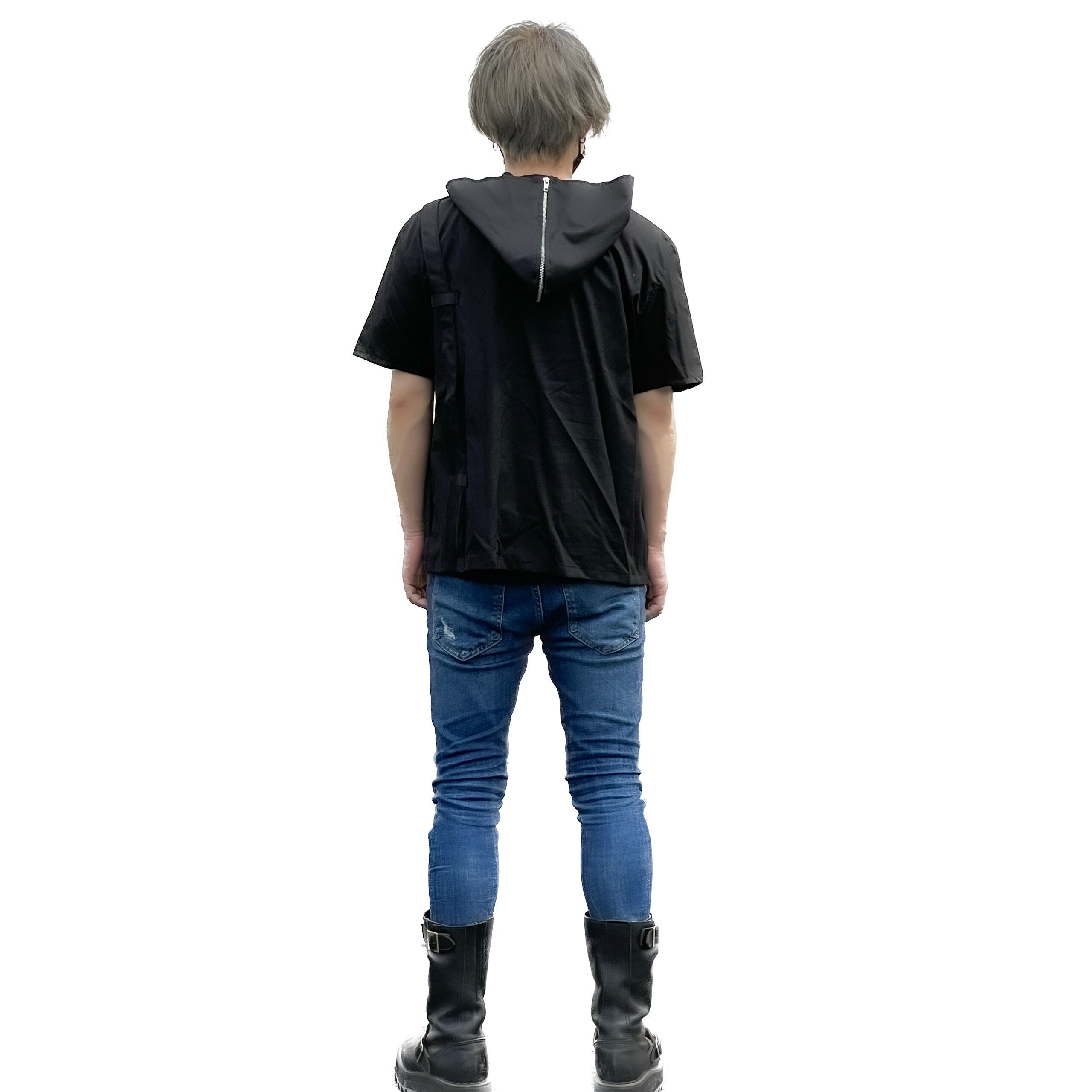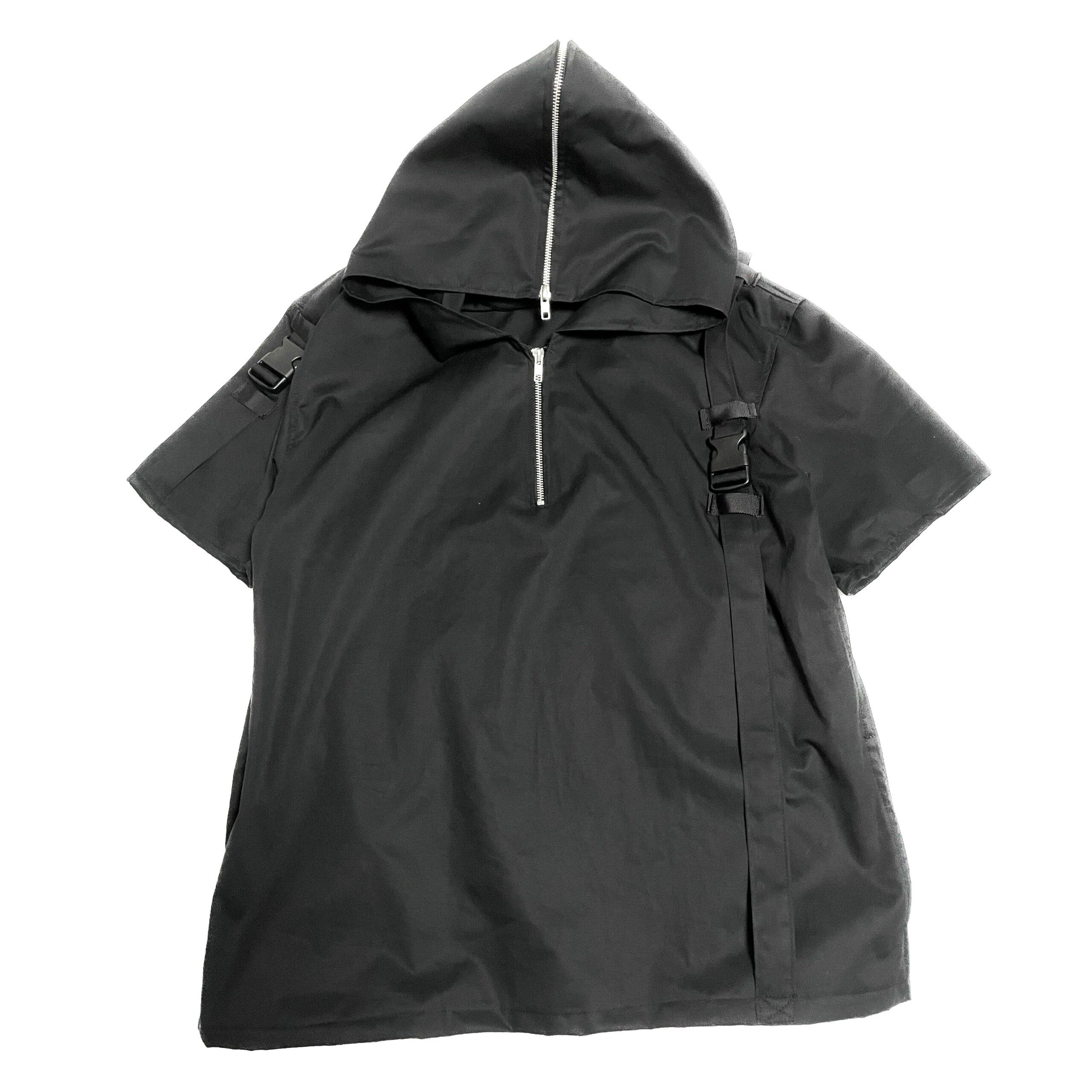 ブラックが際立つ半袖パーカー。