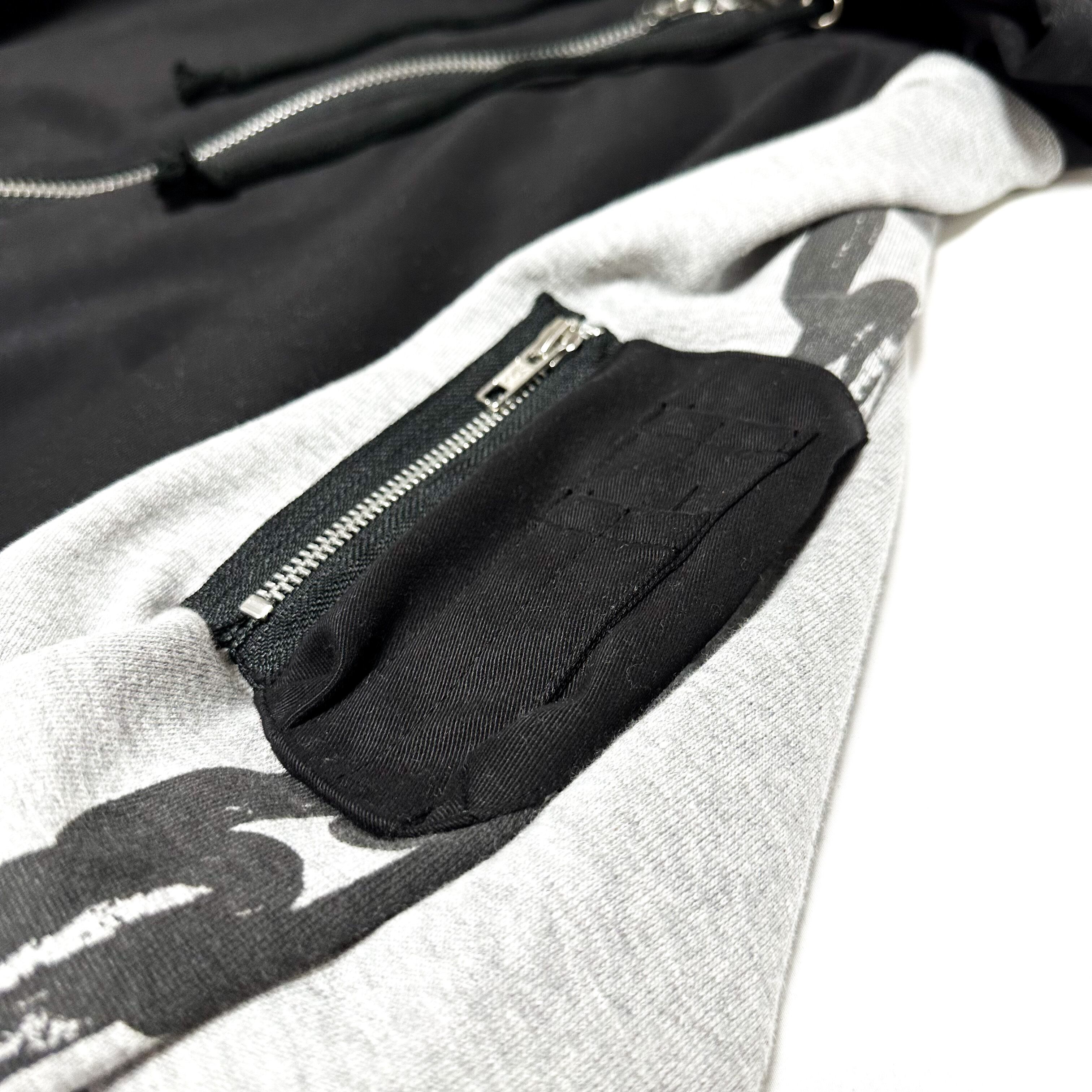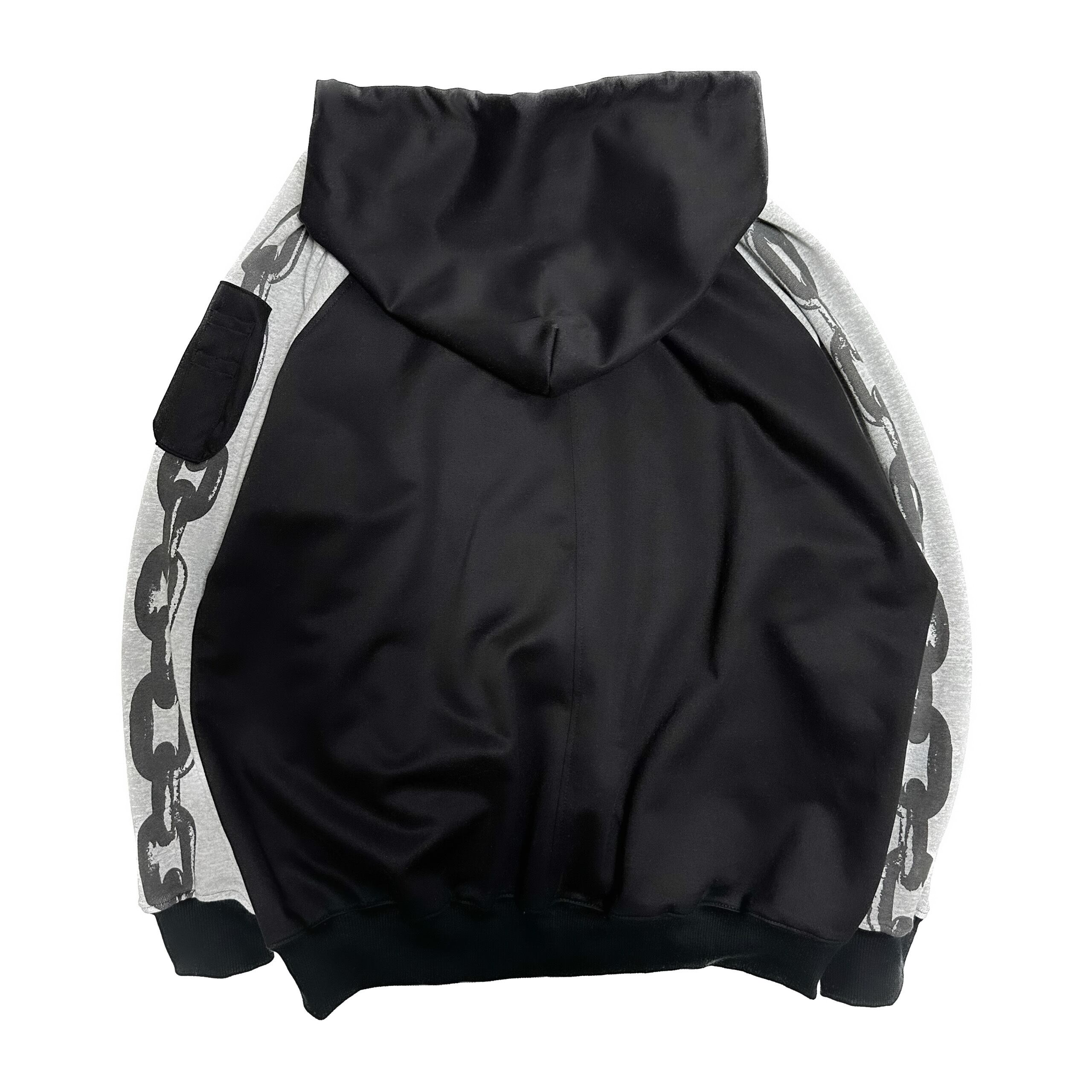 ツイル生地とトレーナー生地の切り替えパーカー。