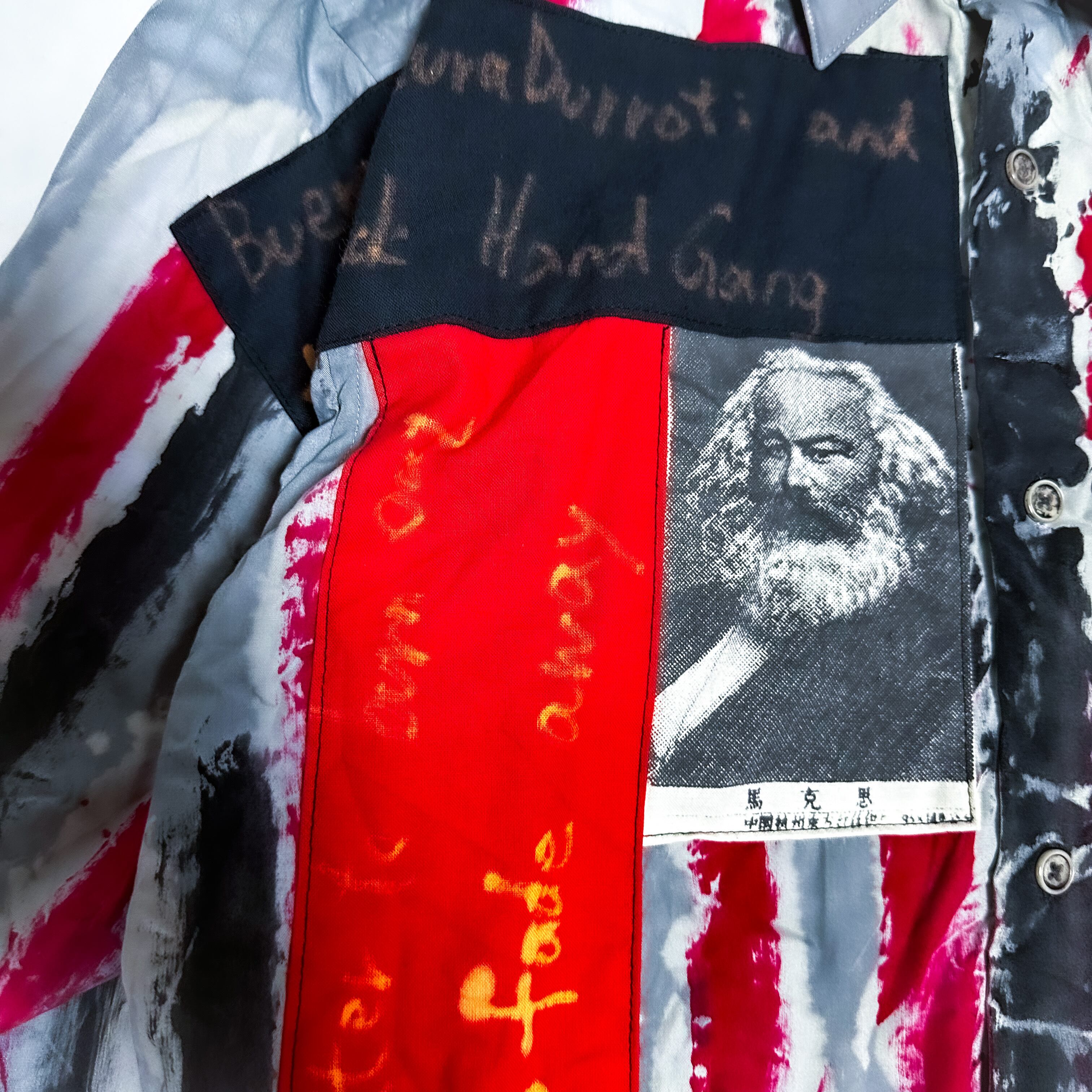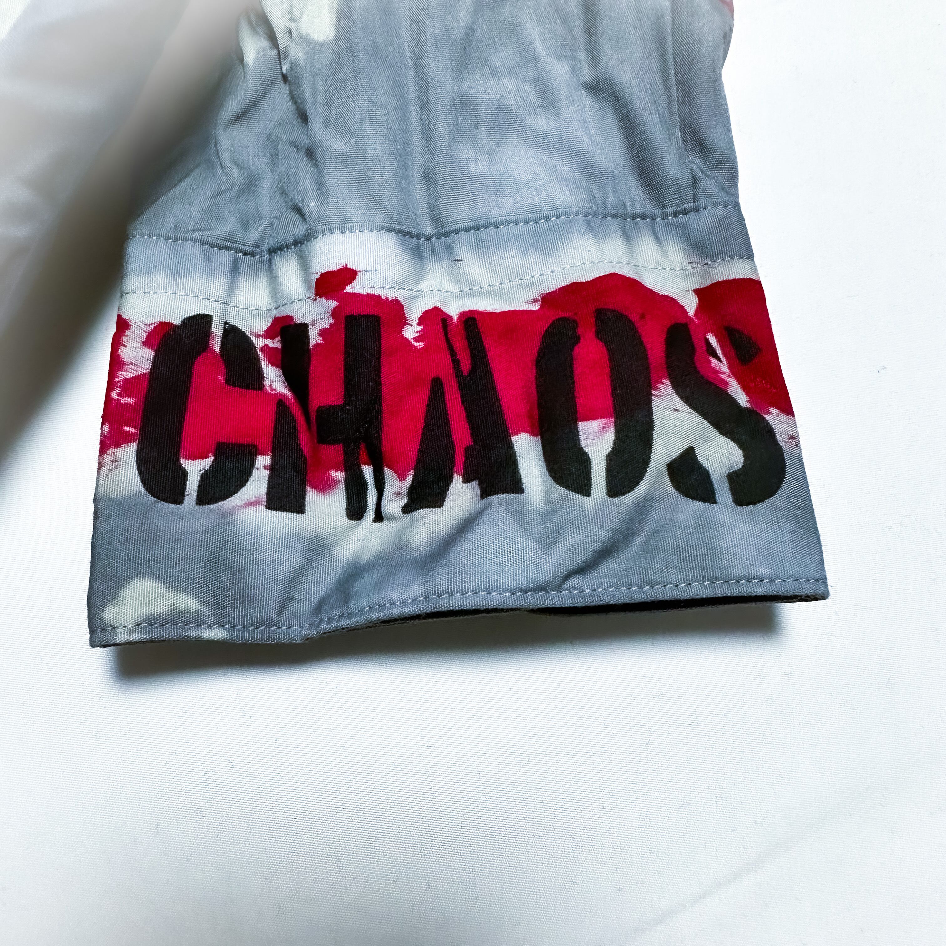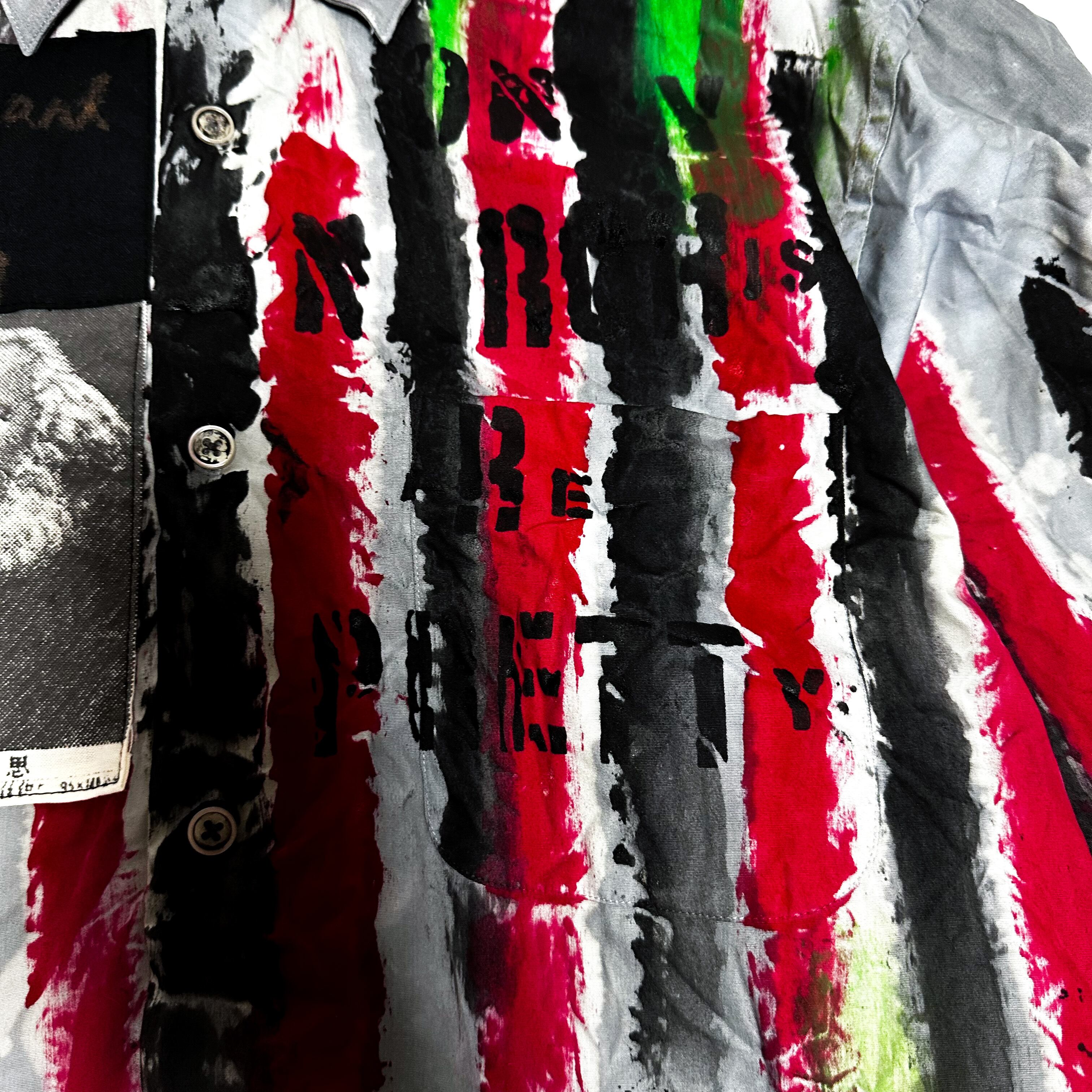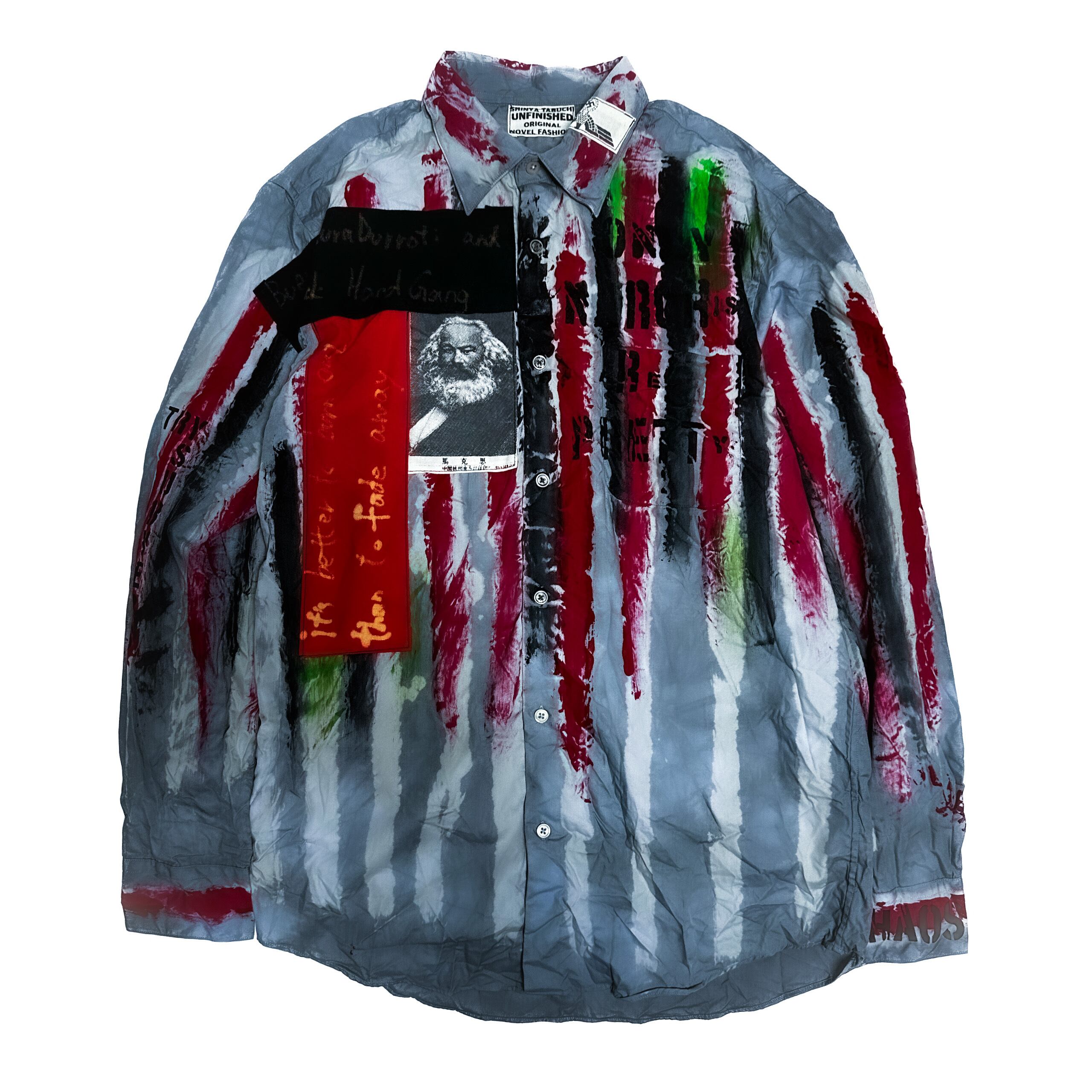 UNFINISHEDアナーキーシャツ2023016 こちらの商品は、70年代当時セックス・ピストルズのシドヴィシャスや、ジョニーロットンが着ていたアナーキーシャツを再現した一品になります。 【サイズ】 肩幅46㎝ 着丈72㎝ 身幅52㎝ 袖丈55㎝ 【送料】 購入金額に関わらず送料無料。