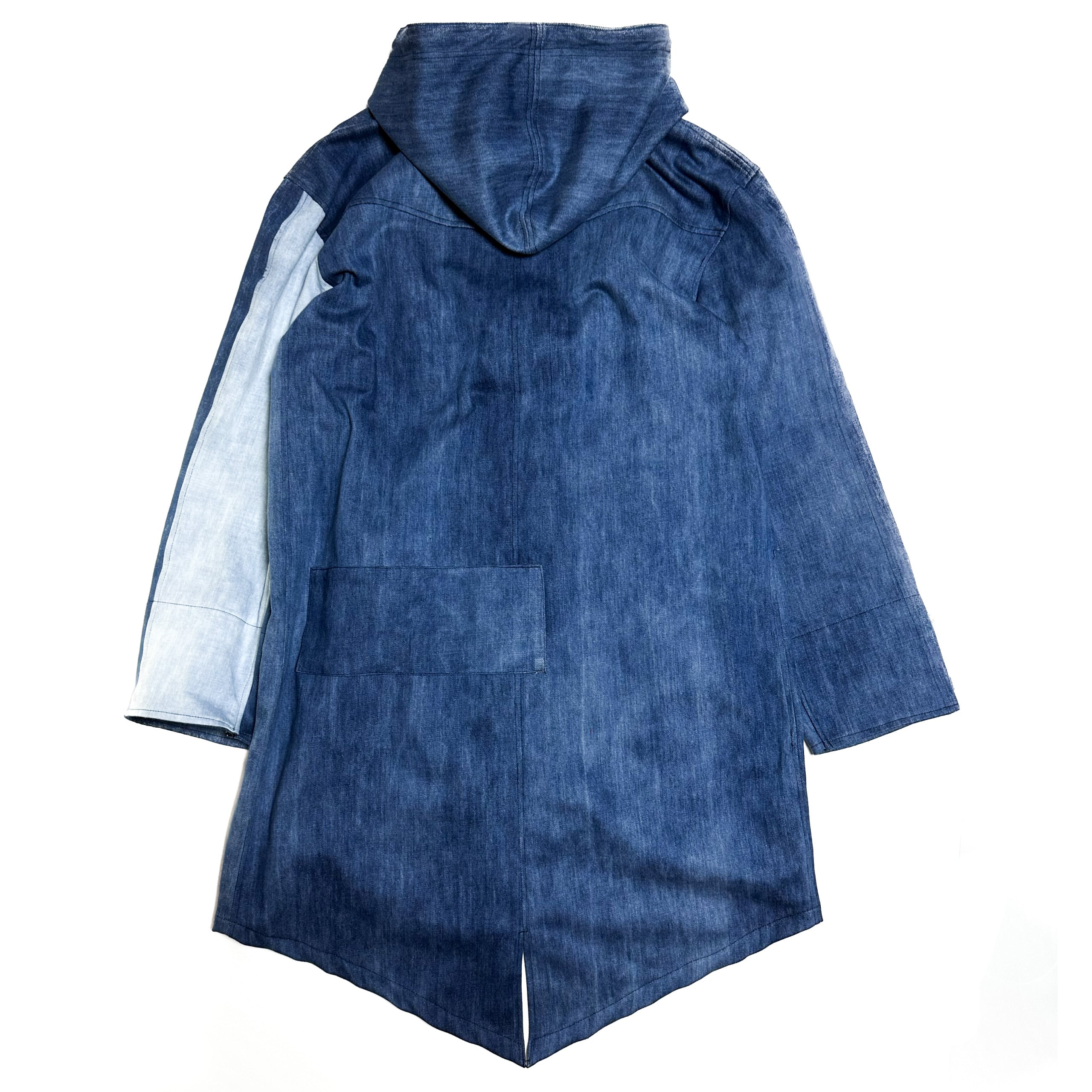岡山デニムをベースにダメージ加工を施した生地で製作したモッズコート。