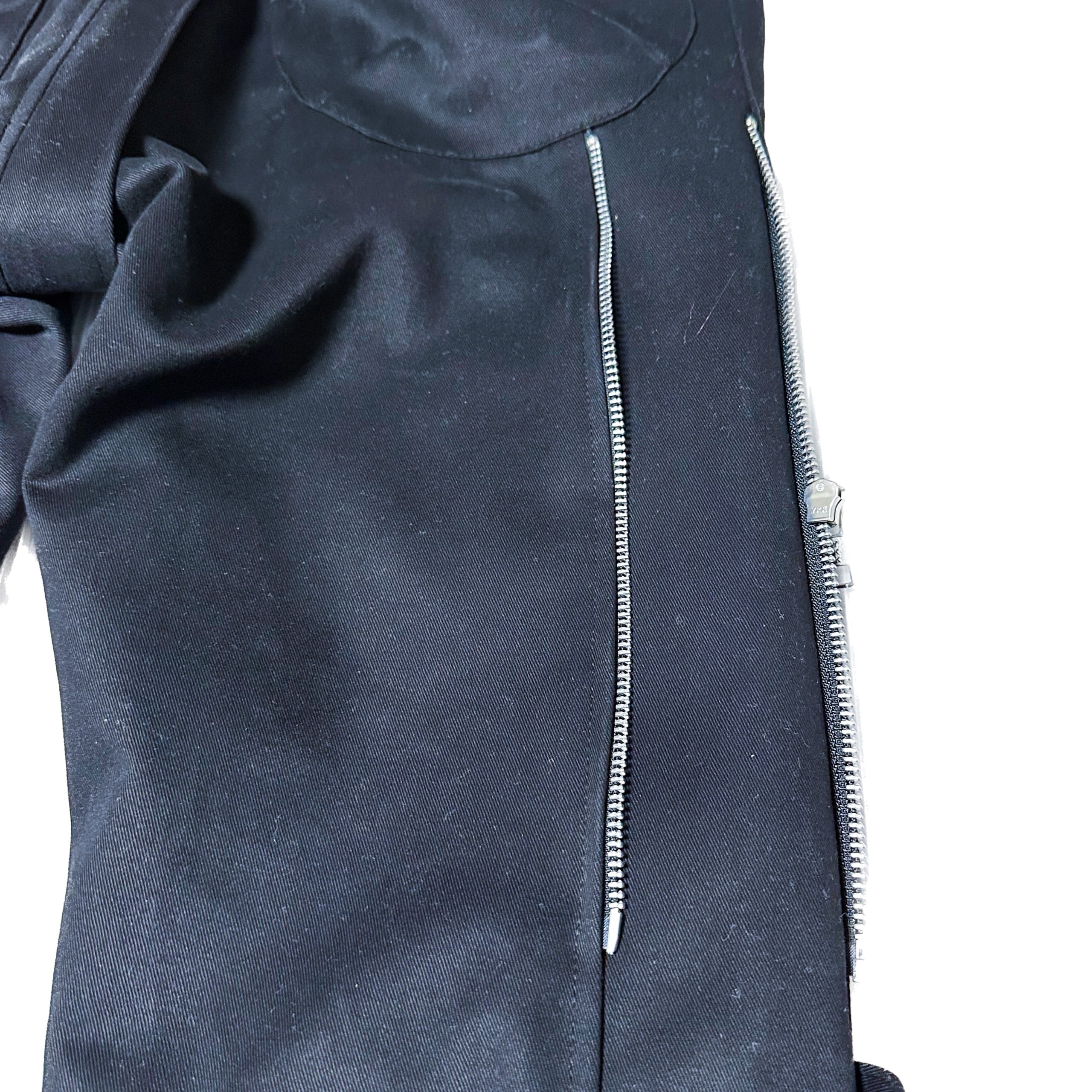 UNFINISHEDサイドジップボンテージパンツ2023093 【商品詳細】 ブラックツイル生地を使用したボンテージパンツ。 ジップは中心から少し脇にずらしたデザインです。 お客様からのお声の多かったプレーンタイプを新たに販売開始いたします。 【サイズ】 ウエスト82㎝ 股上24.5㎝ 股下66㎝ 裾幅33㎝ 【送料】 購入金額に関わらず送料無料。
