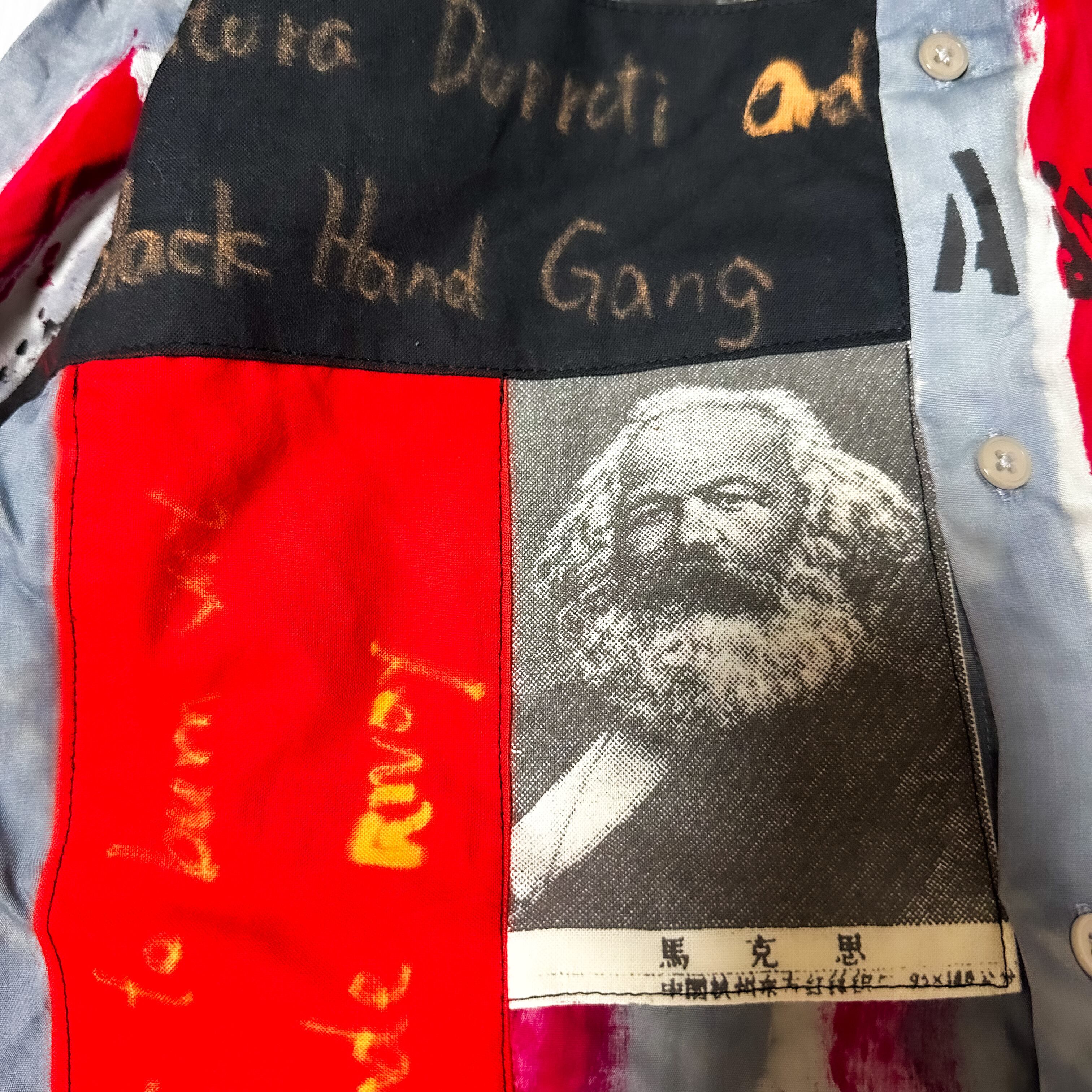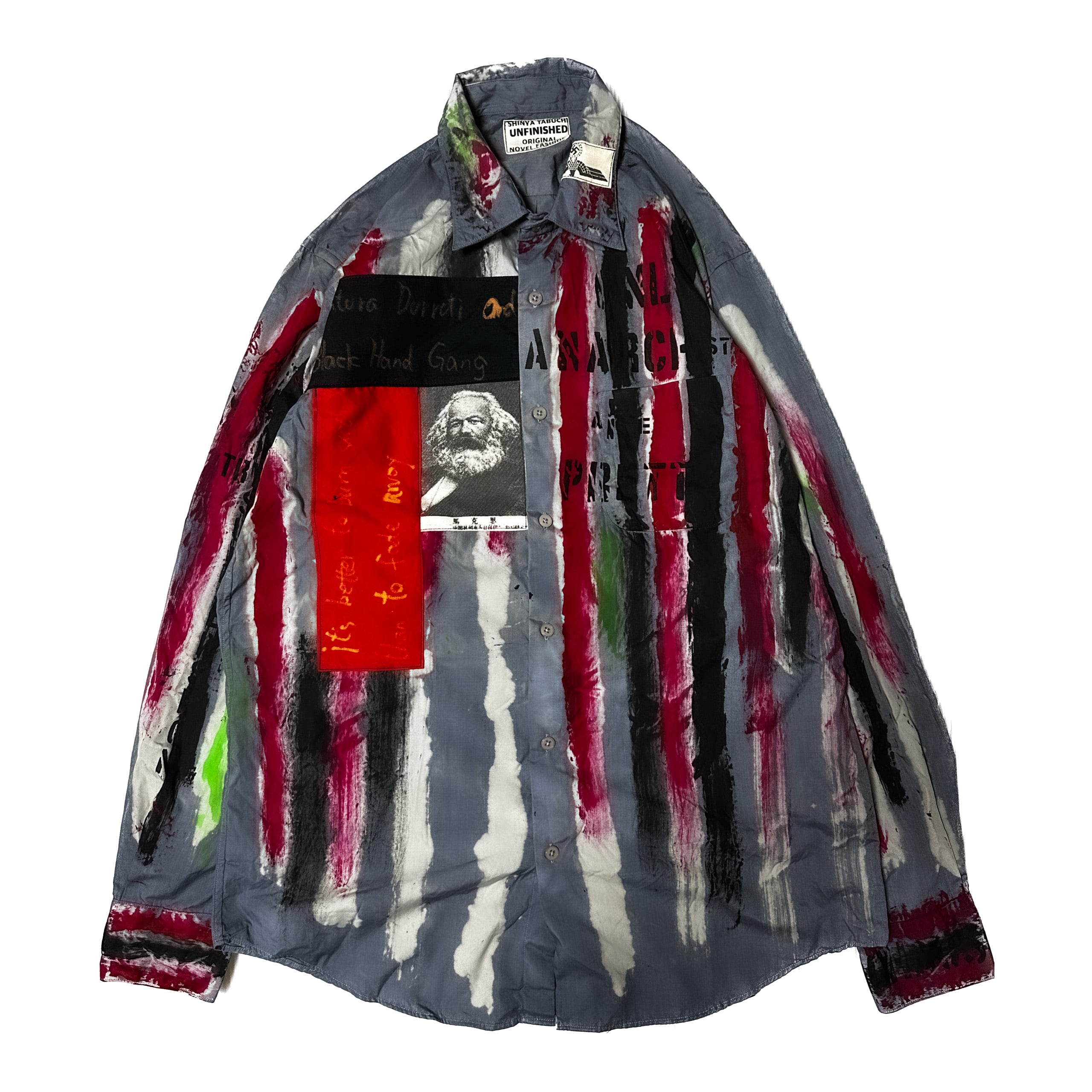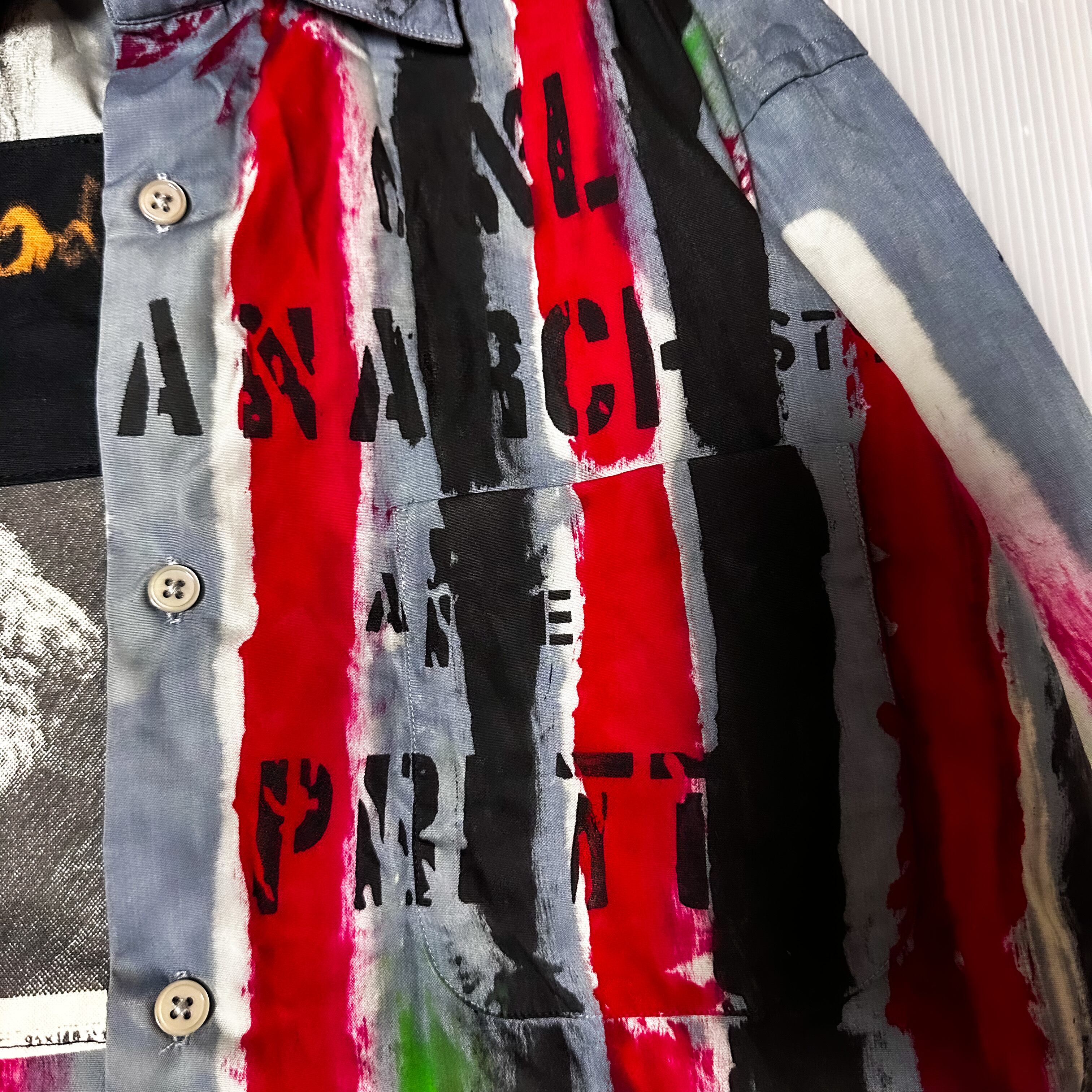 UNFINISHEDアナーキーシャツ2023018 こちらの商品は、70年代当時セックス・ピストルズのシドヴィシャスや、ジョニーロットンが着ていたアナーキーシャツを再現した一品になります。 【サイズ】 肩幅46㎝ 着丈76㎝ 身幅55㎝ 袖丈61㎝ 購入金額に関わらず送料無料。